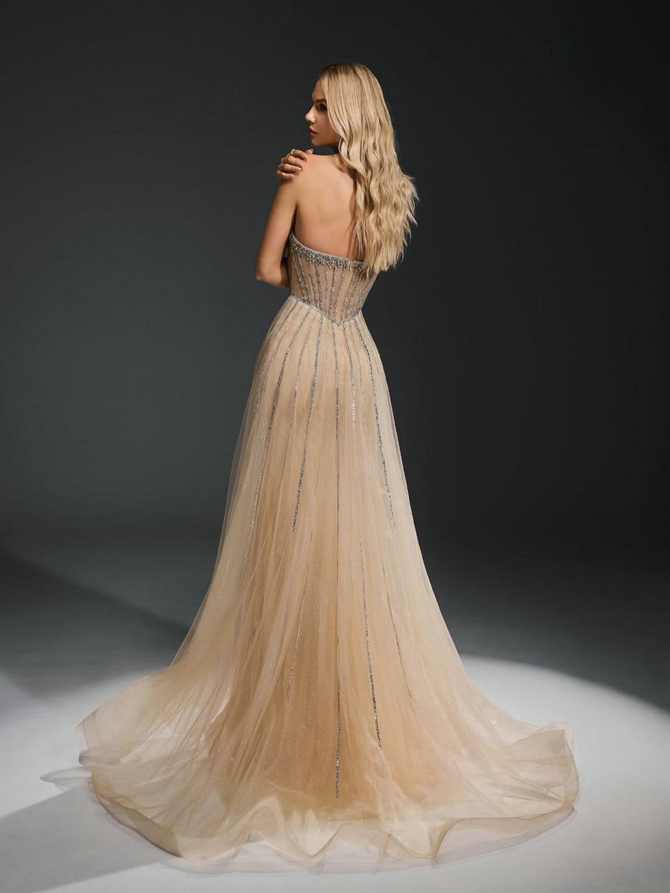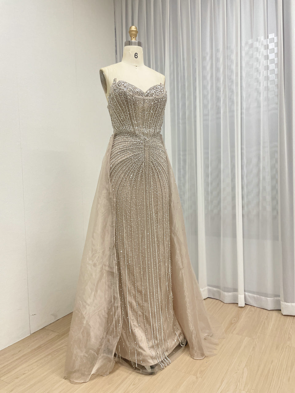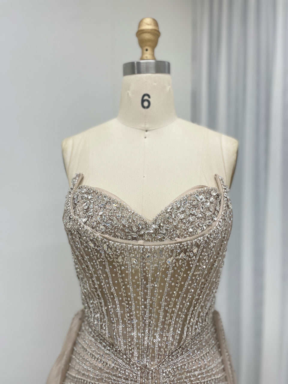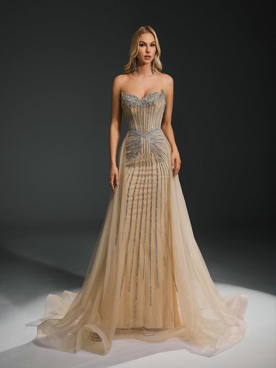 Luxury Strapless Handmade Beaded Decoration Evening Gown for Formal Occasion MB40365