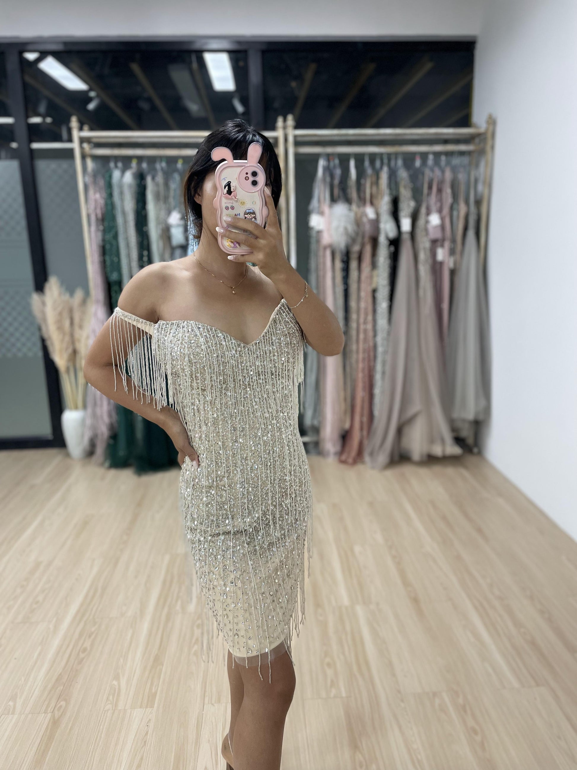 Off Shoulder Beading Couture Short Party Dress MB40102