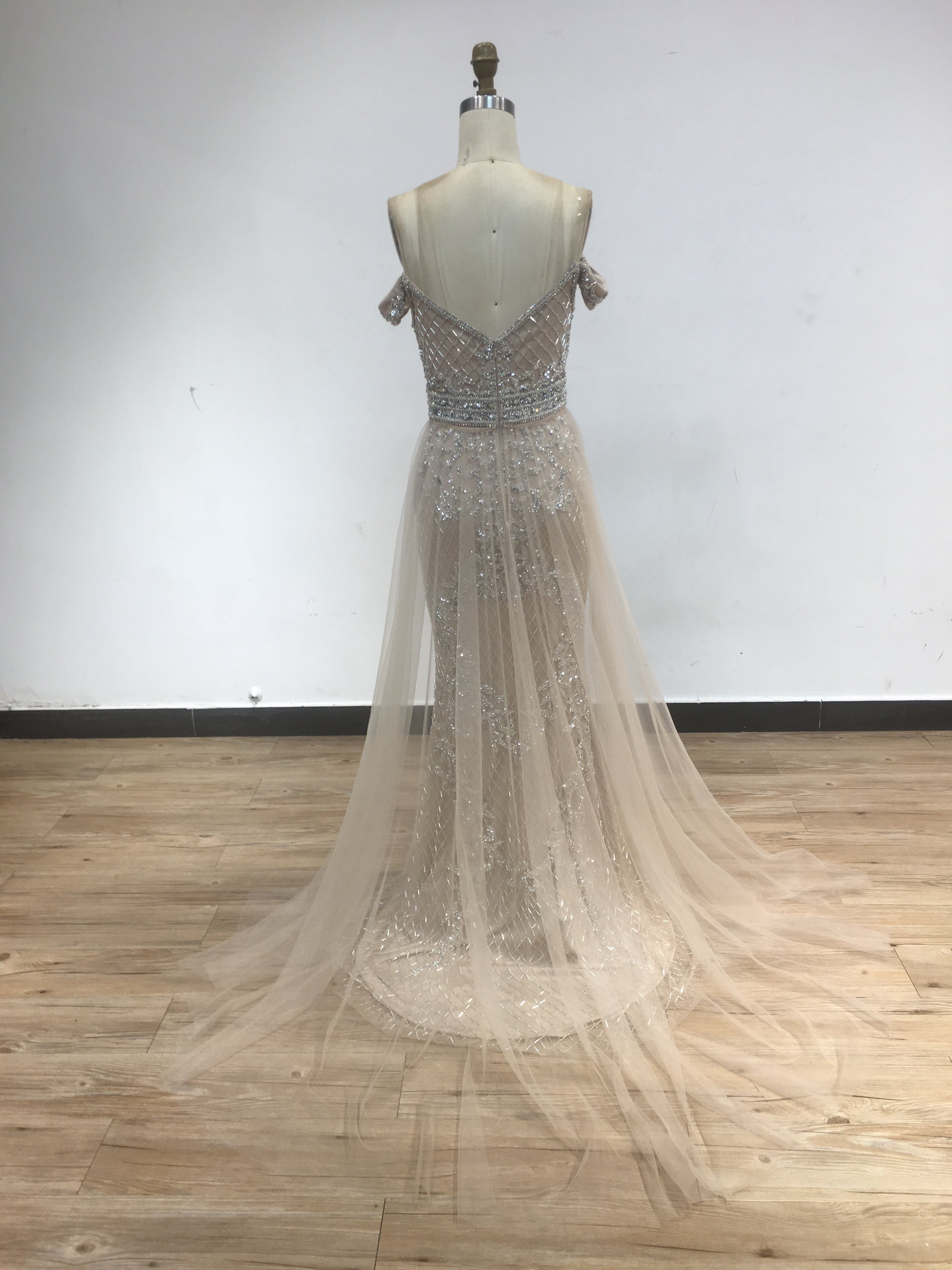 Off Shoulder Cap Sleeve Beading Evening Dress DMZ20793C