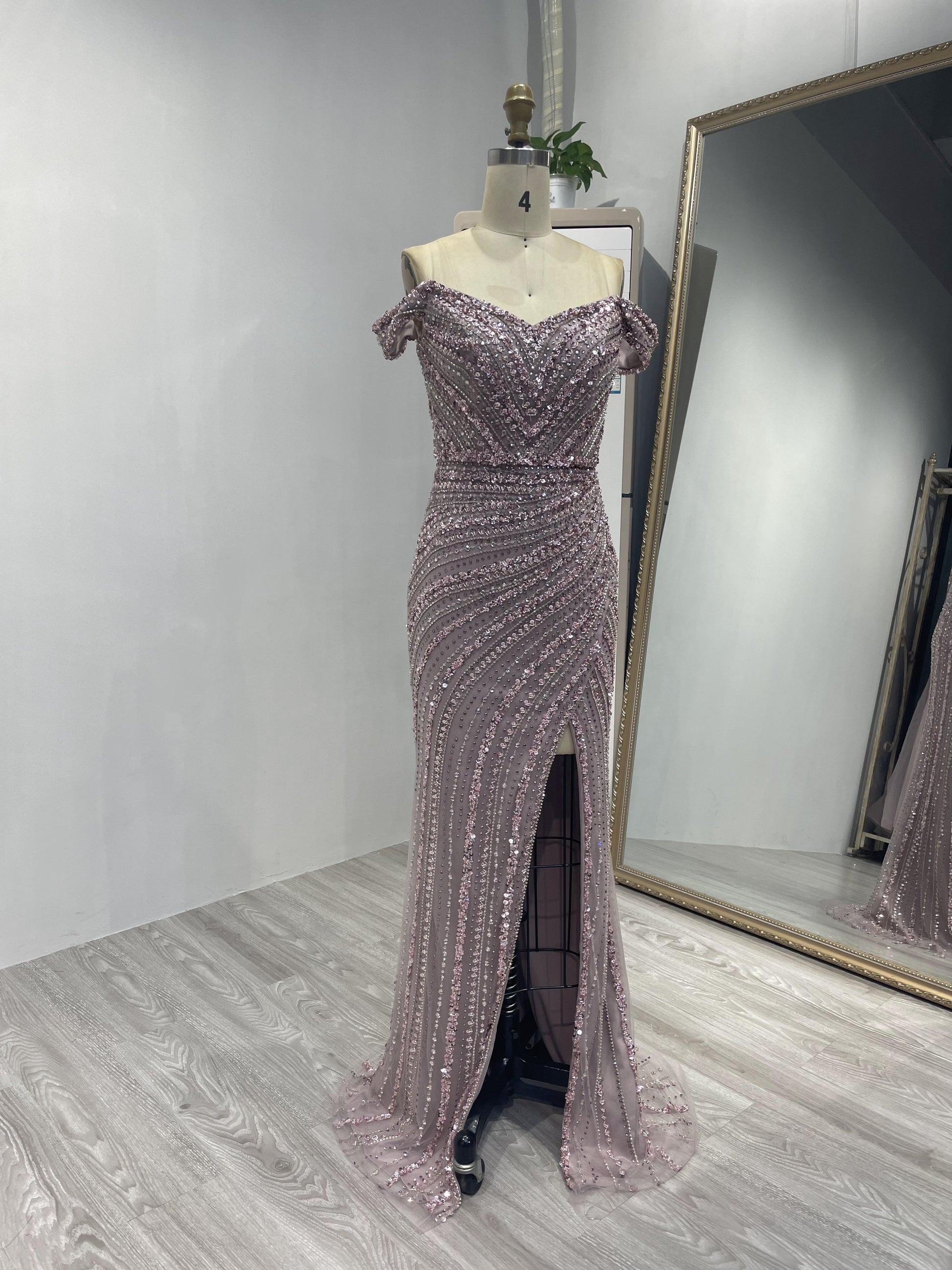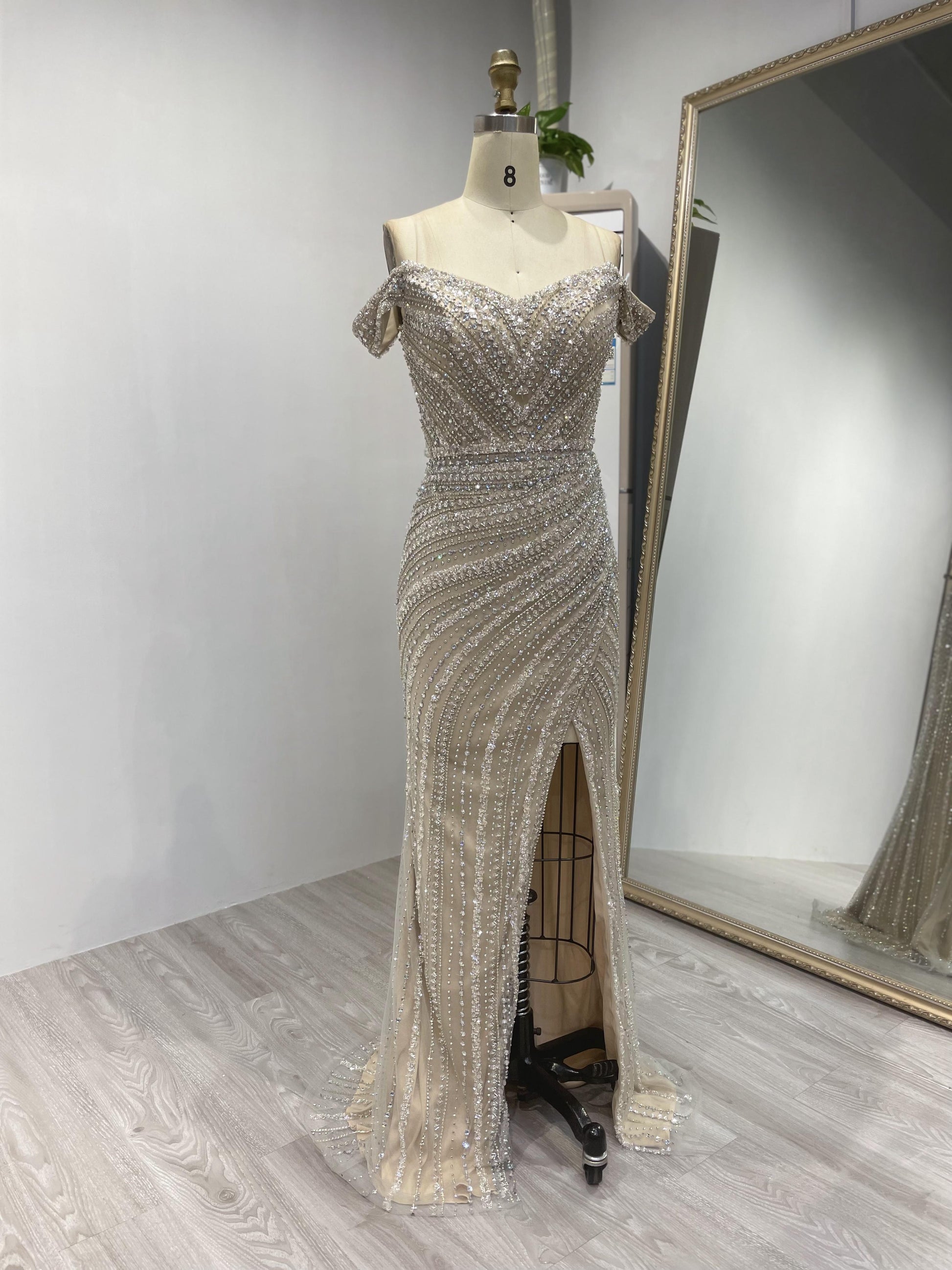 Off Shoulder Couture Beading High Split Evening Dress DSL62482-2