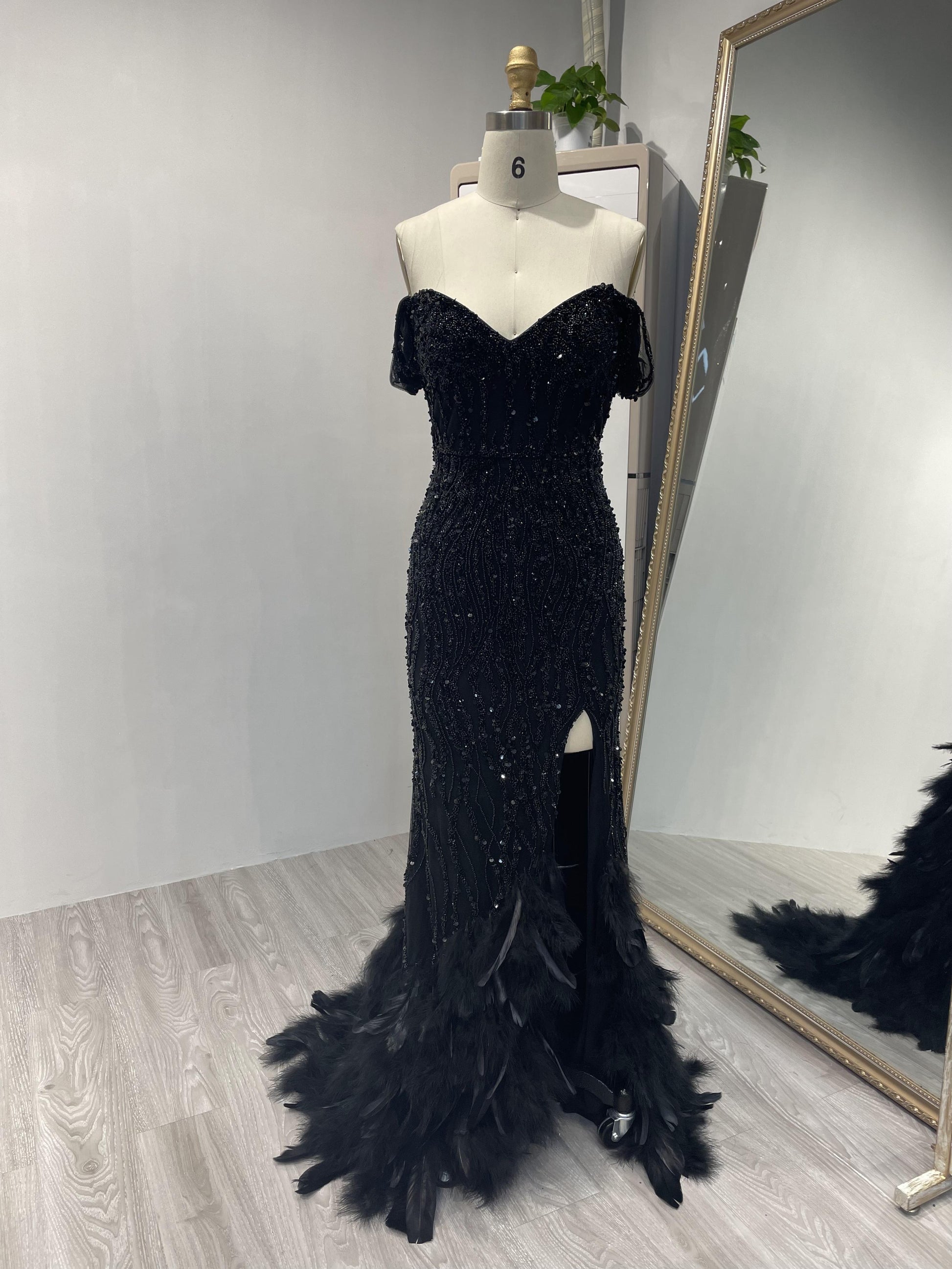 Off Shoulder Haute Couture Beading Feather Evening Dress MB40001