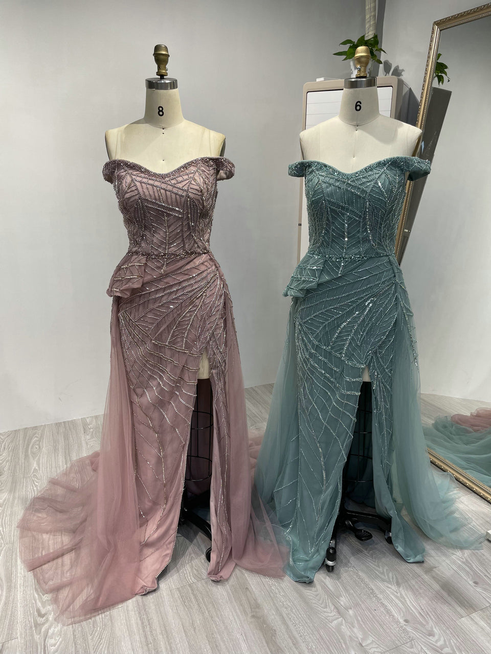 Luxury Handmade Beading Off Shoulder High Split Evening Dress YD22205