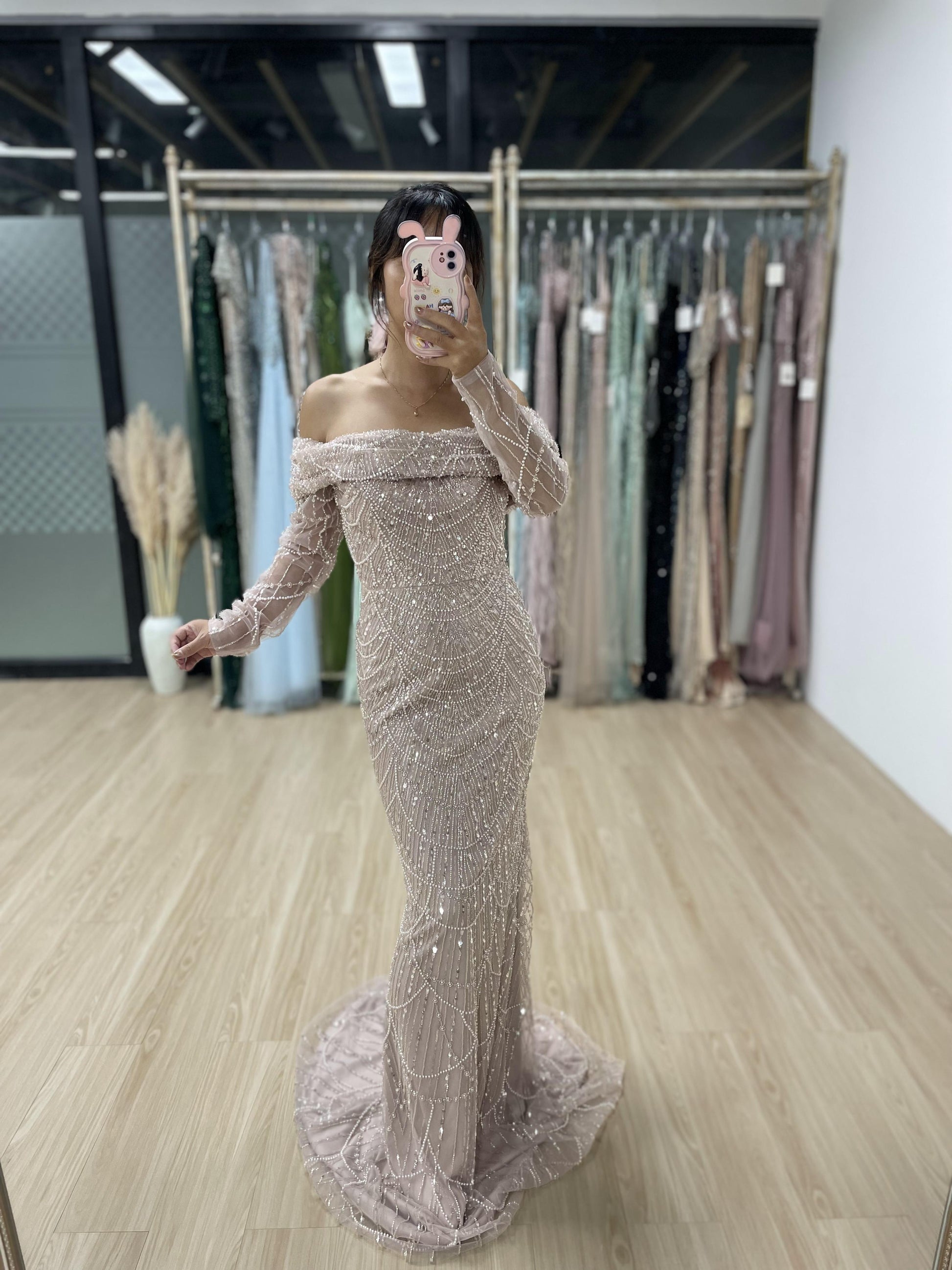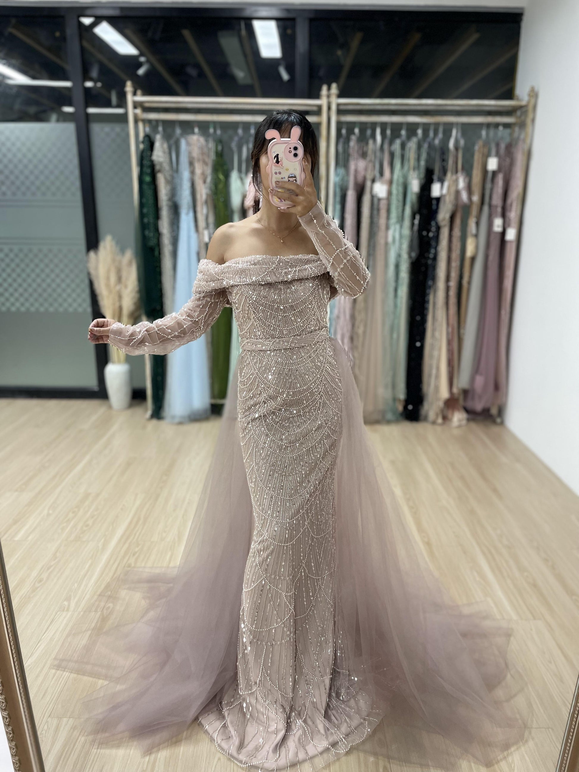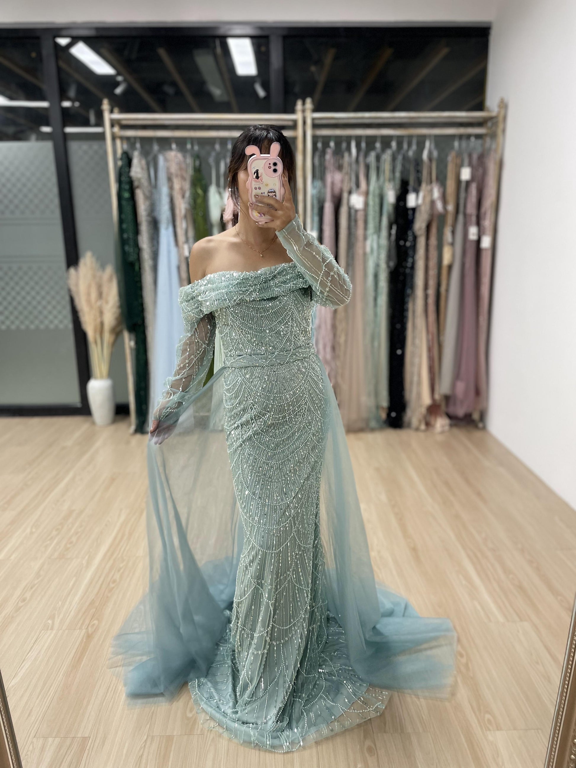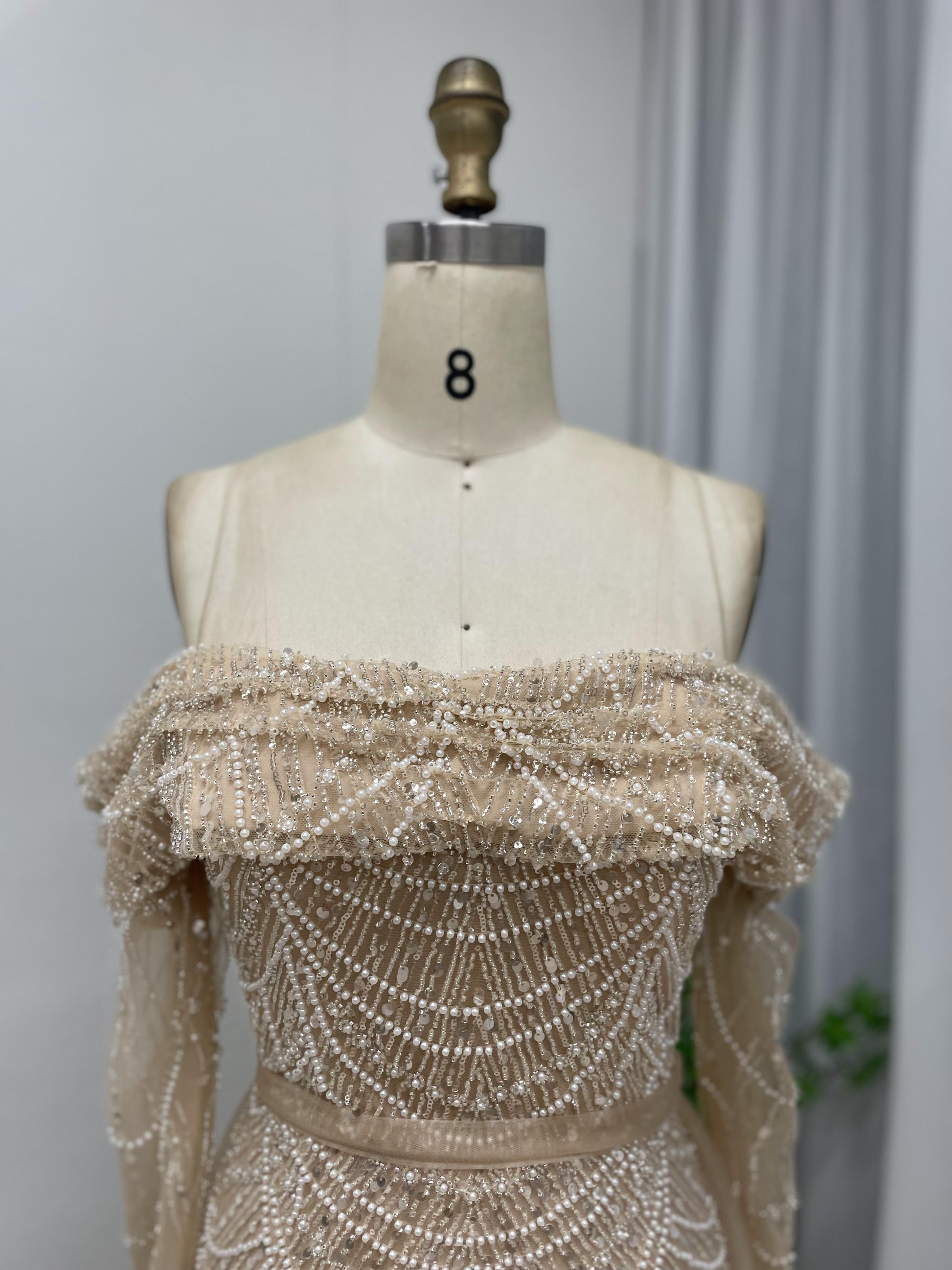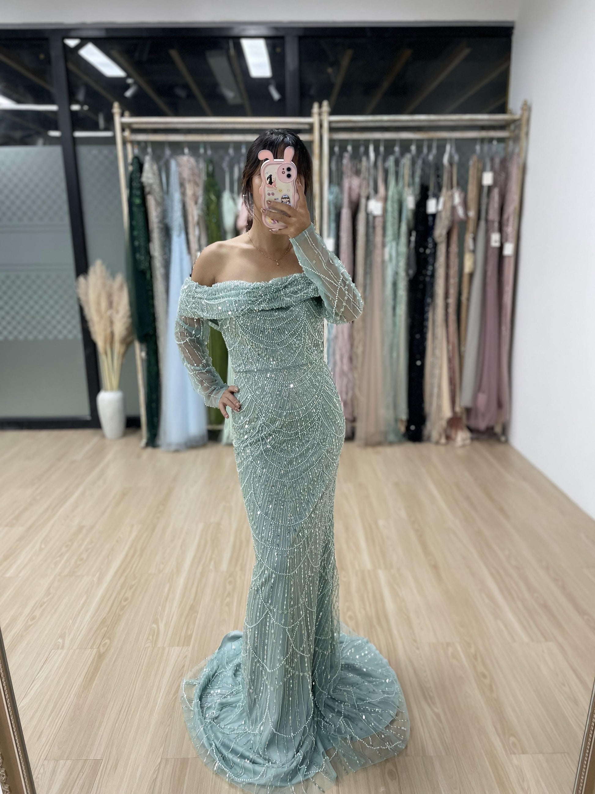 Off Shoulder Long Sleeve Evening Dress MB40047