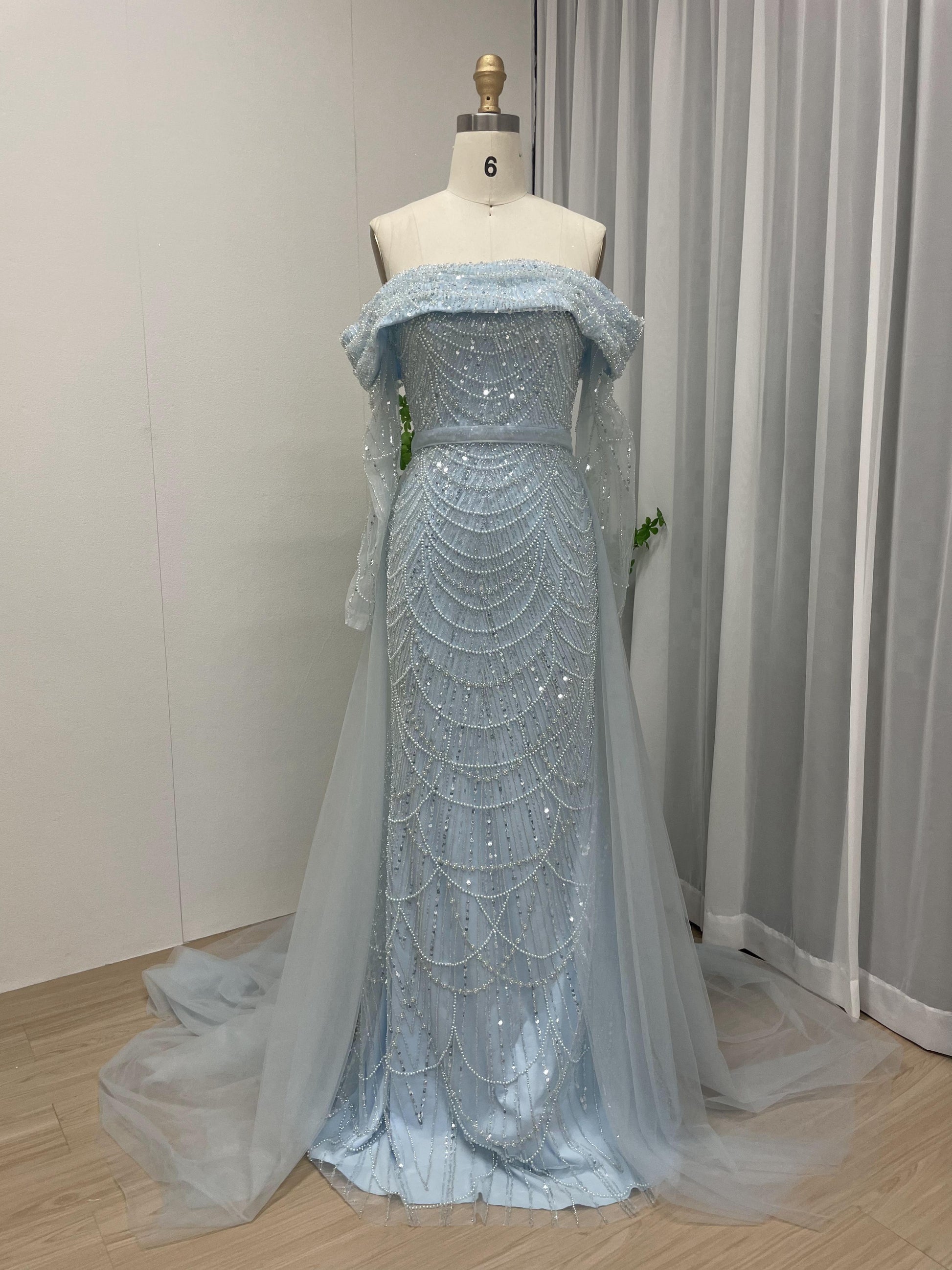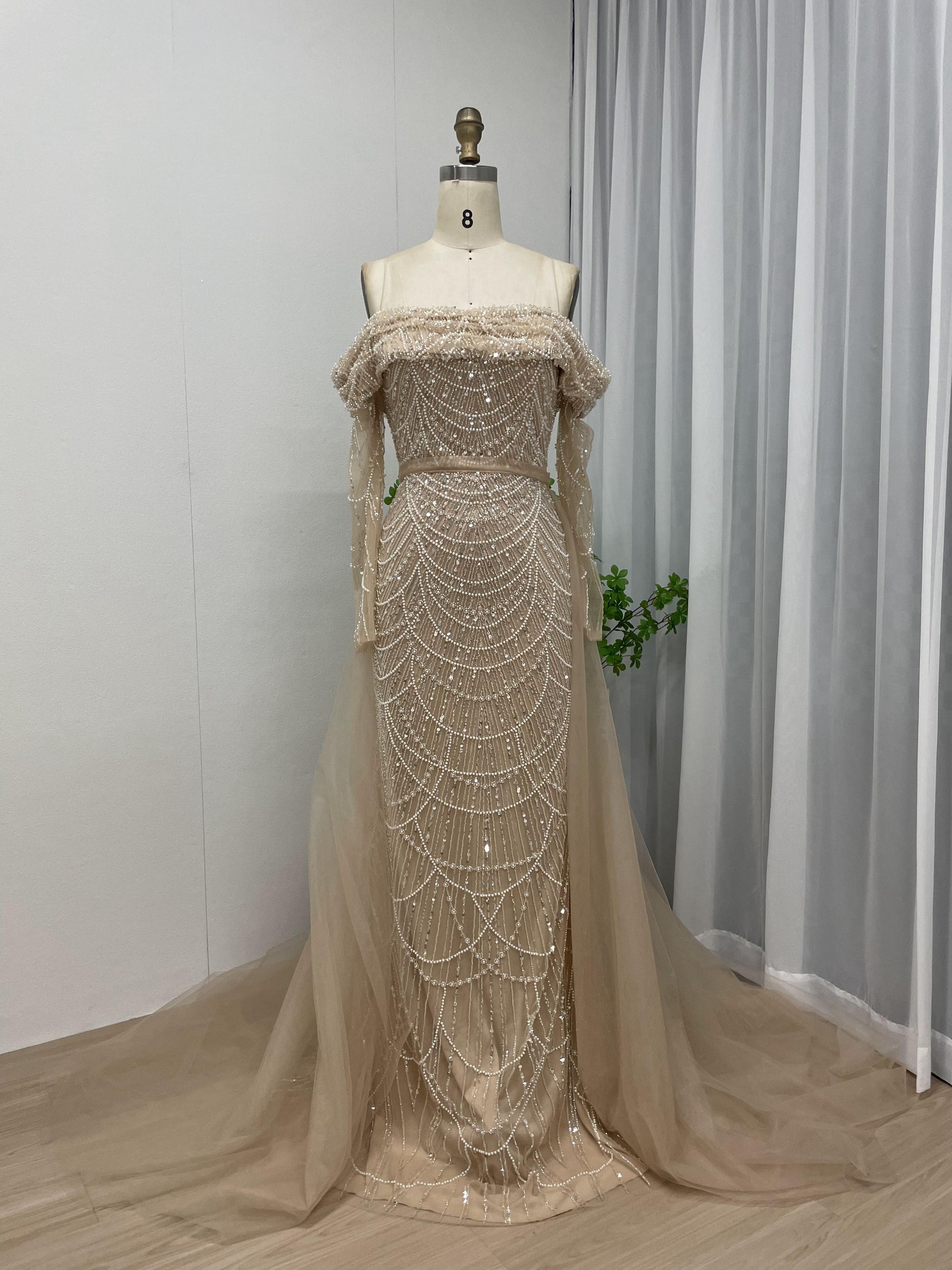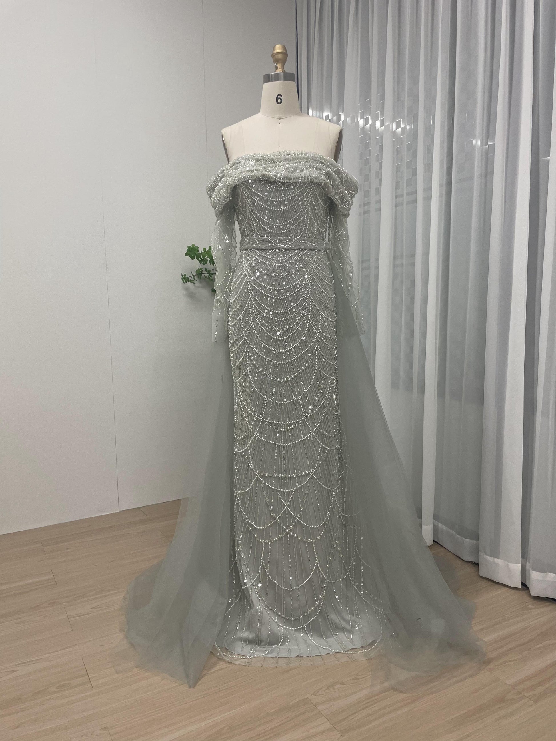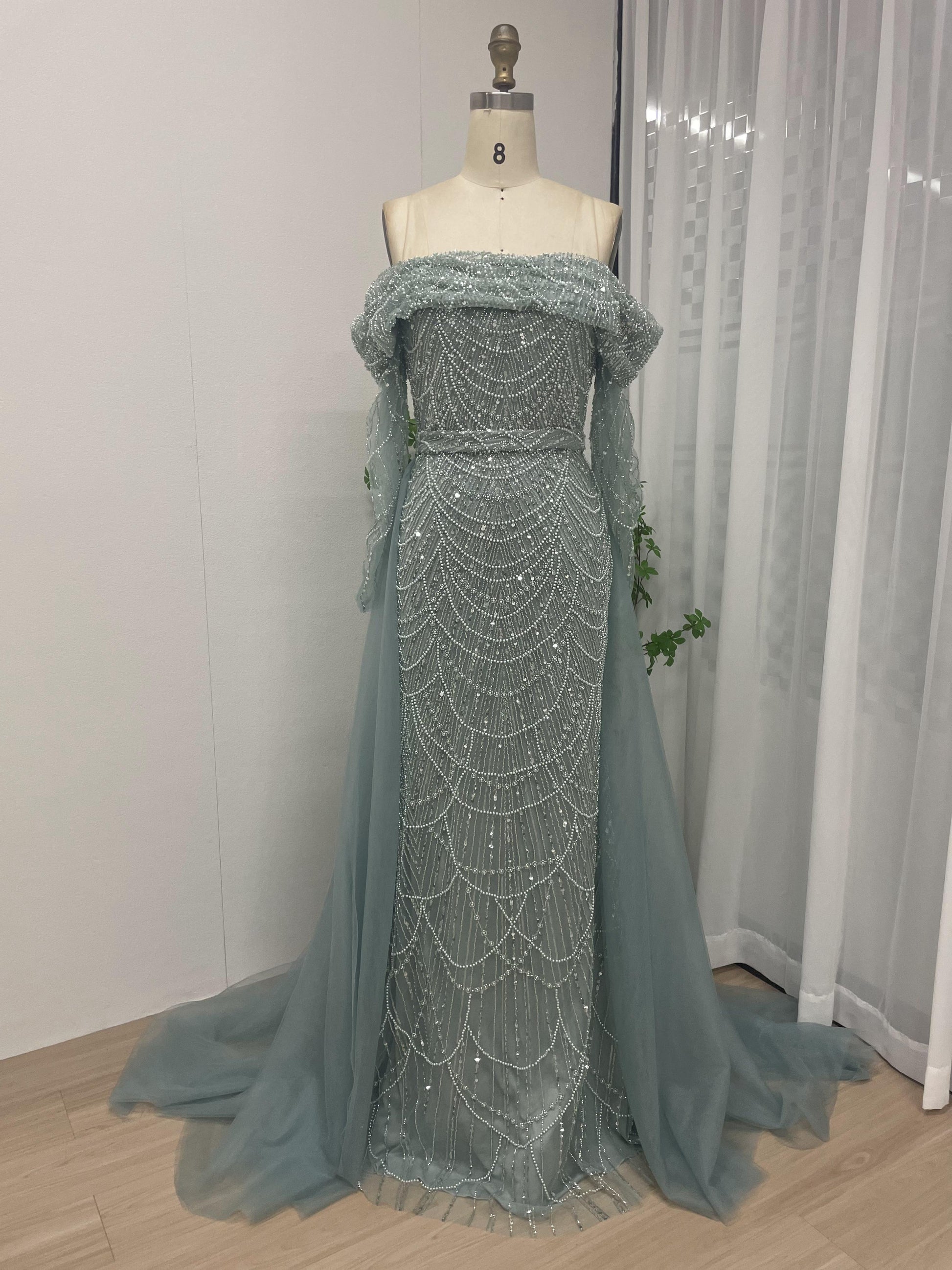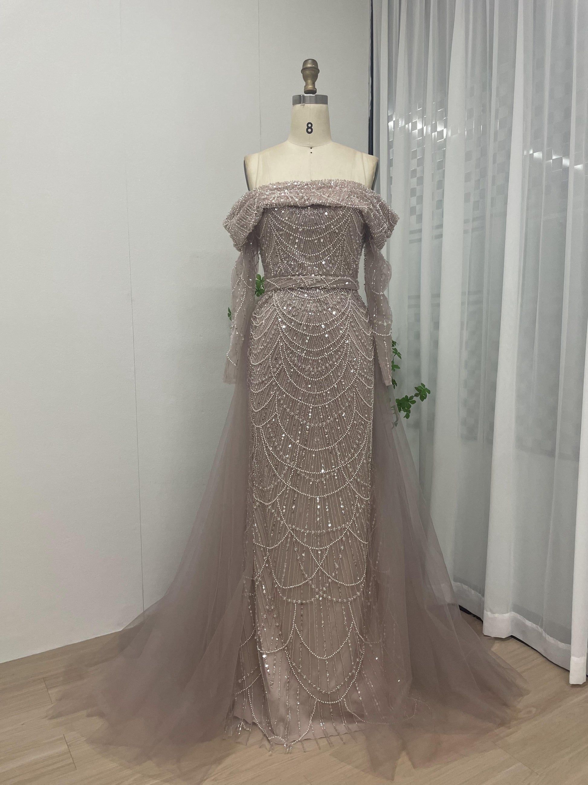 Off Shoulder Long Sleeve Evening Dress MB40047