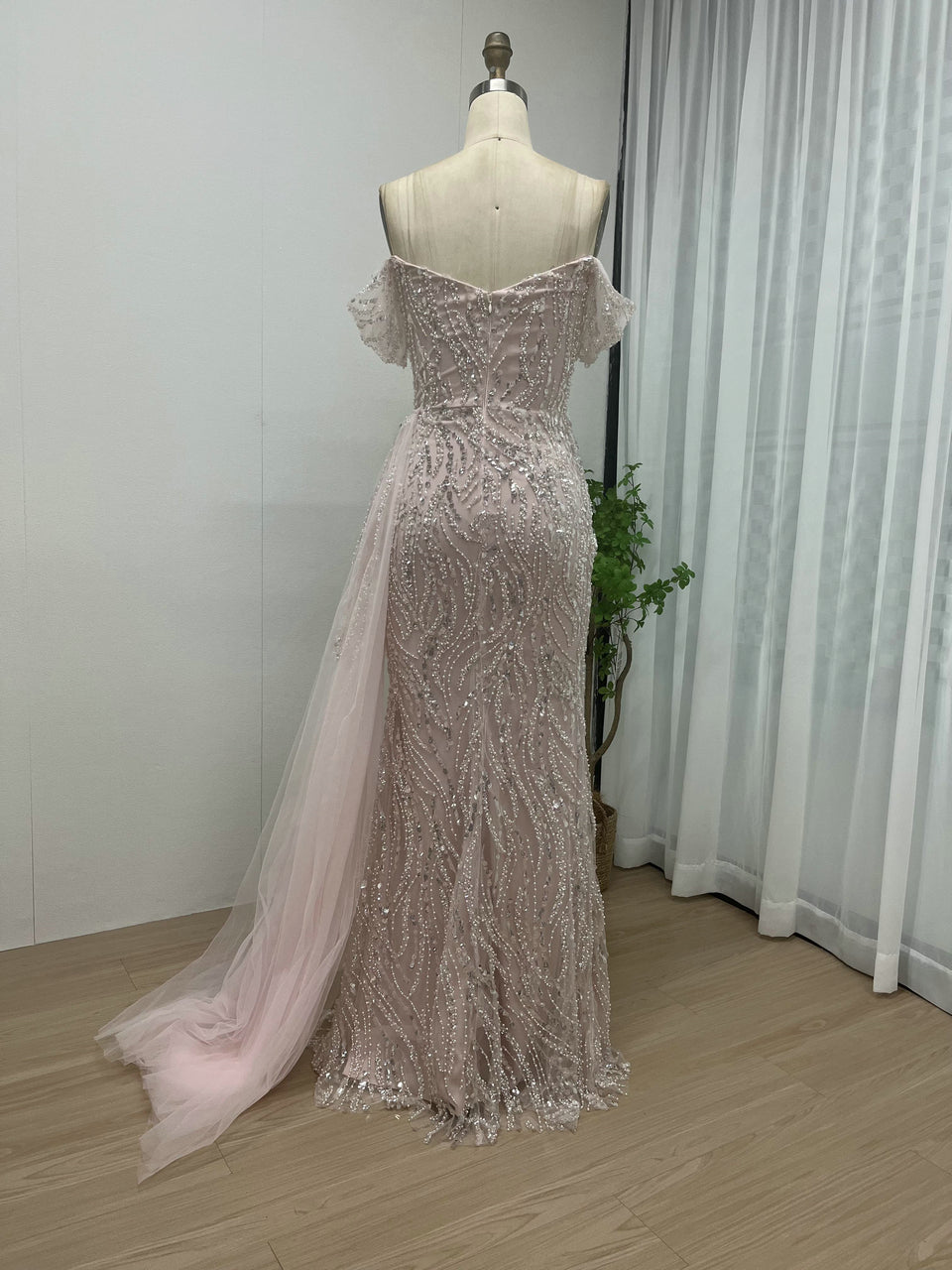 Off Shoulder Ruffle Beading Lace Split Engagement Party Evening Dress MY30022