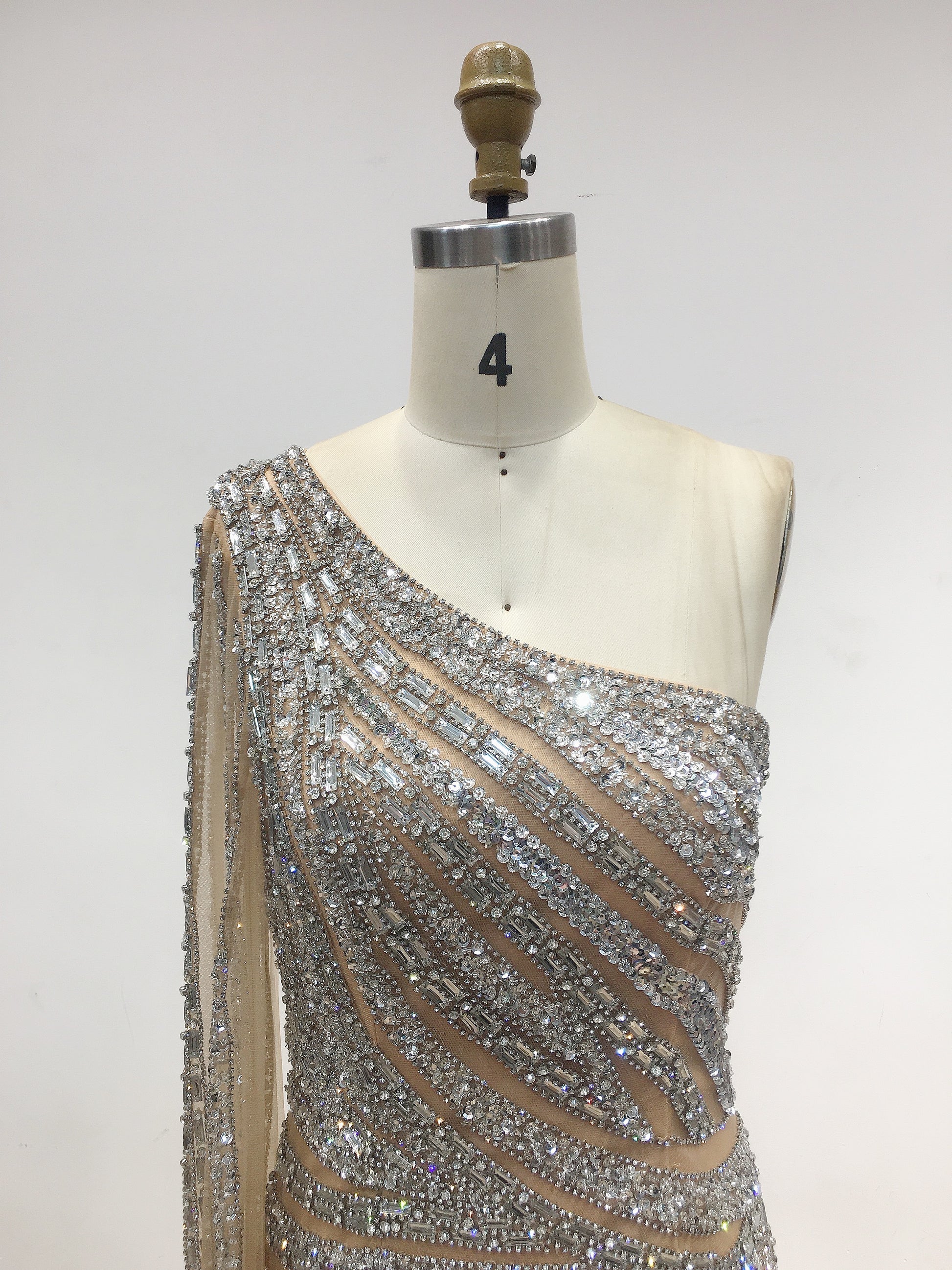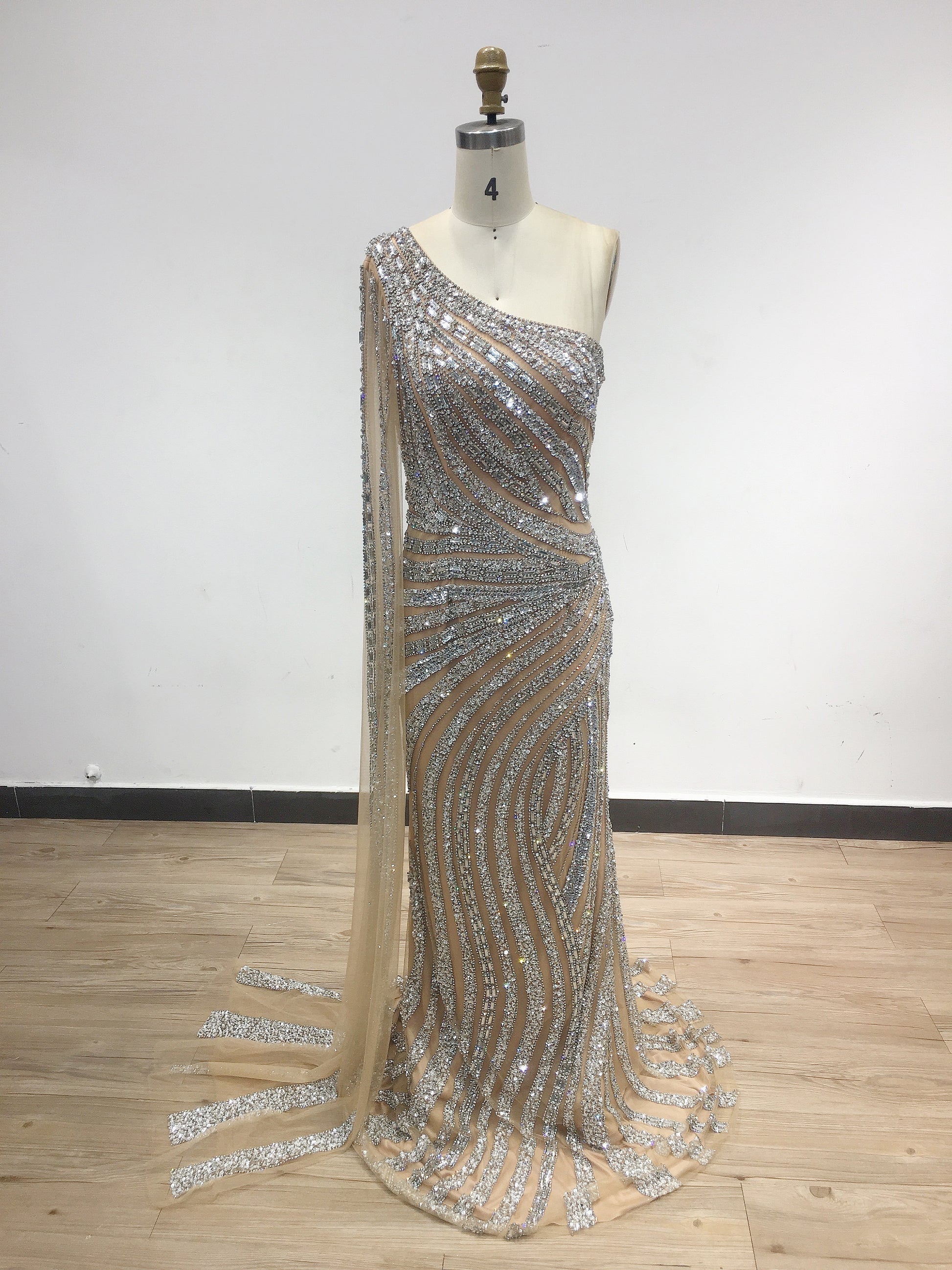 One Shoulder Beading Couture Flowing Sleeve Evening Dress DSA16139