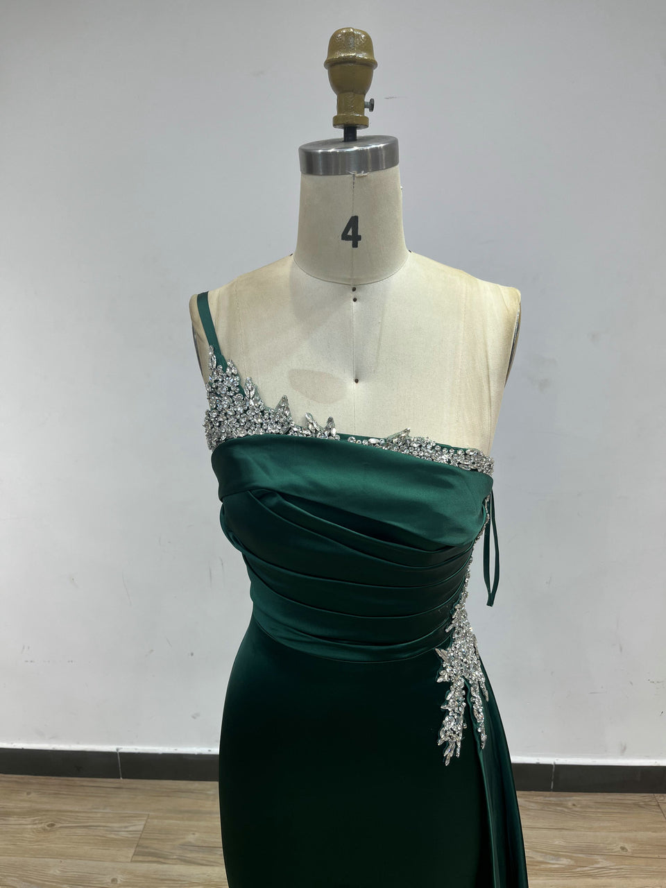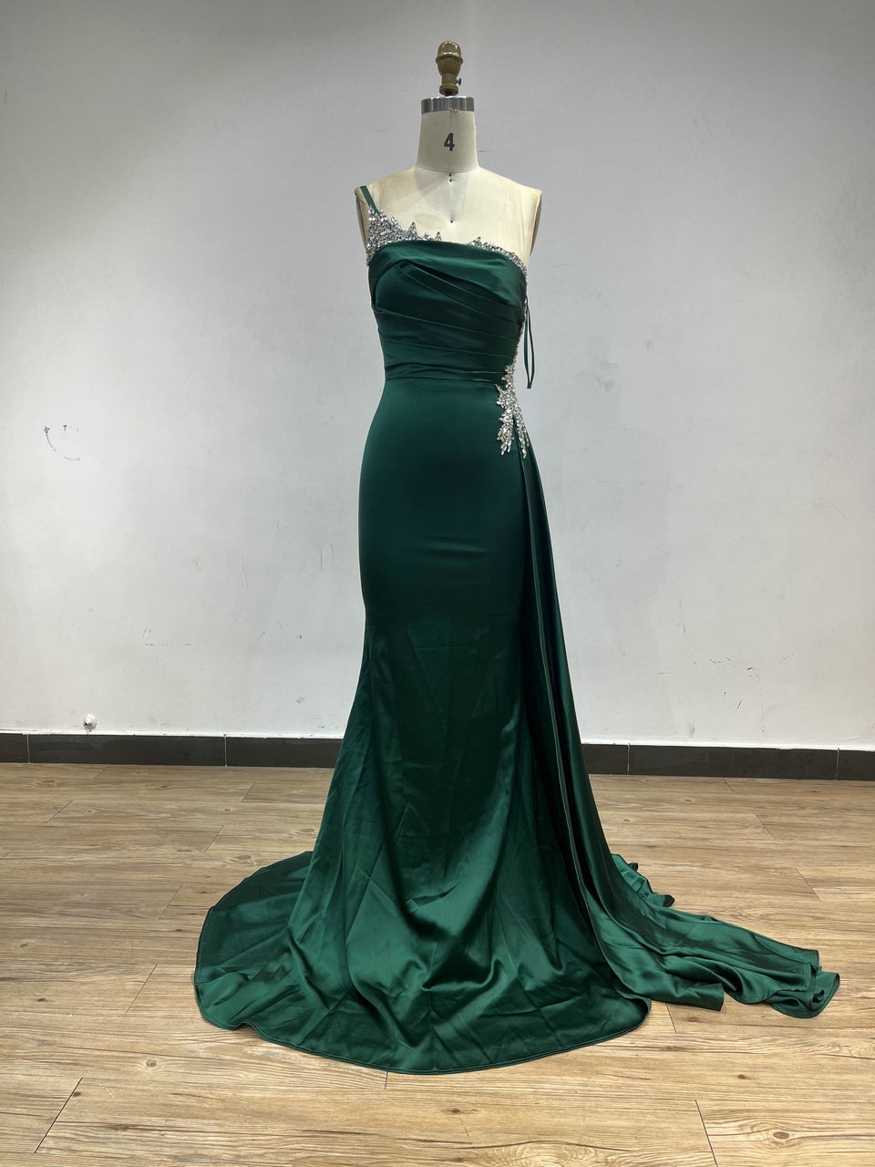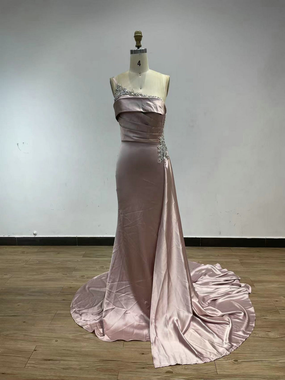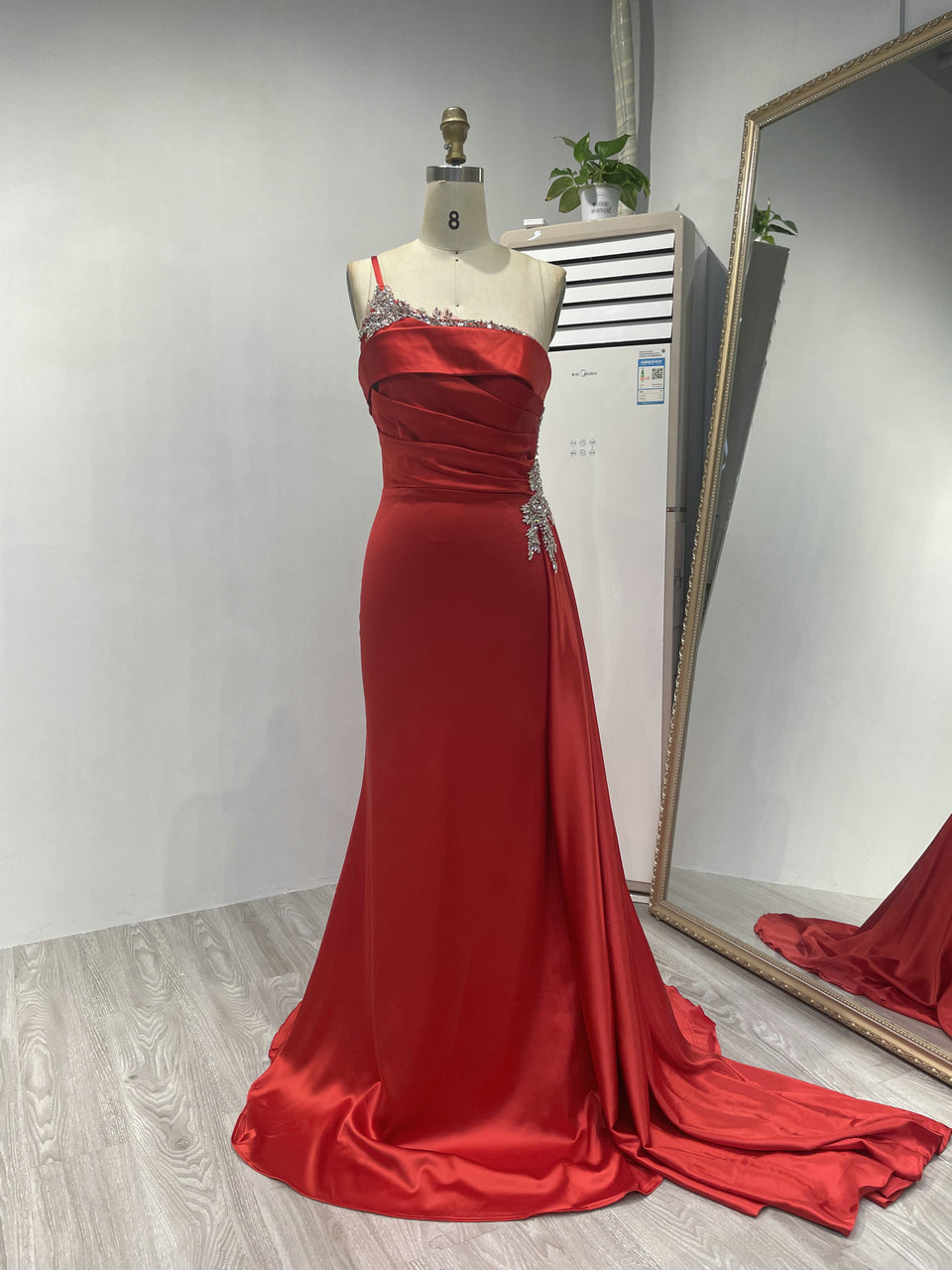 One Shoulder Beading Ruffle Satin Evening Dress MC20015