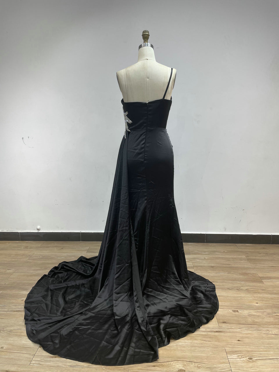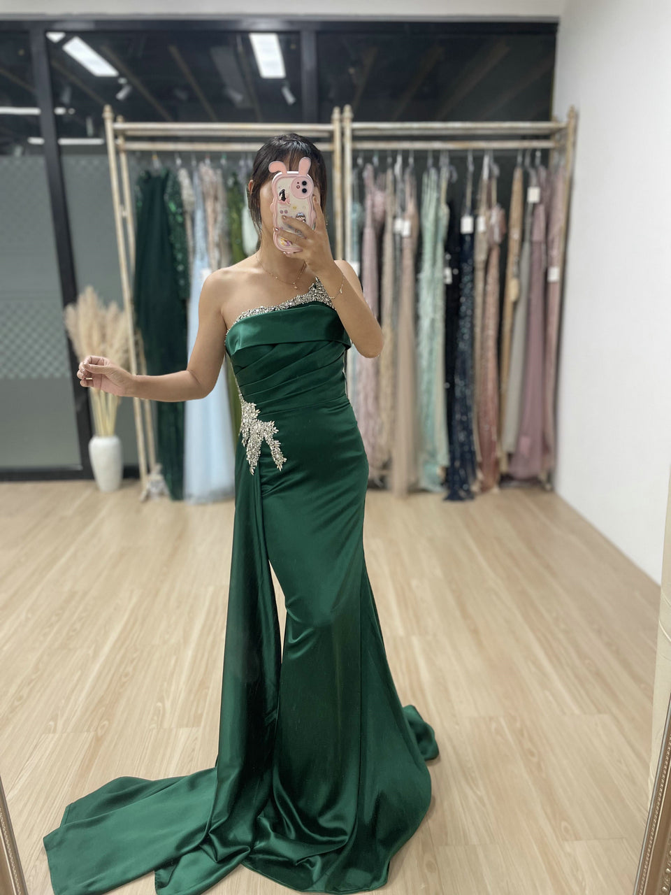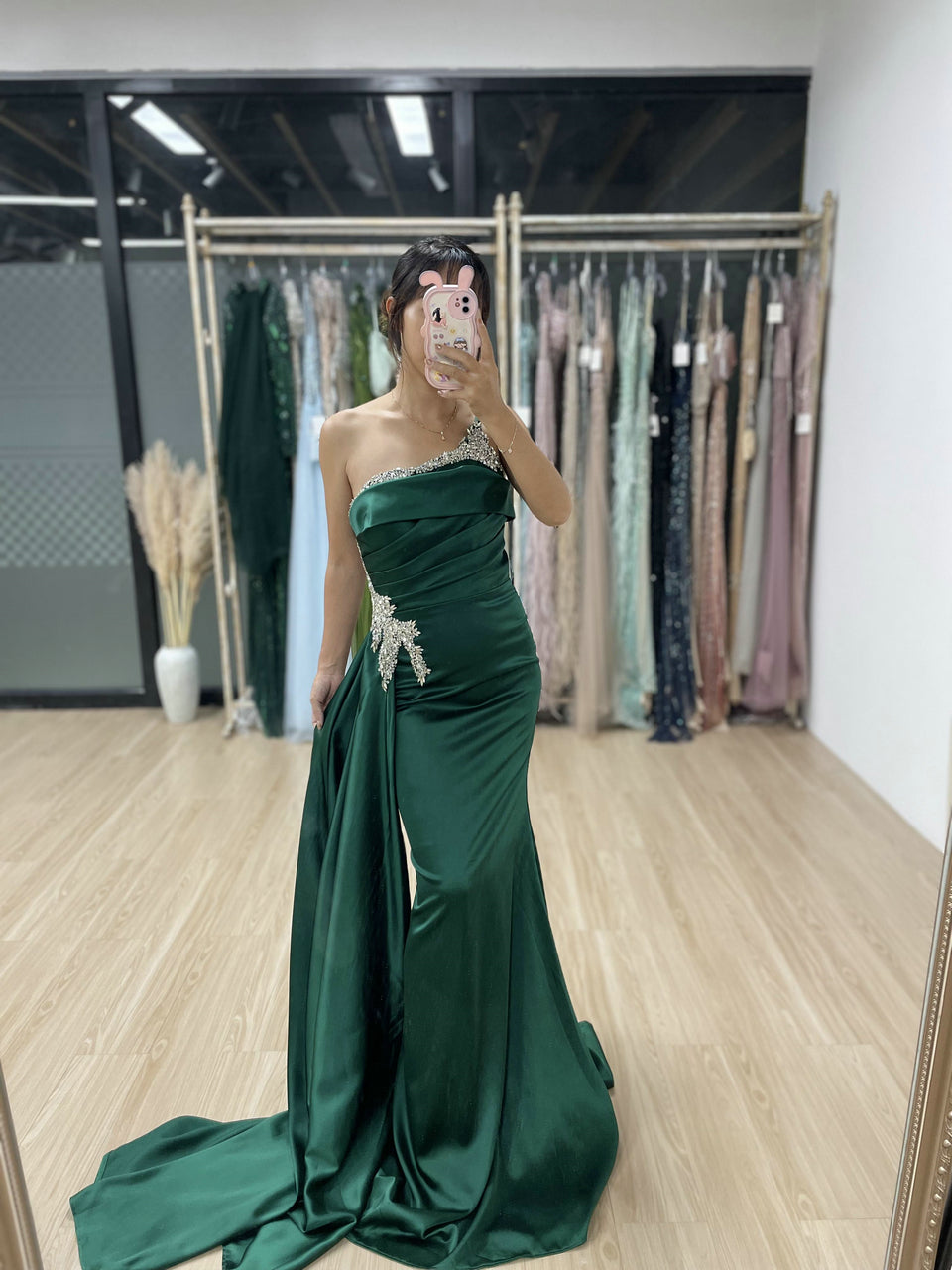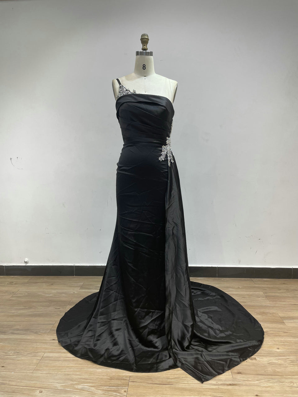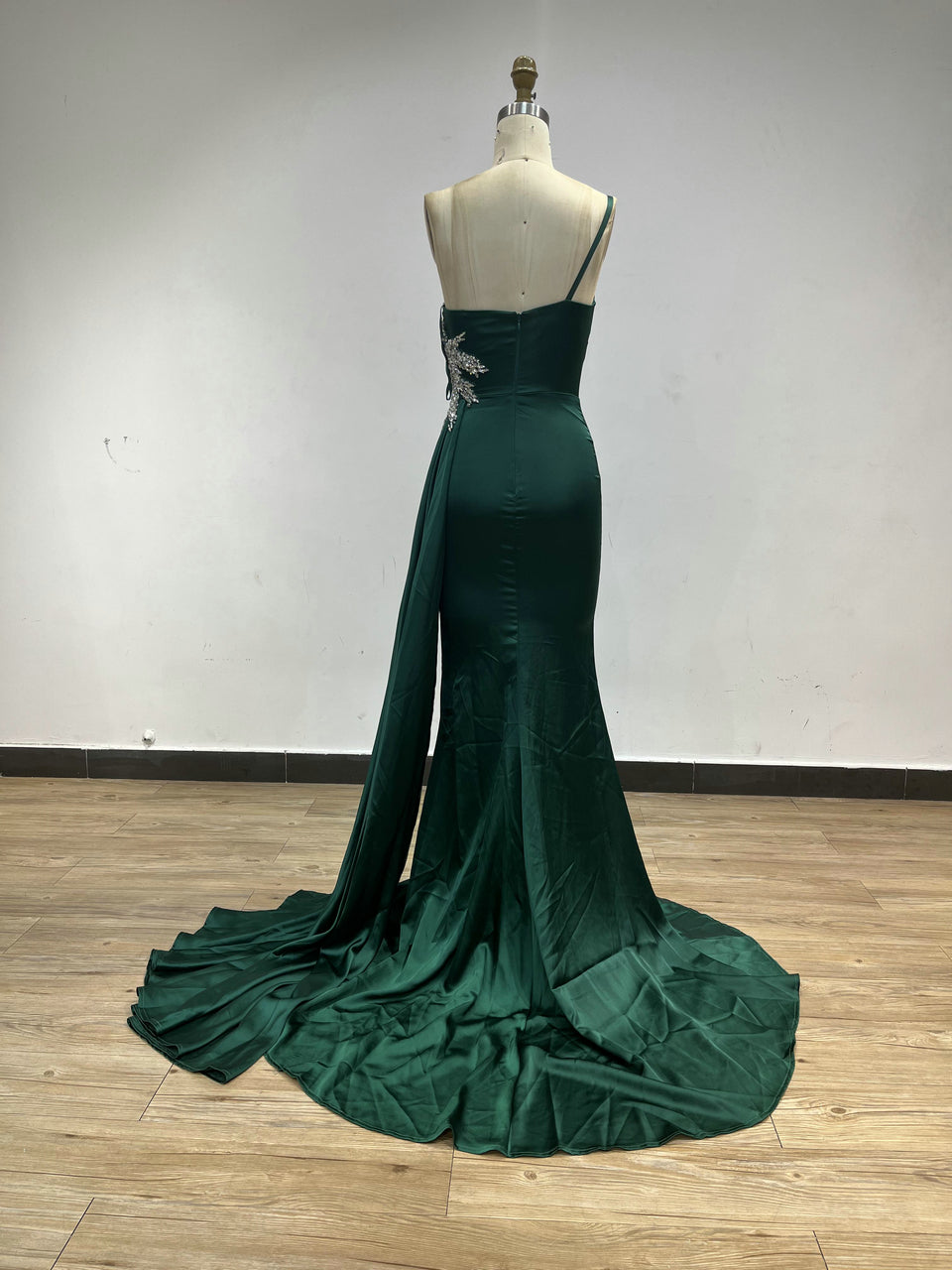 One Shoulder Beading Ruffle Satin Evening Dress MC20015