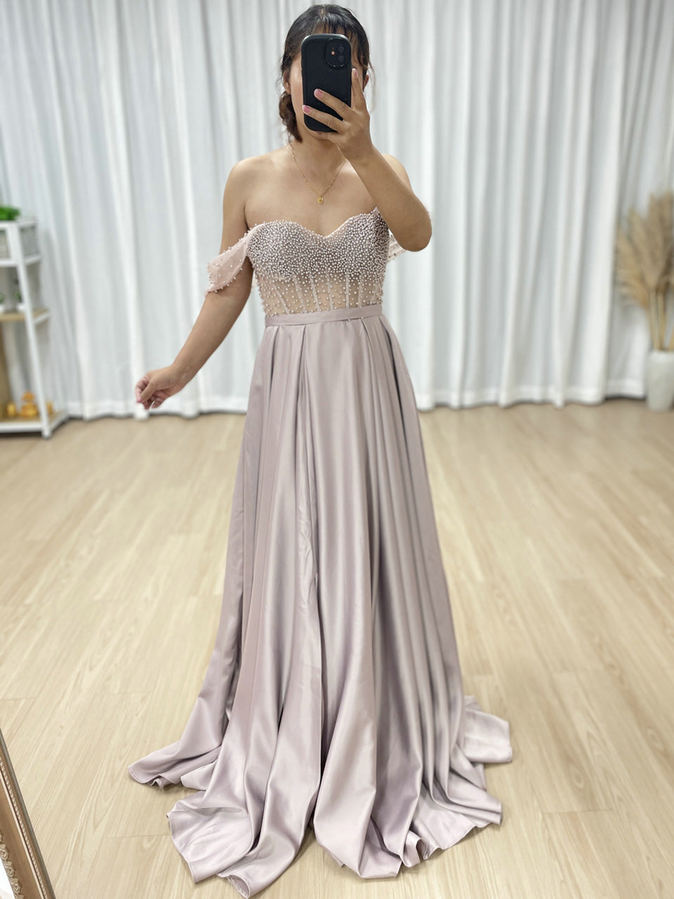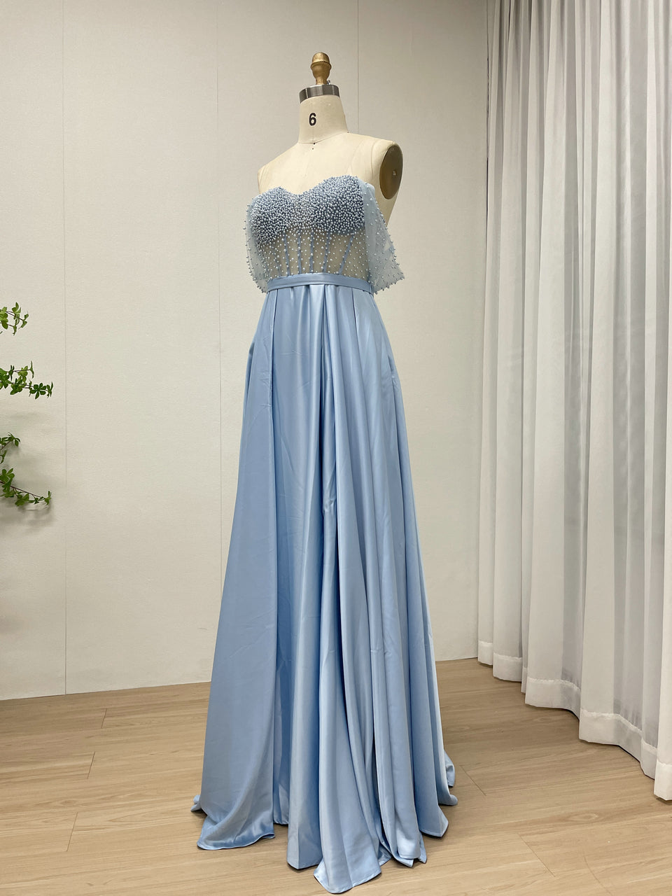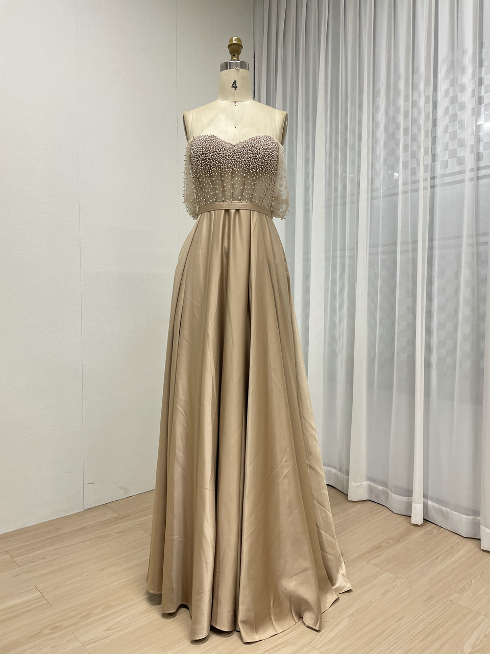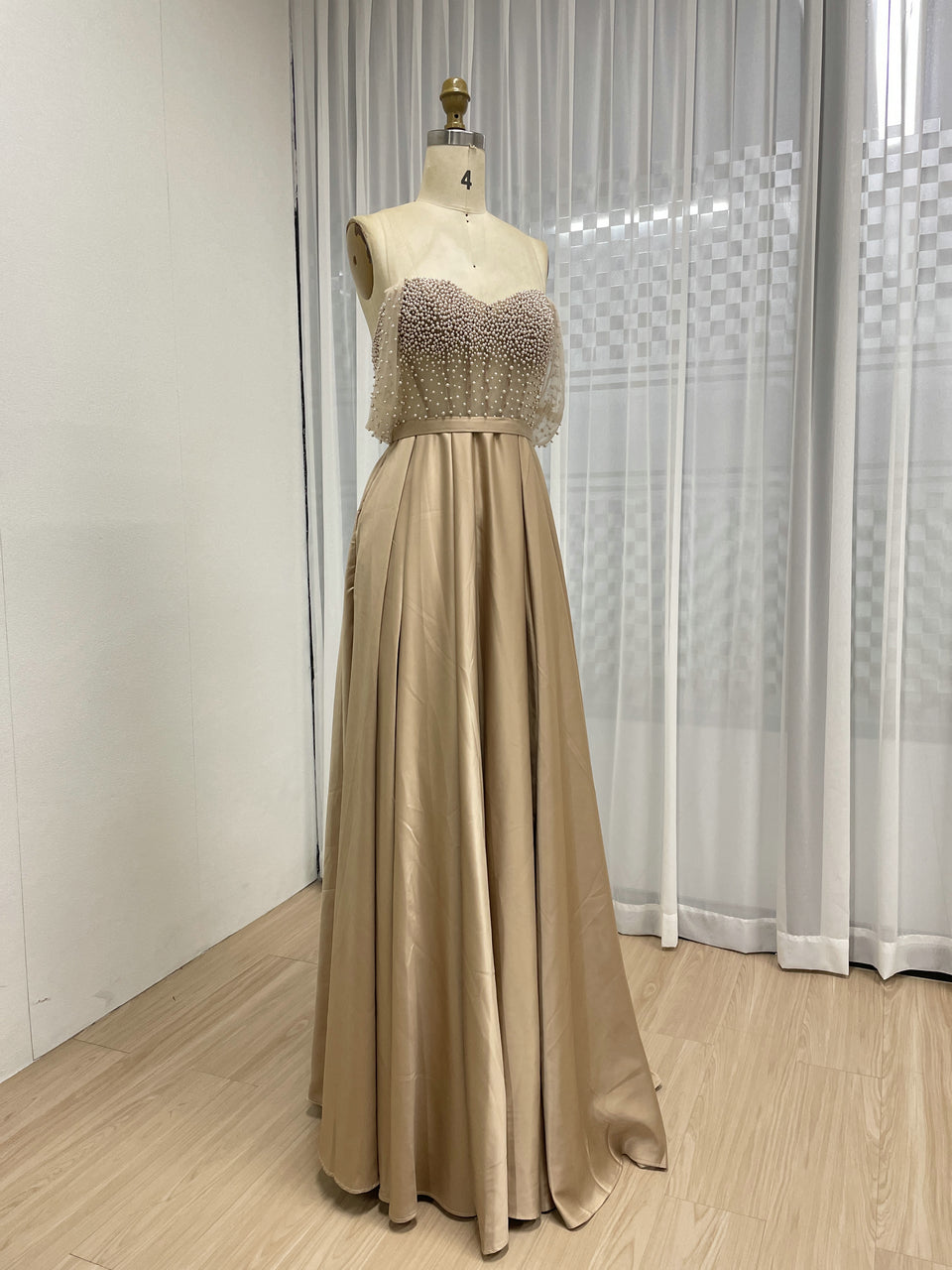 Pink Strapless Beaded Bodice A-Line Evening Dress Satin Skirt Formal Prom MY30150
