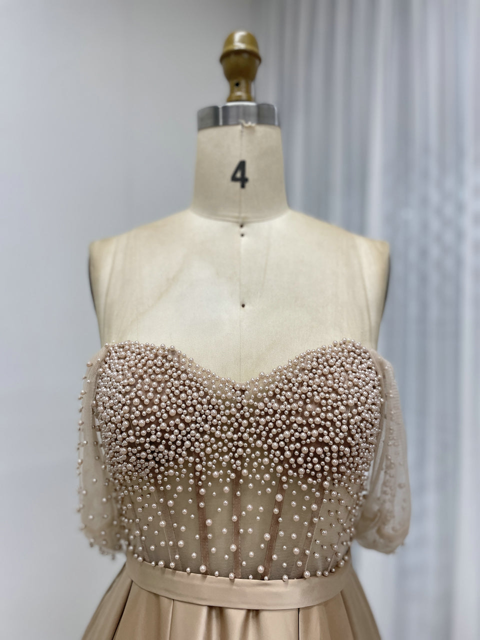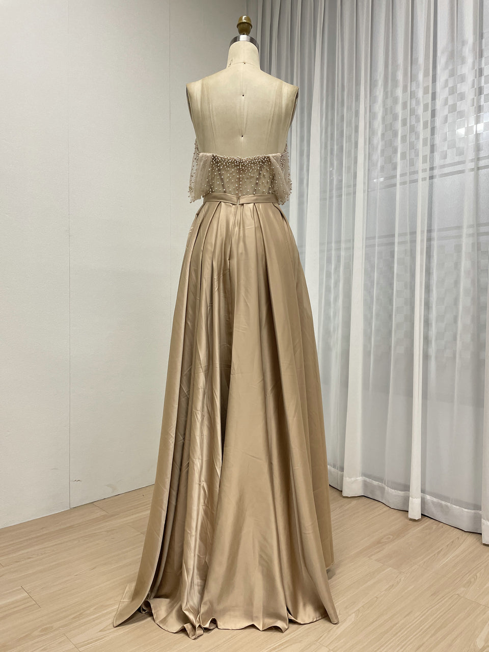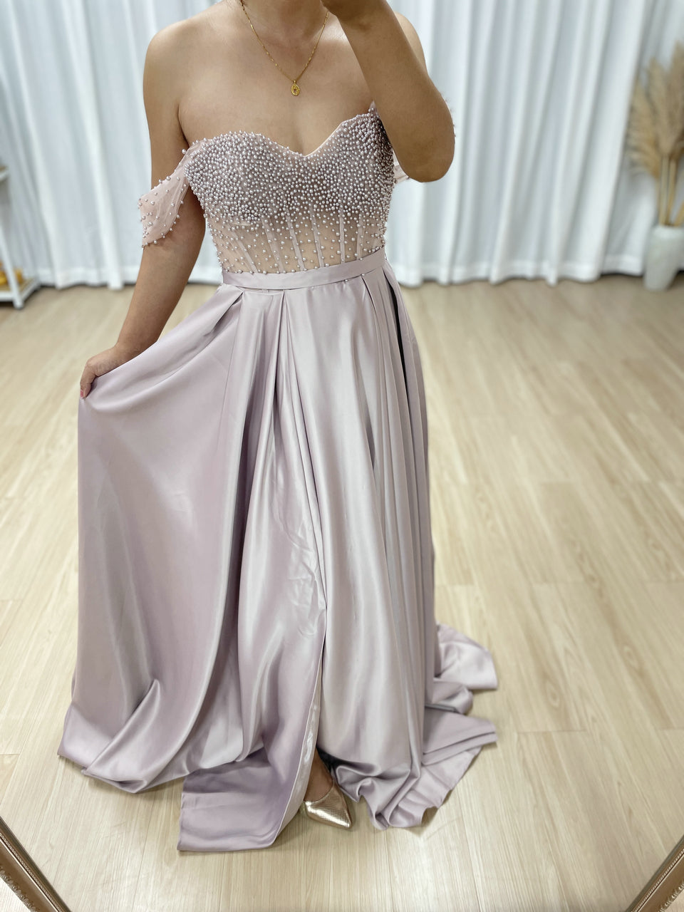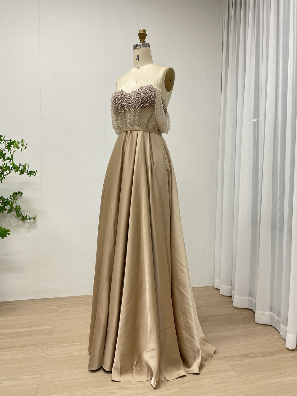 Pink Strapless Beaded Bodice A-Line Evening Dress Satin Skirt Formal Prom MY30150