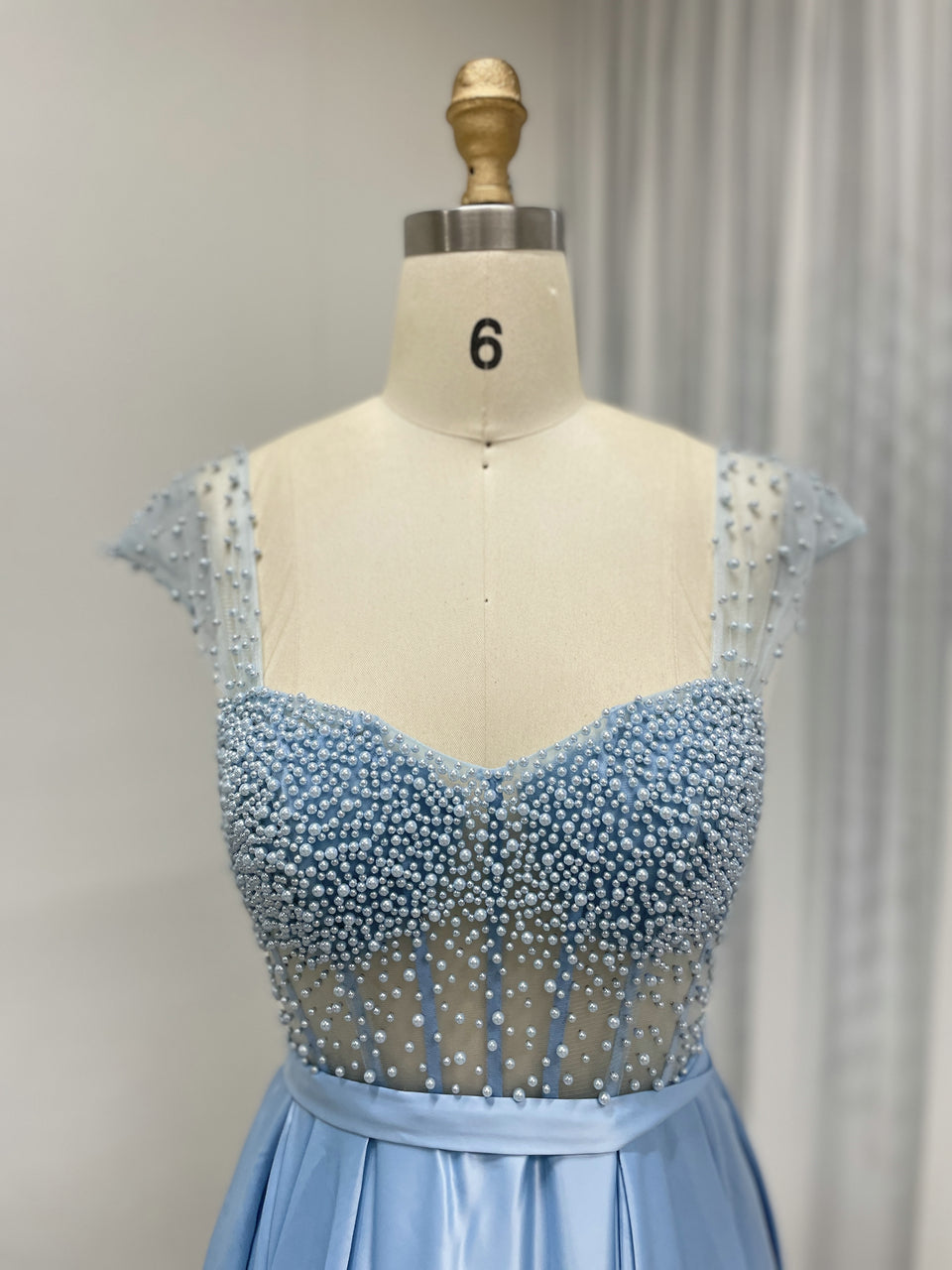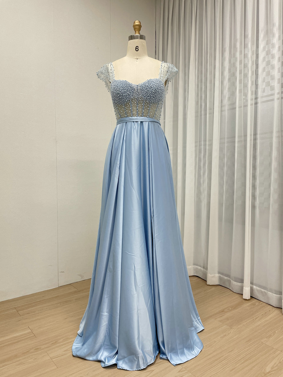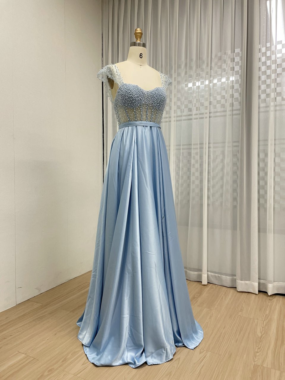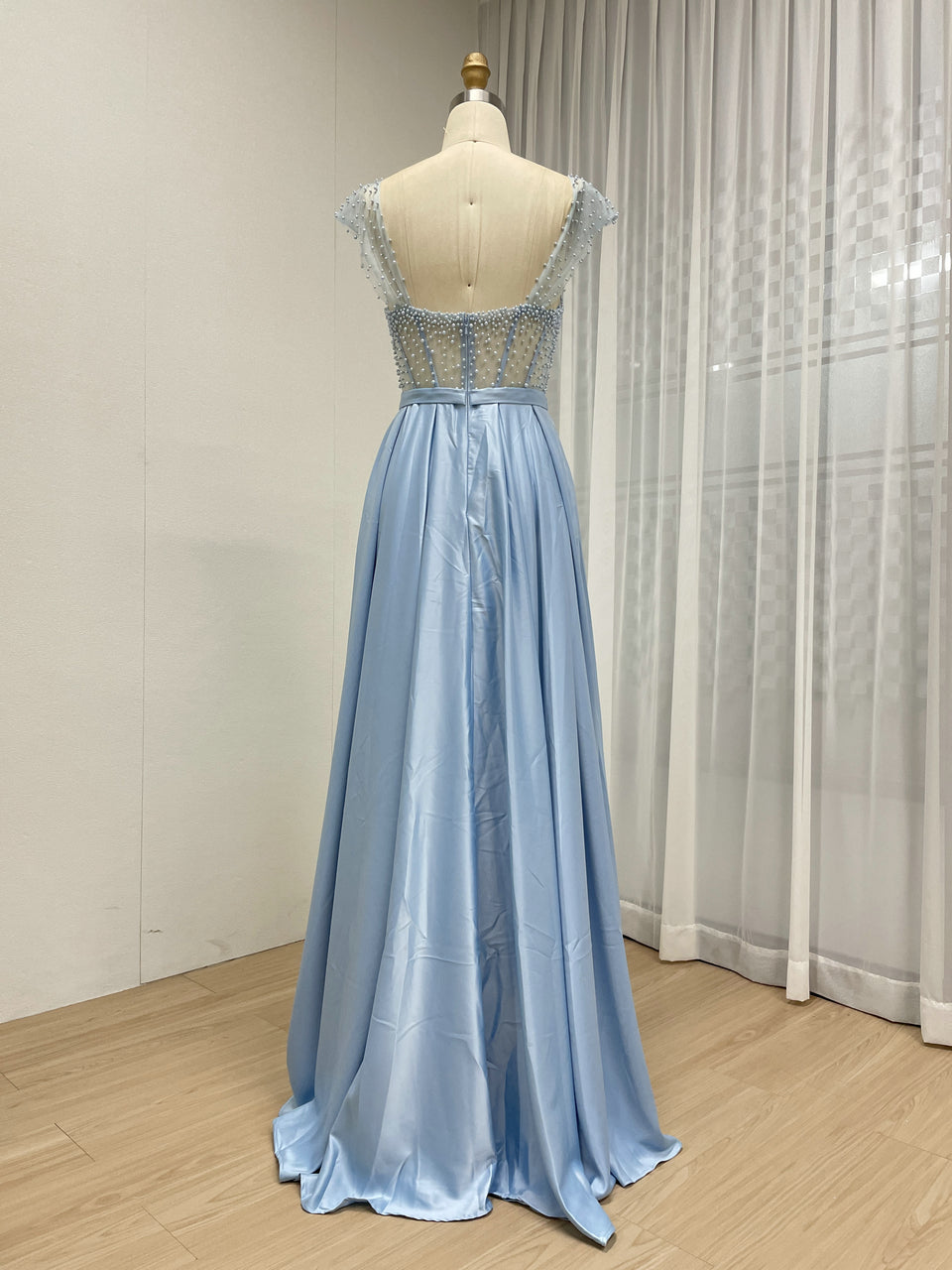 Pink Strapless Beaded Bodice A-Line Evening Dress Satin Skirt Formal Prom MY30150