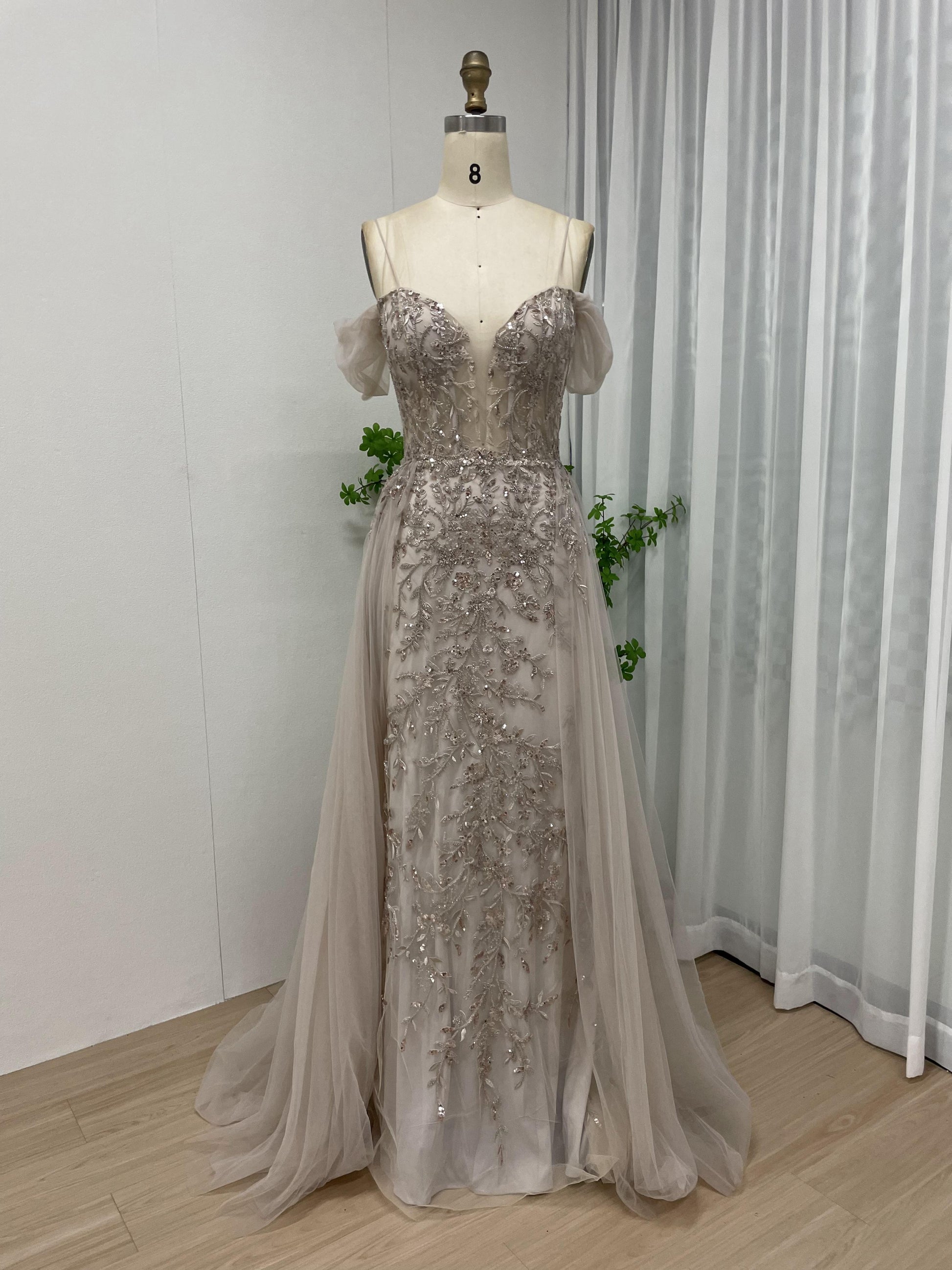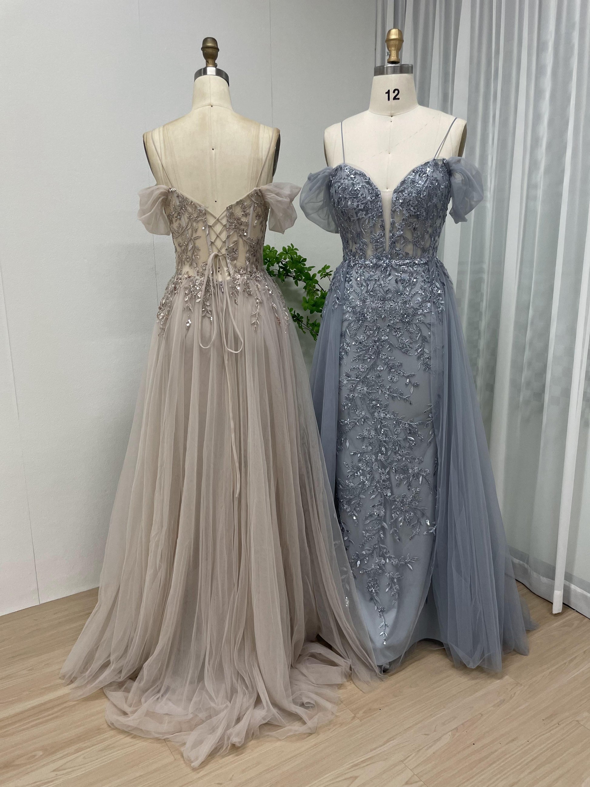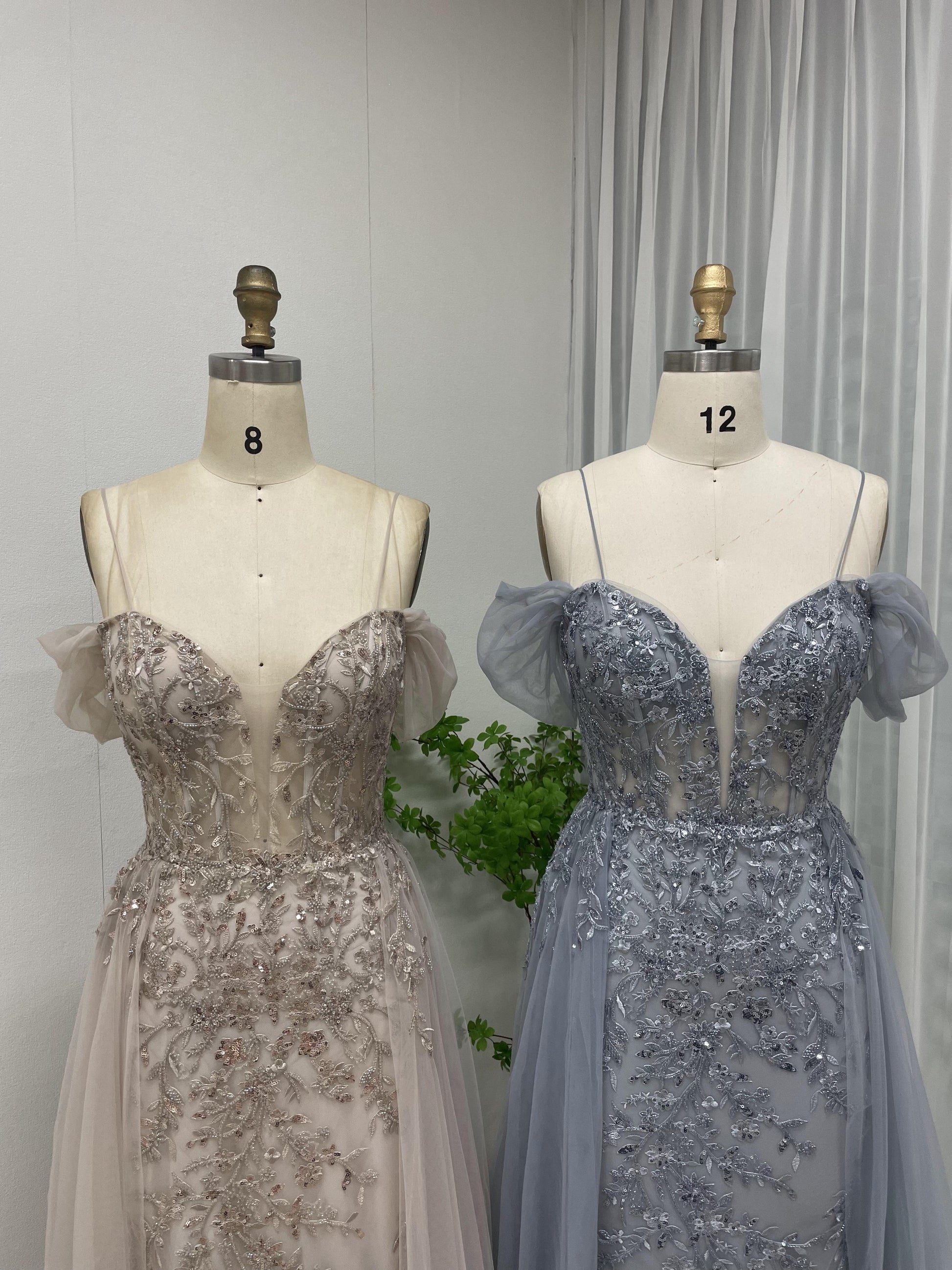Pretty Off Shoulder Tulle Skirt Couture Lace Prom Dress MB40083