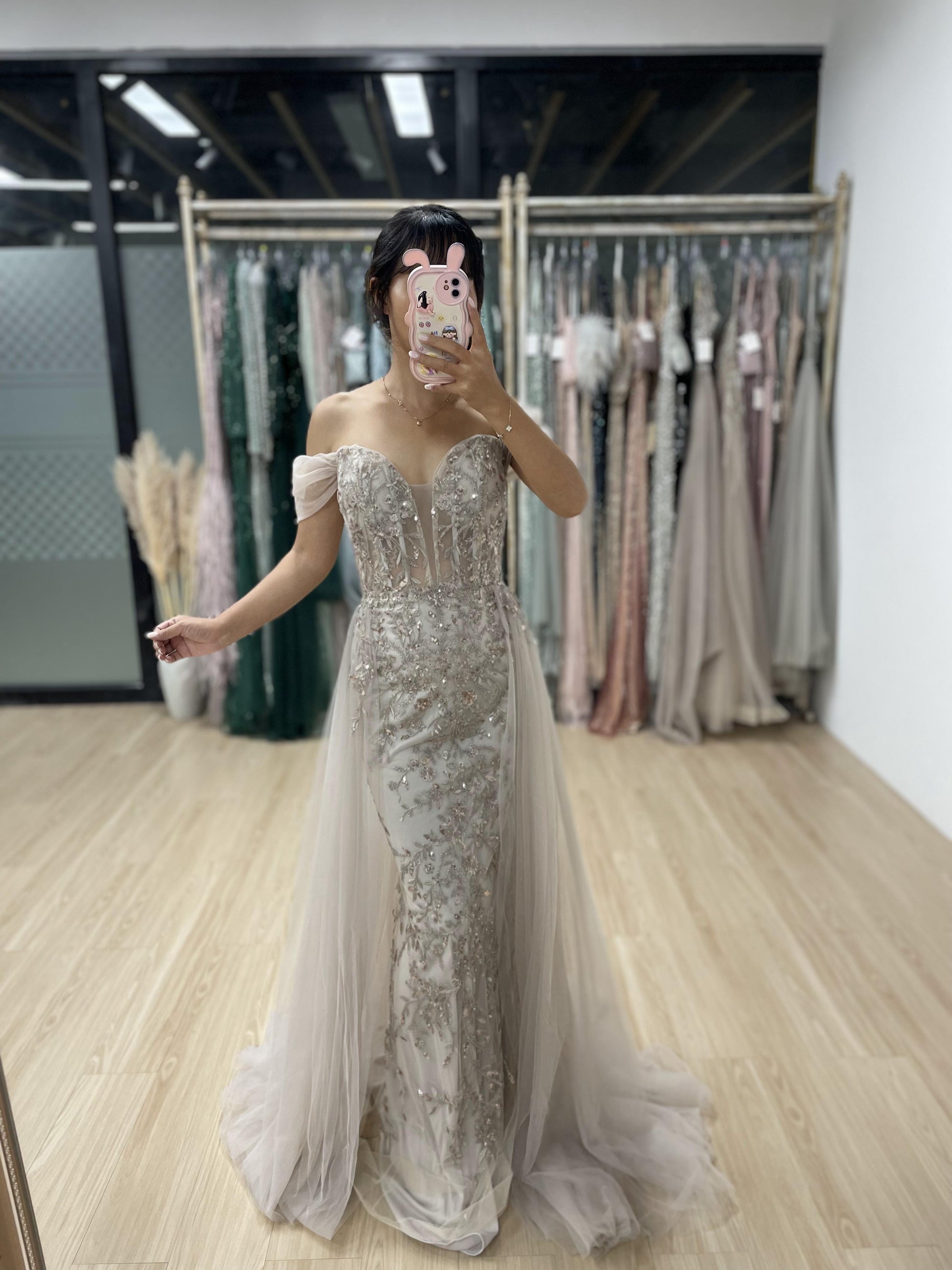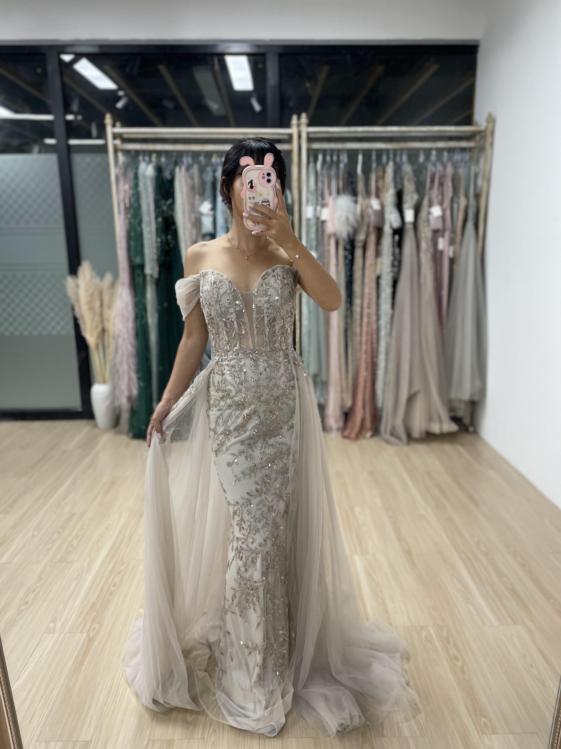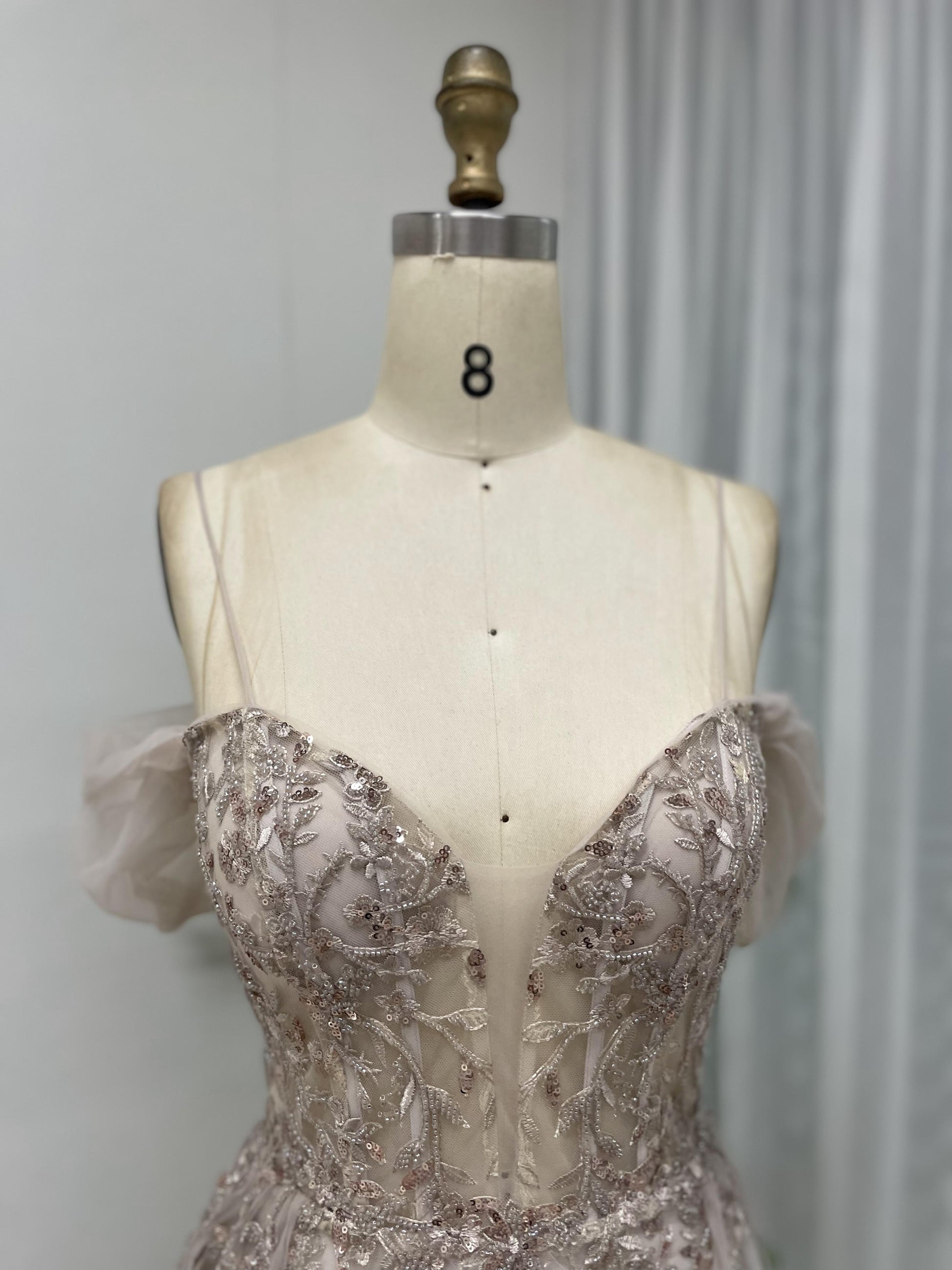 Pretty Off Shoulder Tulle Skirt Couture Lace Prom Dress MB40083