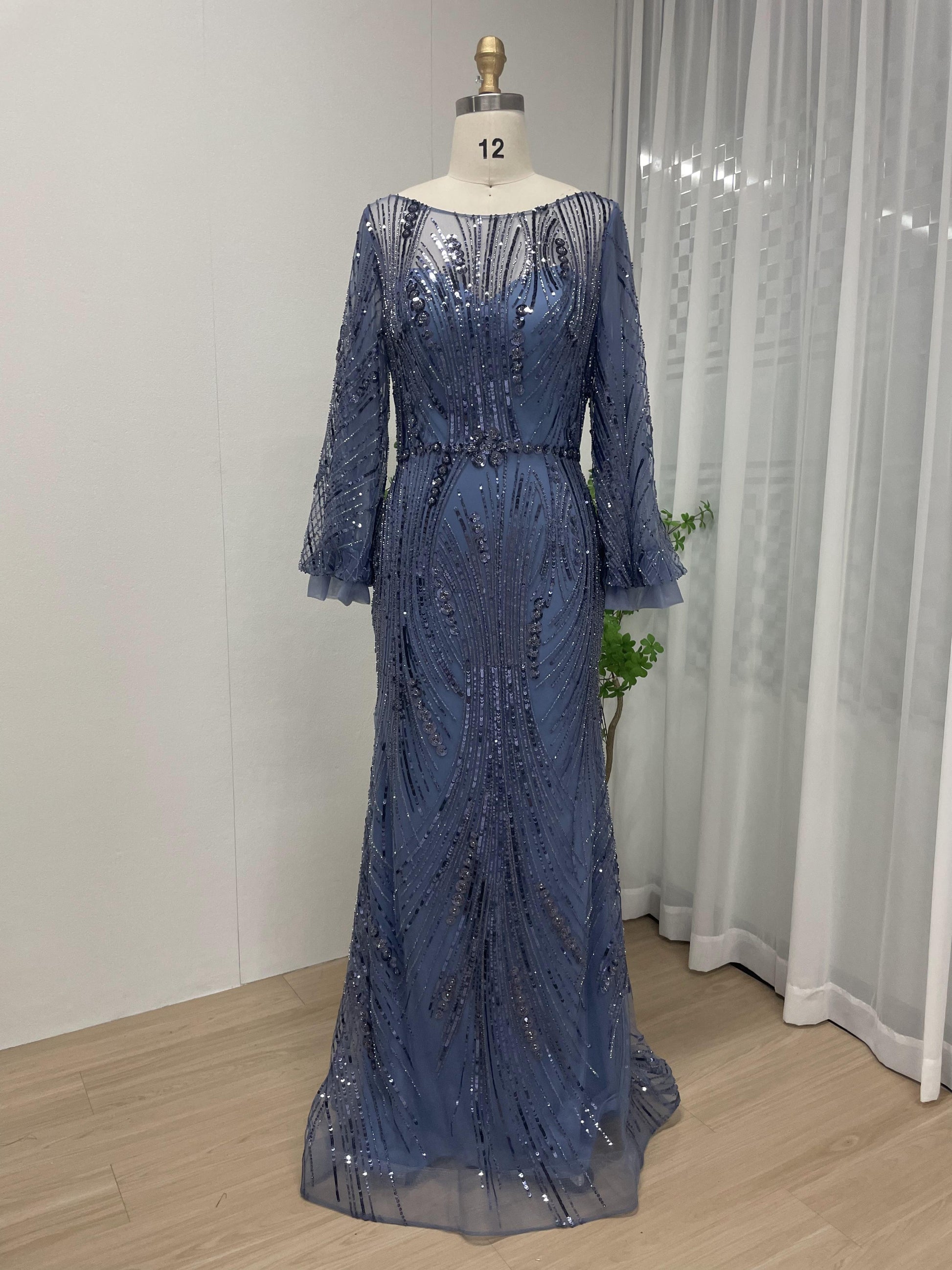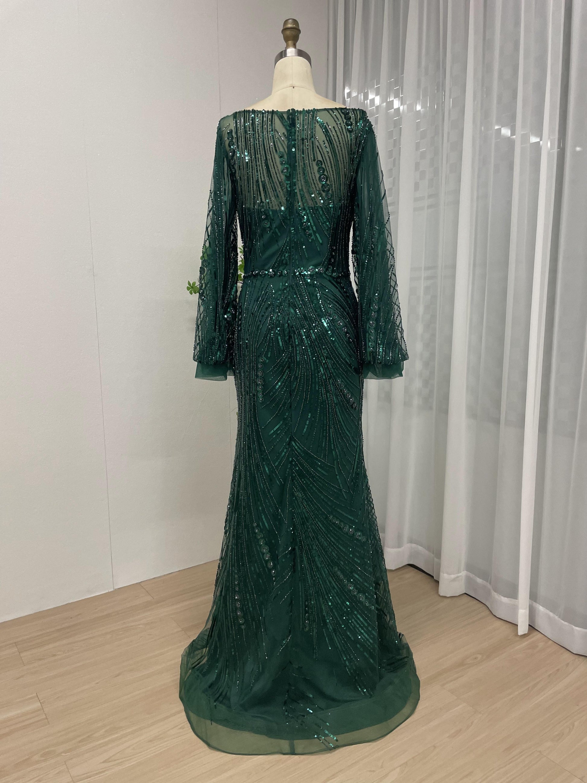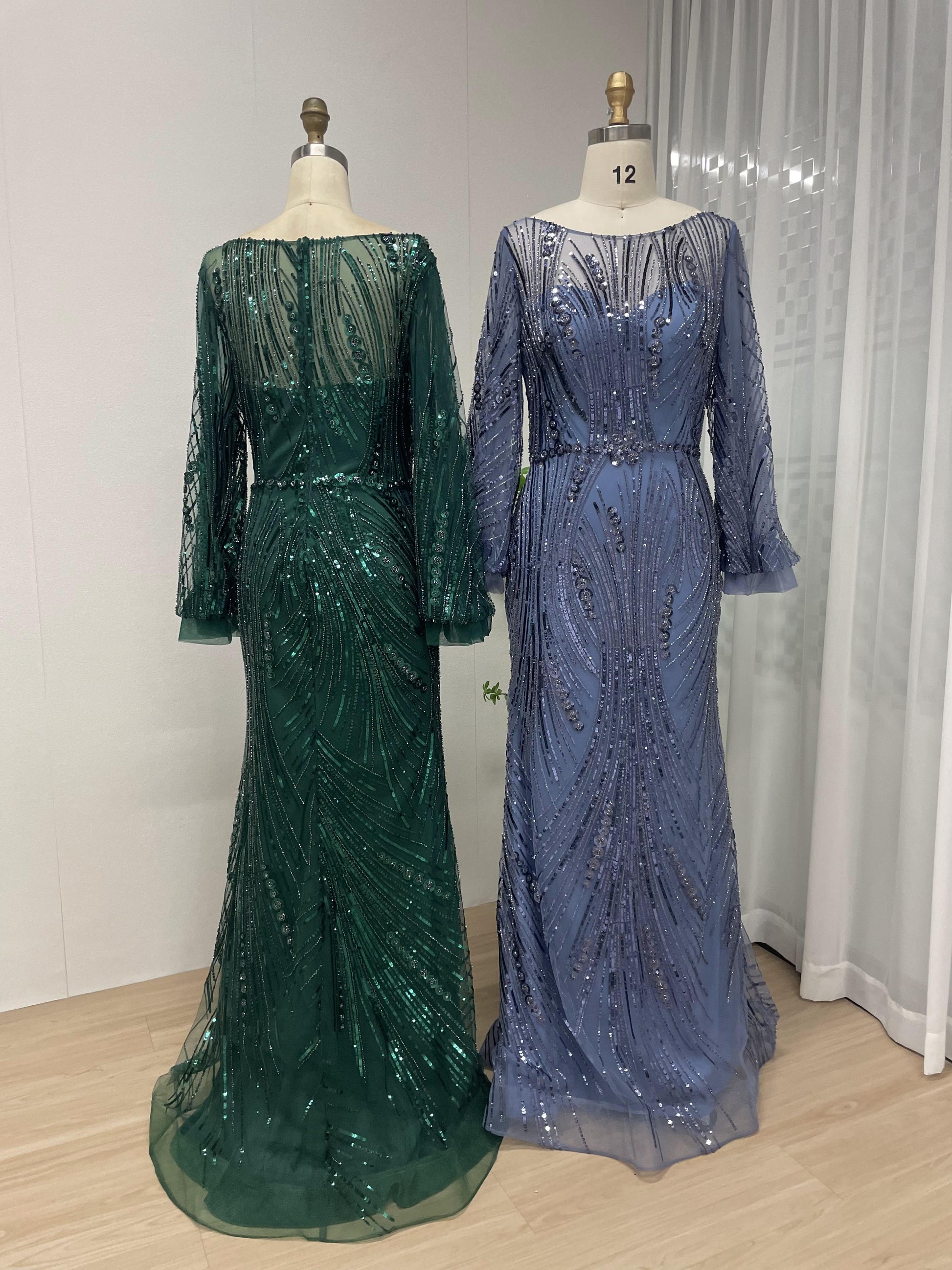 Round Neck Beading Lace Long Sleeve Evening Dress MB40069