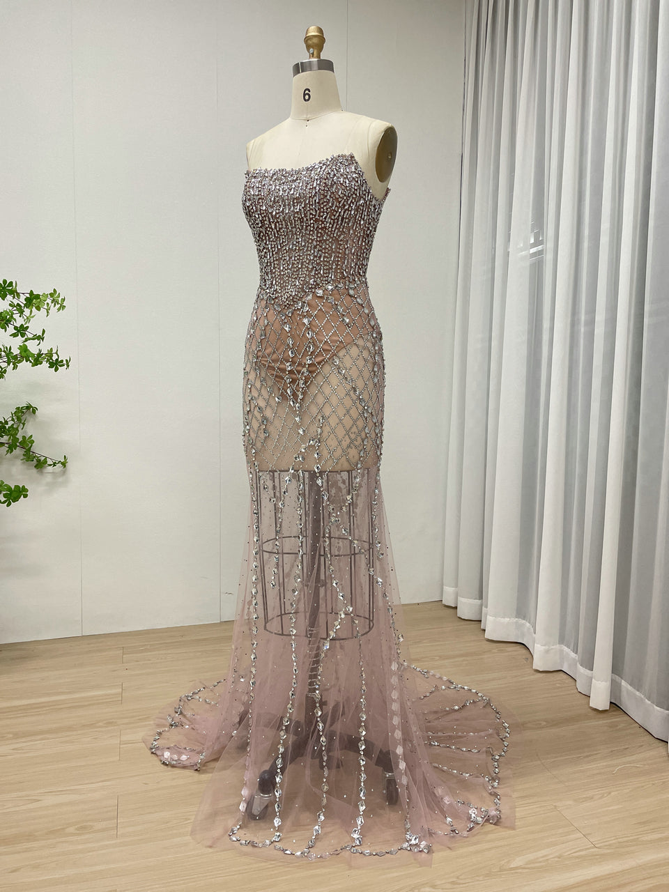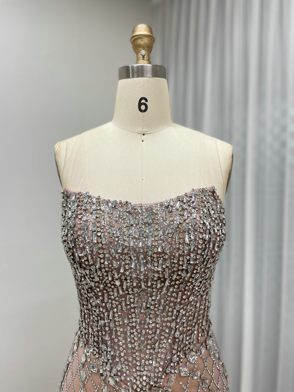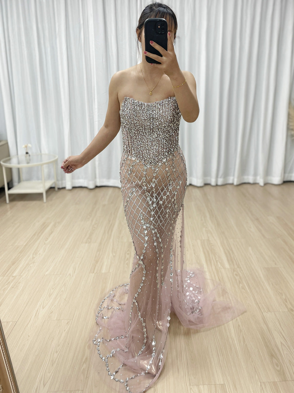 Sexy Corset Bodice Sheer Prom Evening Dresses Embellished With Sparkle Handmade Beaded Diamond for Parties MB40398
