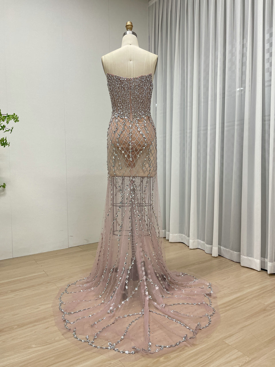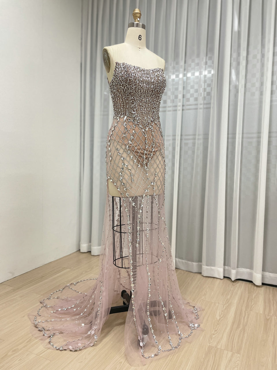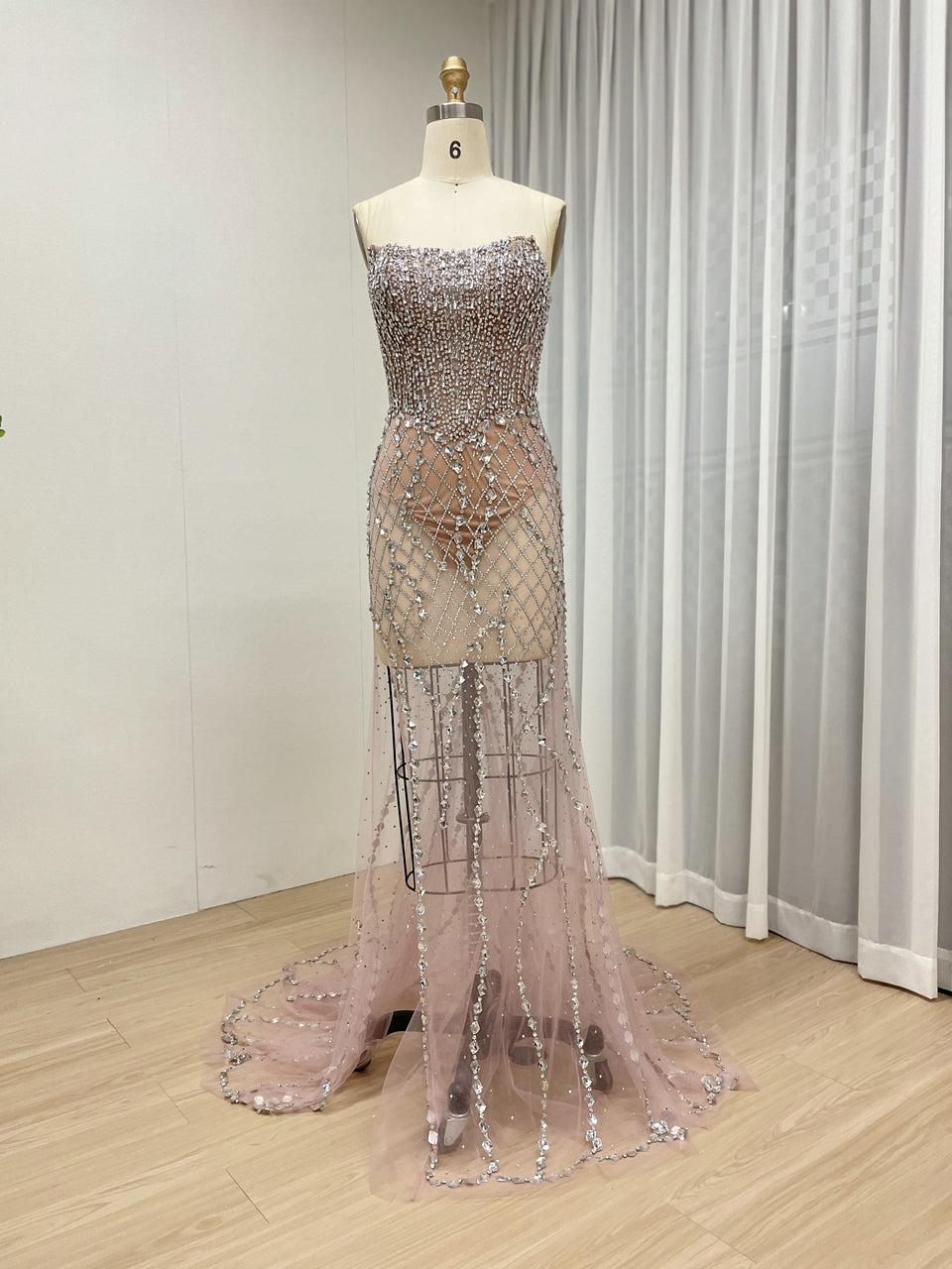 Sexy Corset Bodice Sheer Prom Evening Dresses Embellished With Sparkle Handmade Beaded Diamond for Parties MB40398