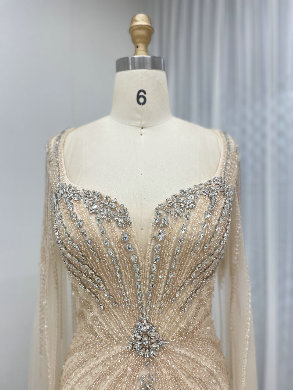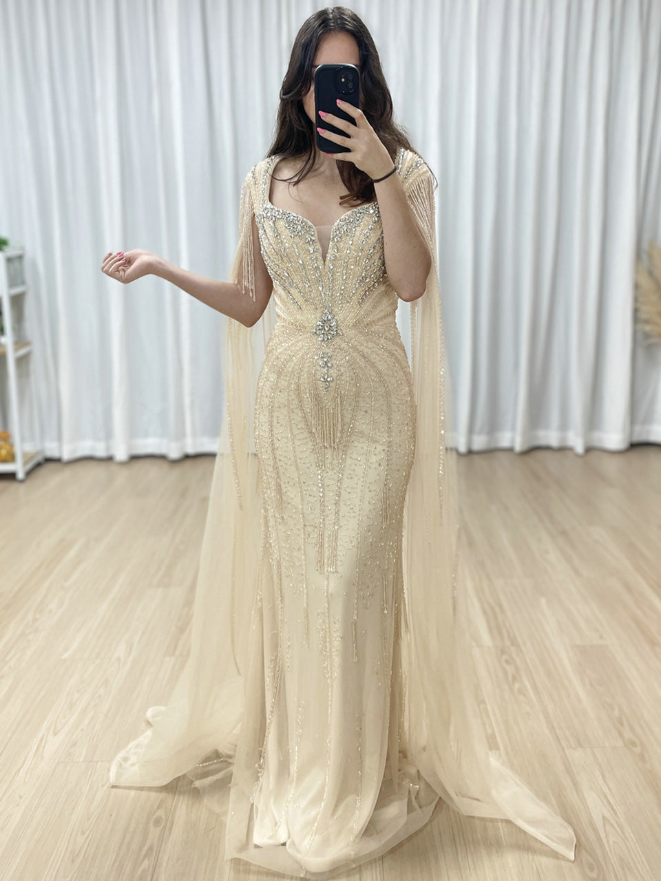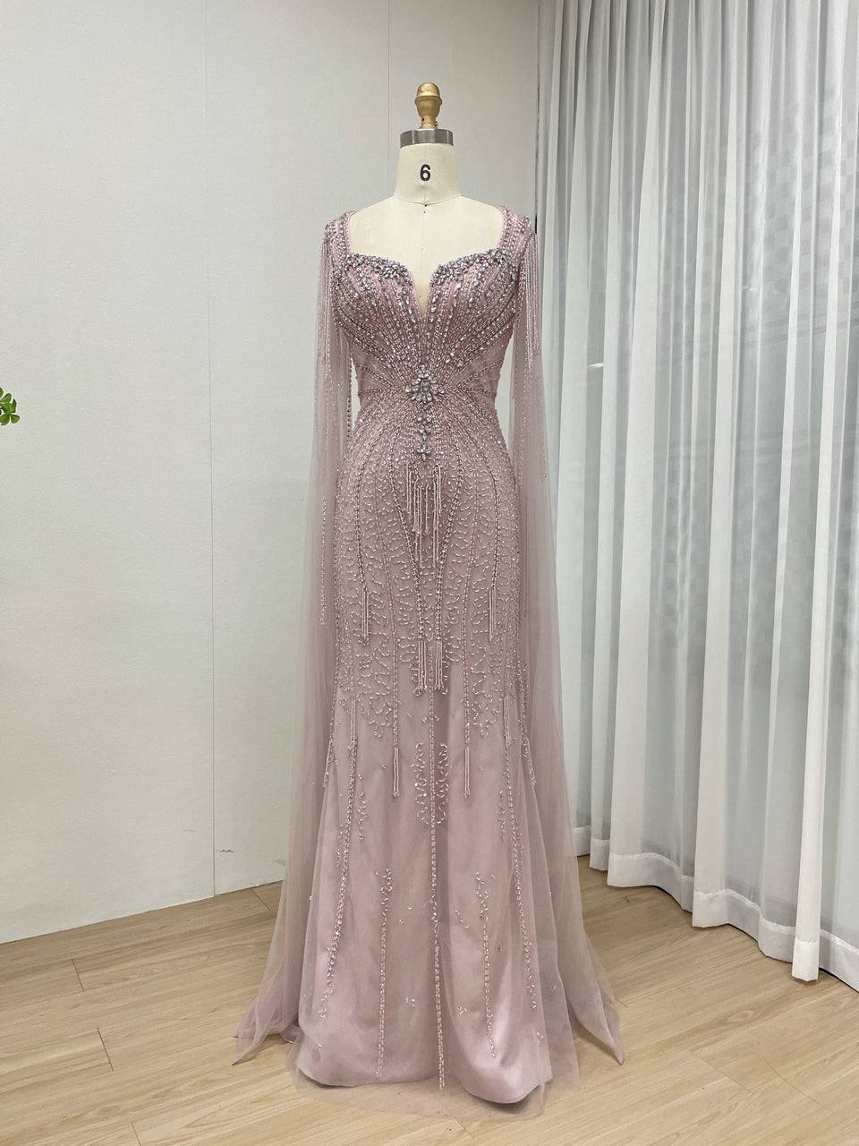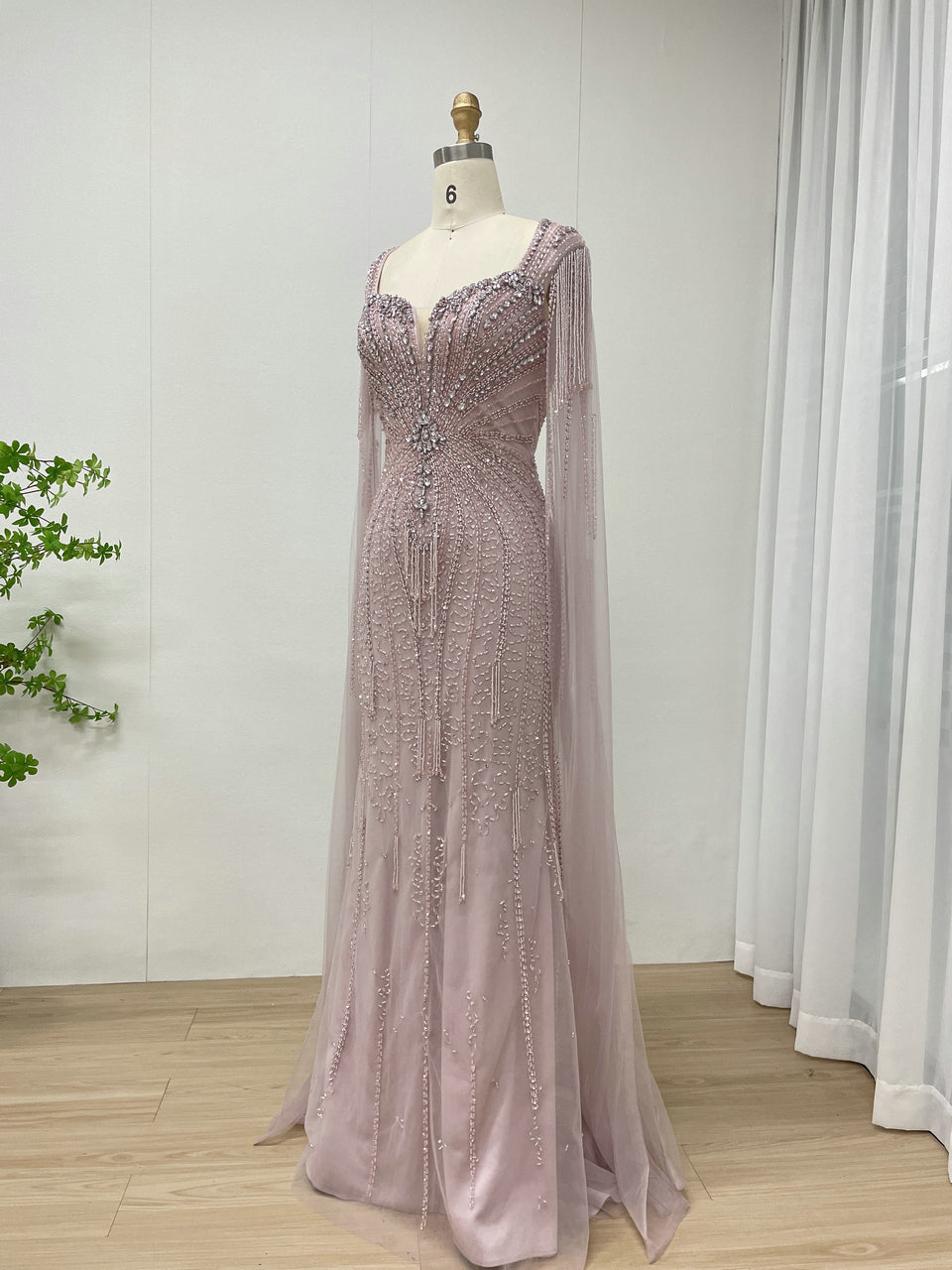 Sexy Deep V Neck Pink Mermaid Evening Gown With Embellished Exquisite Beaded Crystal Elegant Cap Sleeve MB40343