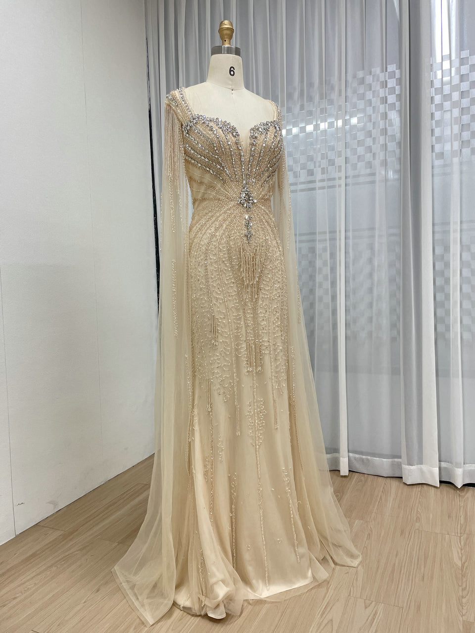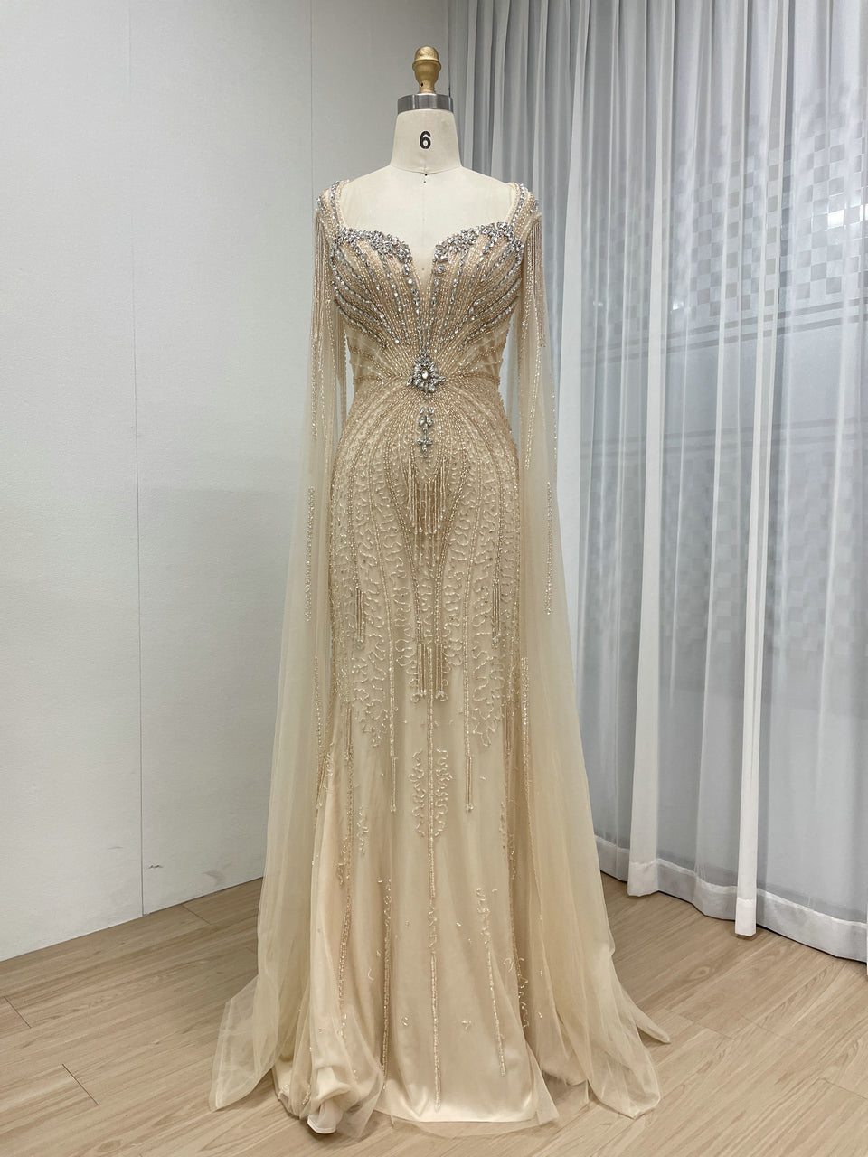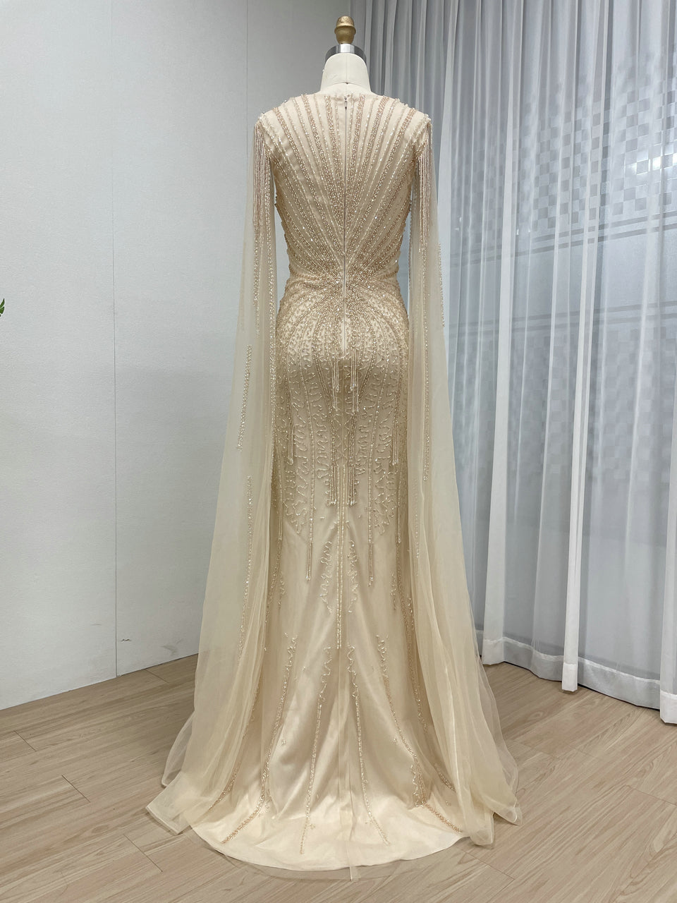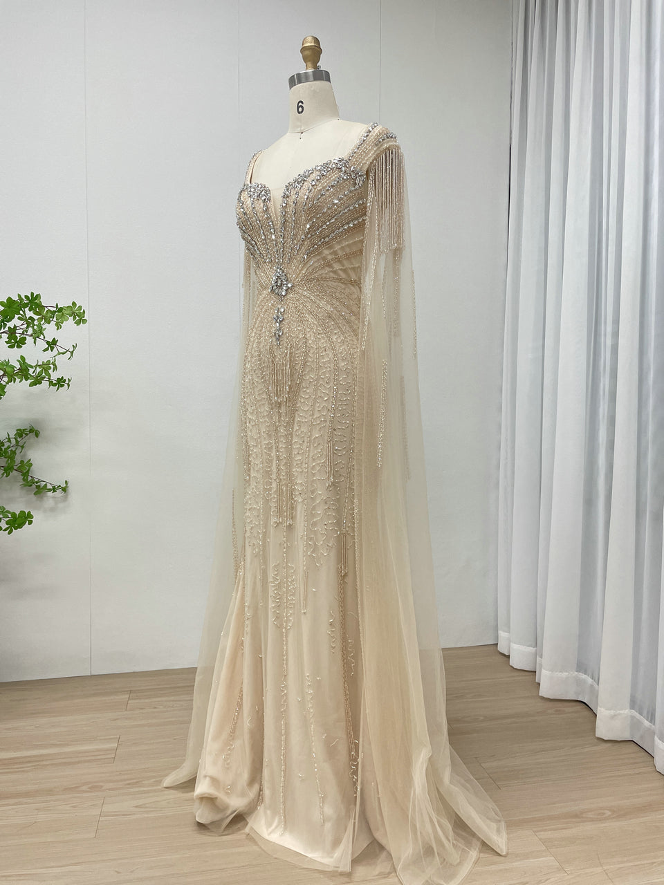Sexy Deep V Neck Pink Mermaid Evening Gown With Embellished Exquisite Beaded Crystal Elegant Cap Sleeve MB40343