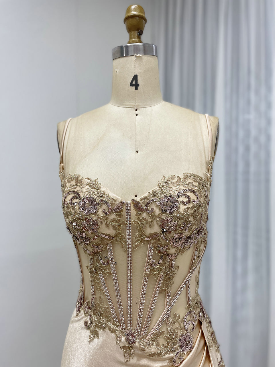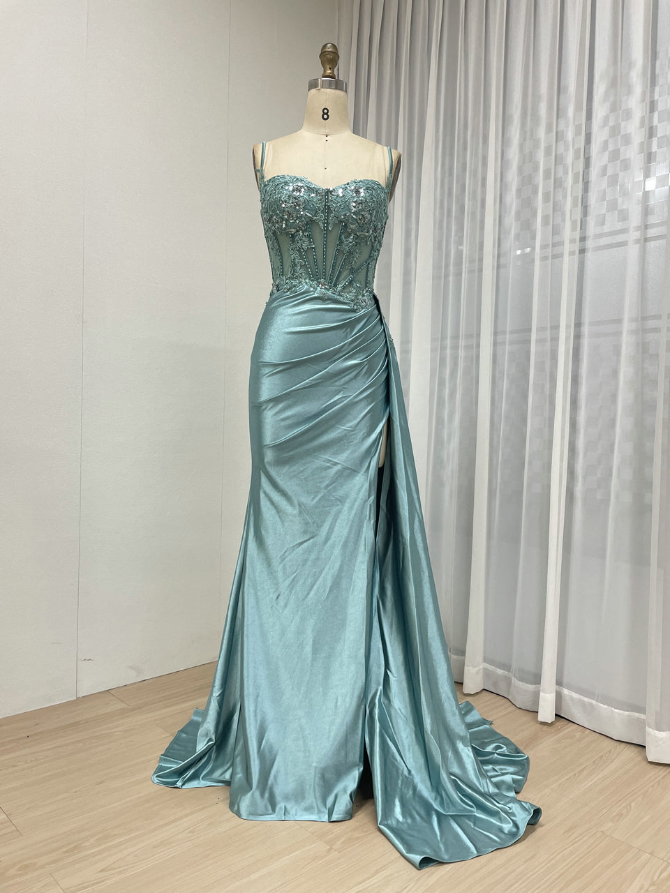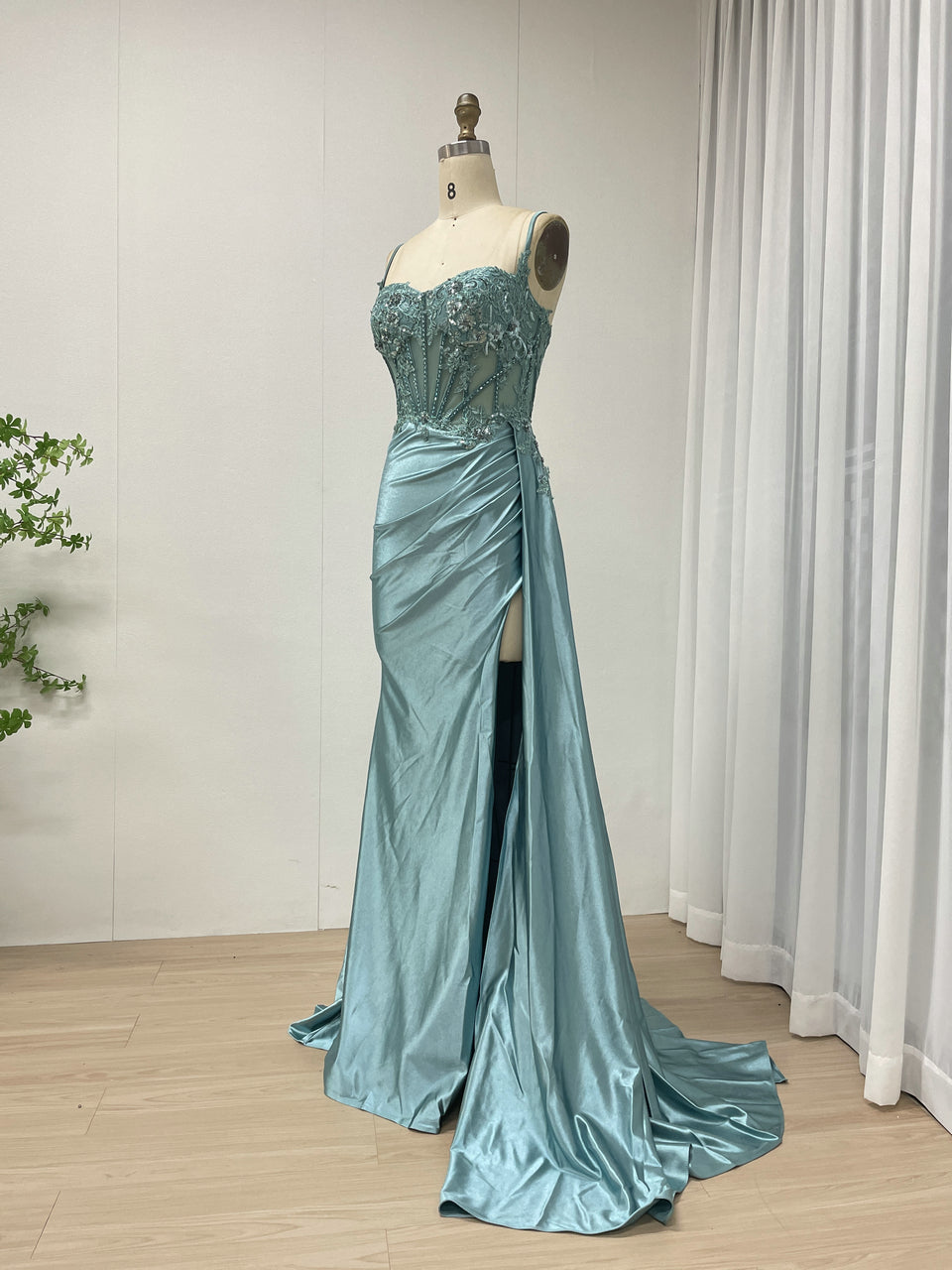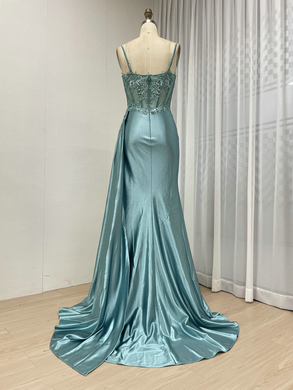 Sexy High Slit Mermaid Evening Dress Beautiful 3D Floral Embroidery With Graceful Side Skirt MB40424