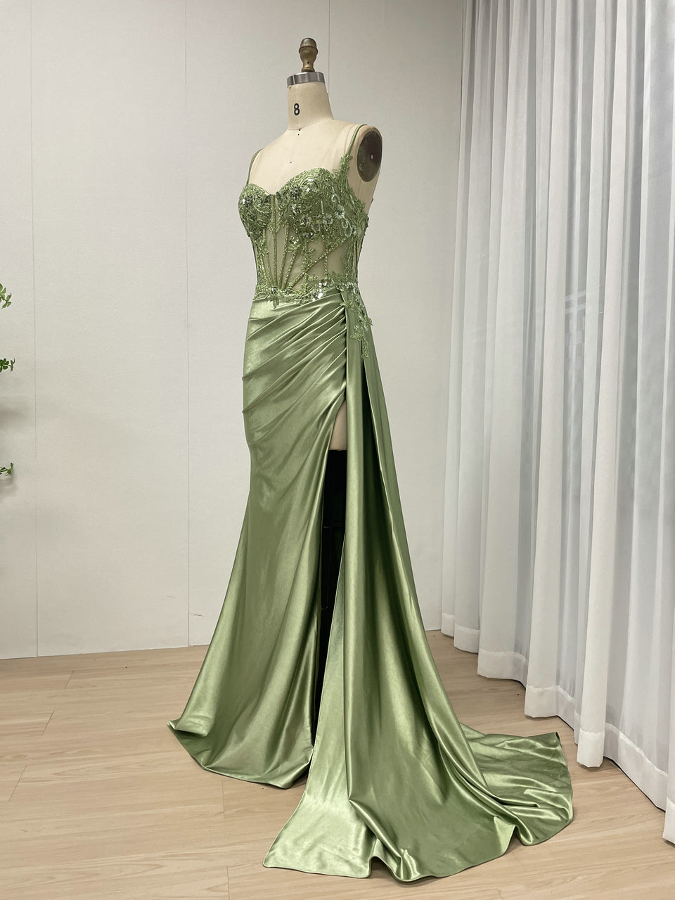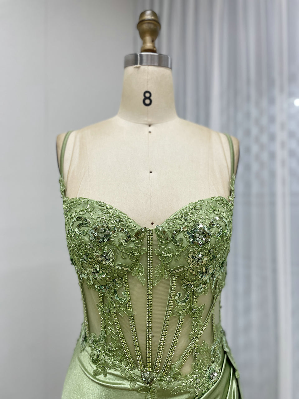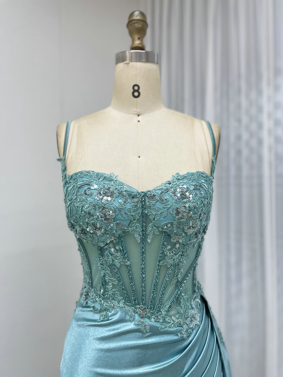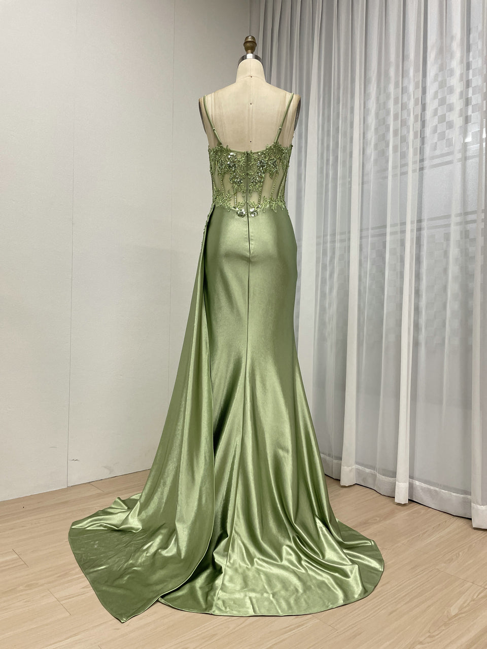Sexy High Slit Mermaid Evening Dress Beautiful 3D Floral Embroidery With Graceful Side Skirt MB40424