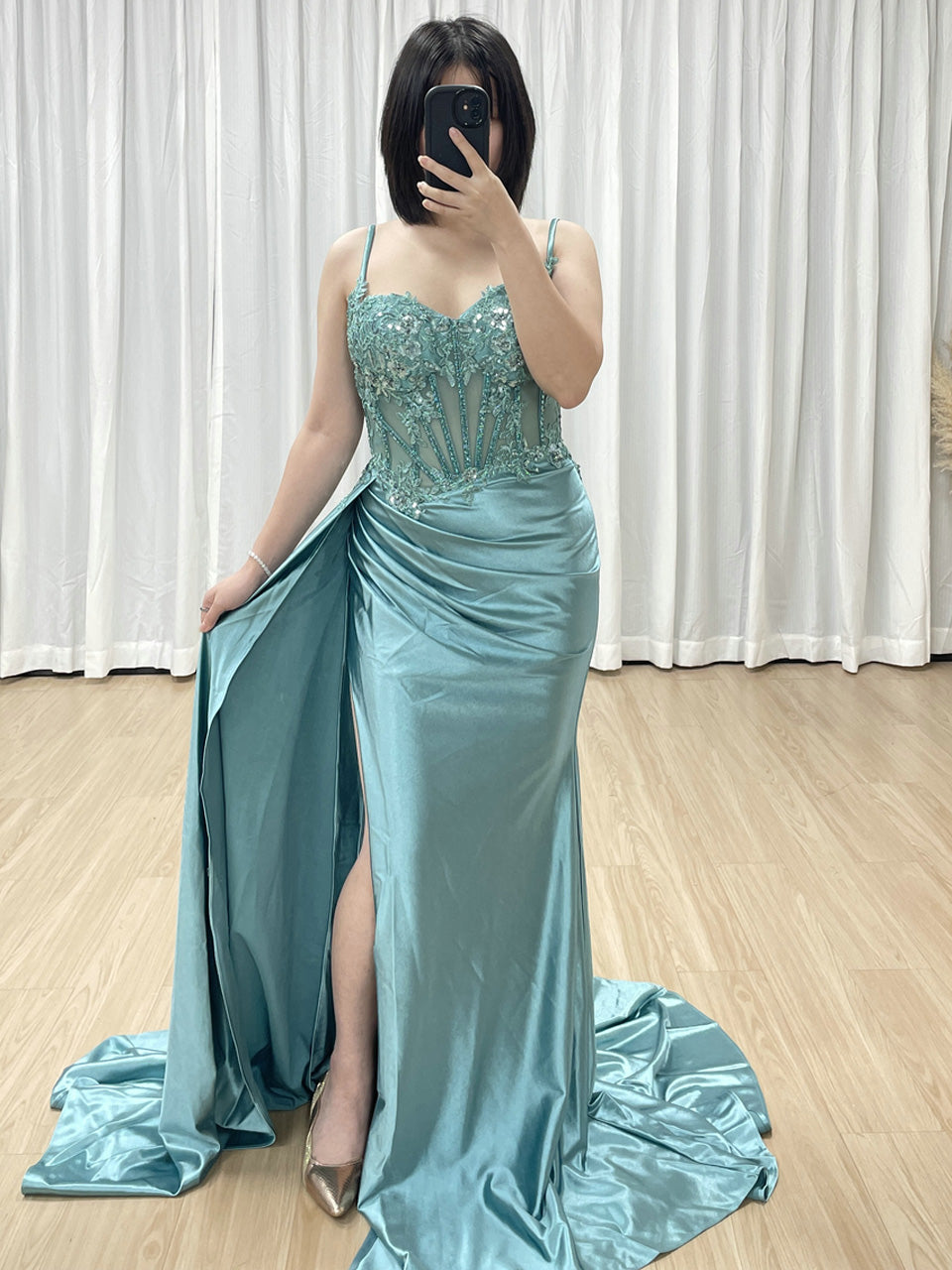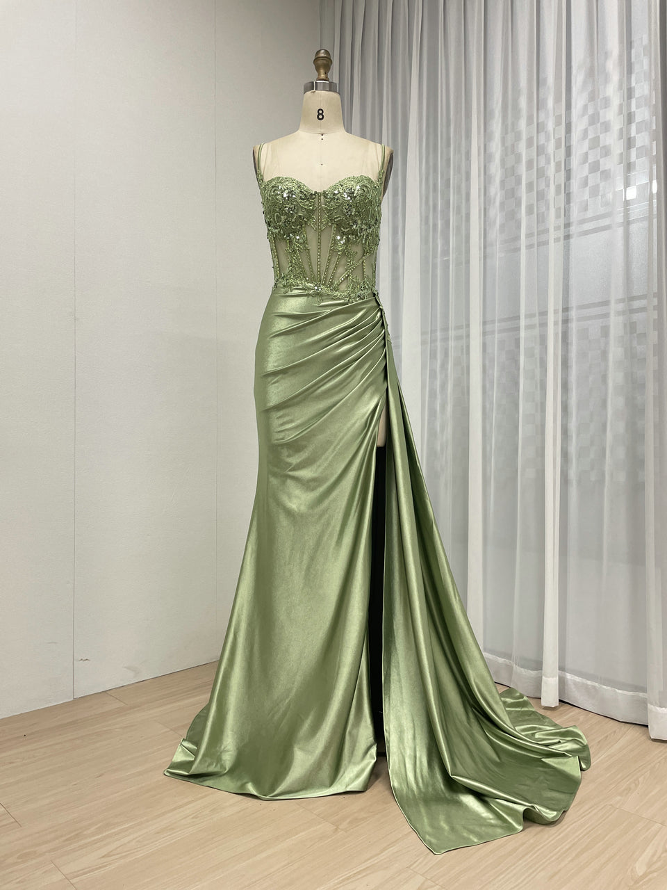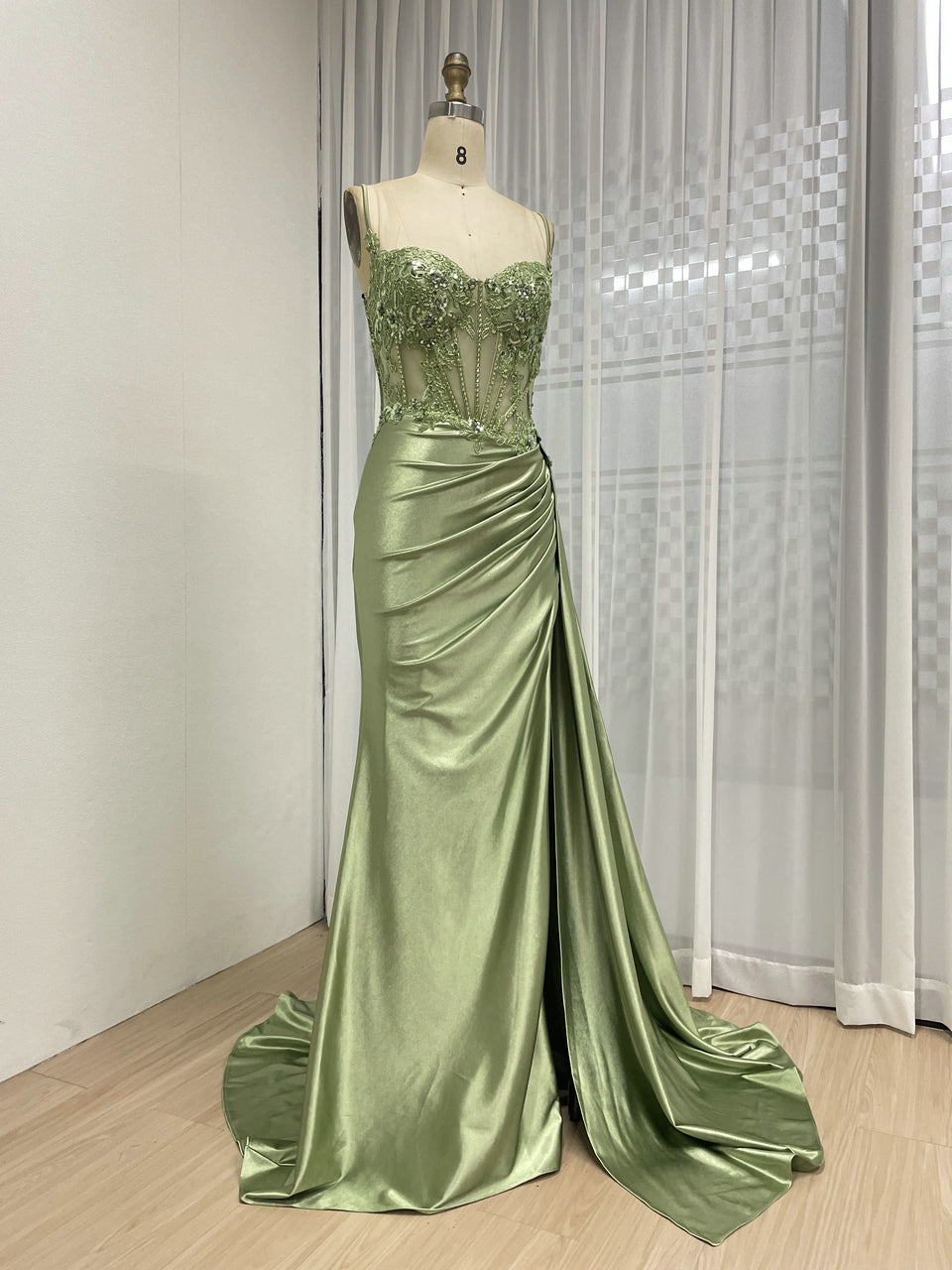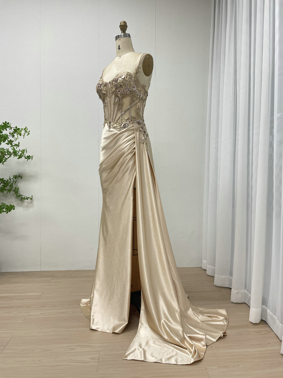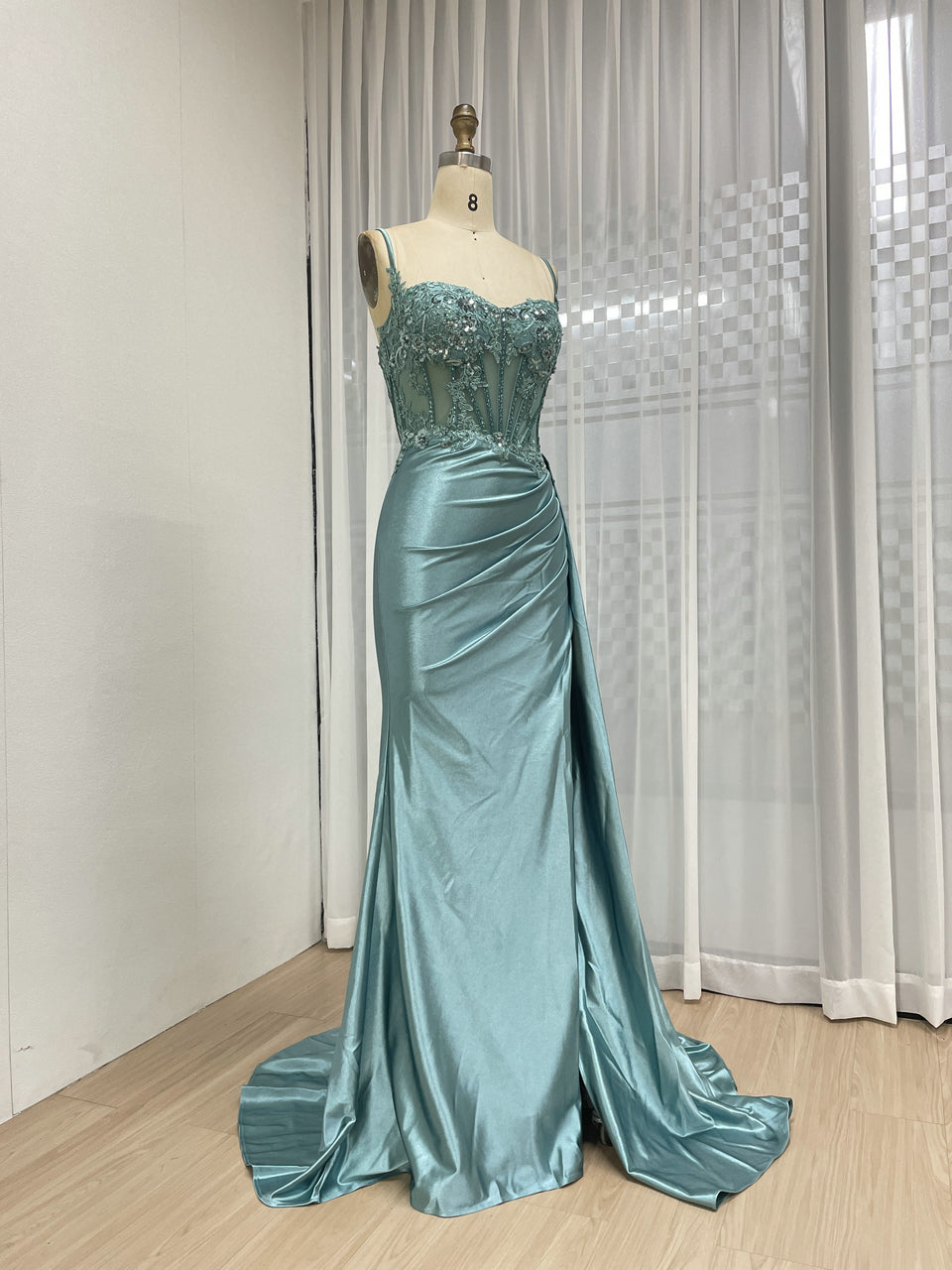 Sexy High Slit Mermaid Evening Dress Beautiful 3D Floral Embroidery With Graceful Side Skirt MB40424