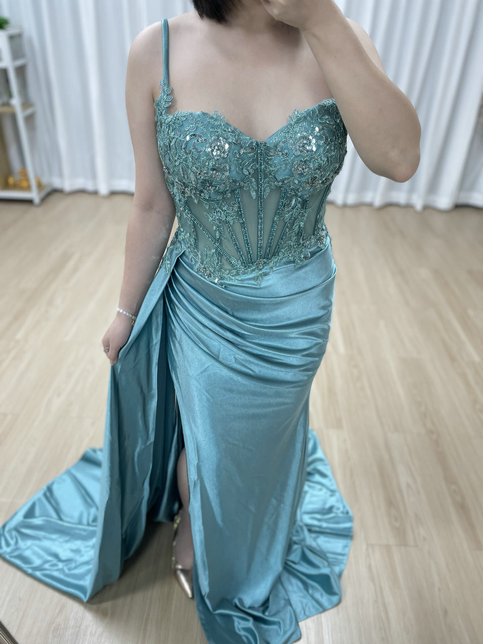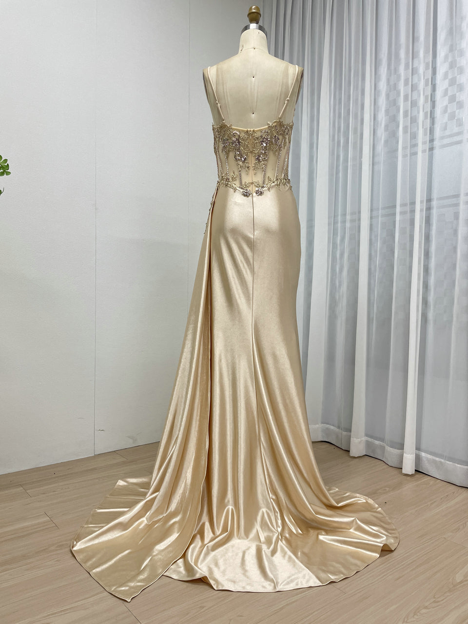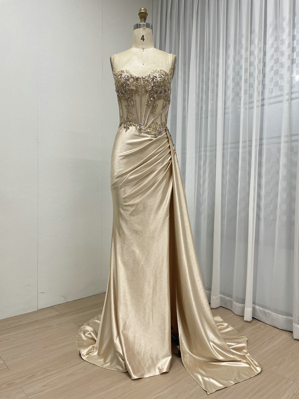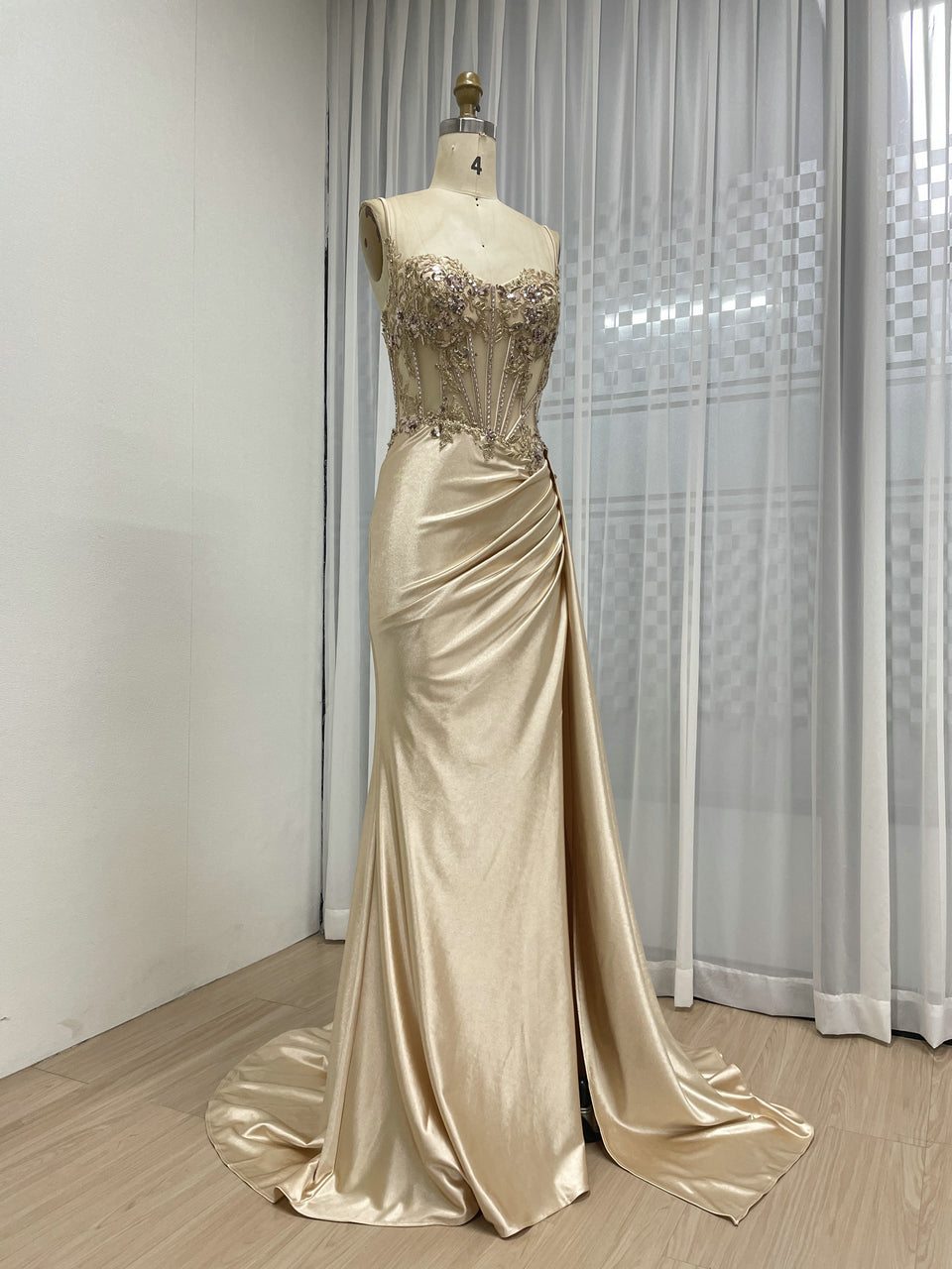 Sexy High Slit Mermaid Evening Dress Beautiful 3D Floral Embroidery With Graceful Side Skirt MB40424