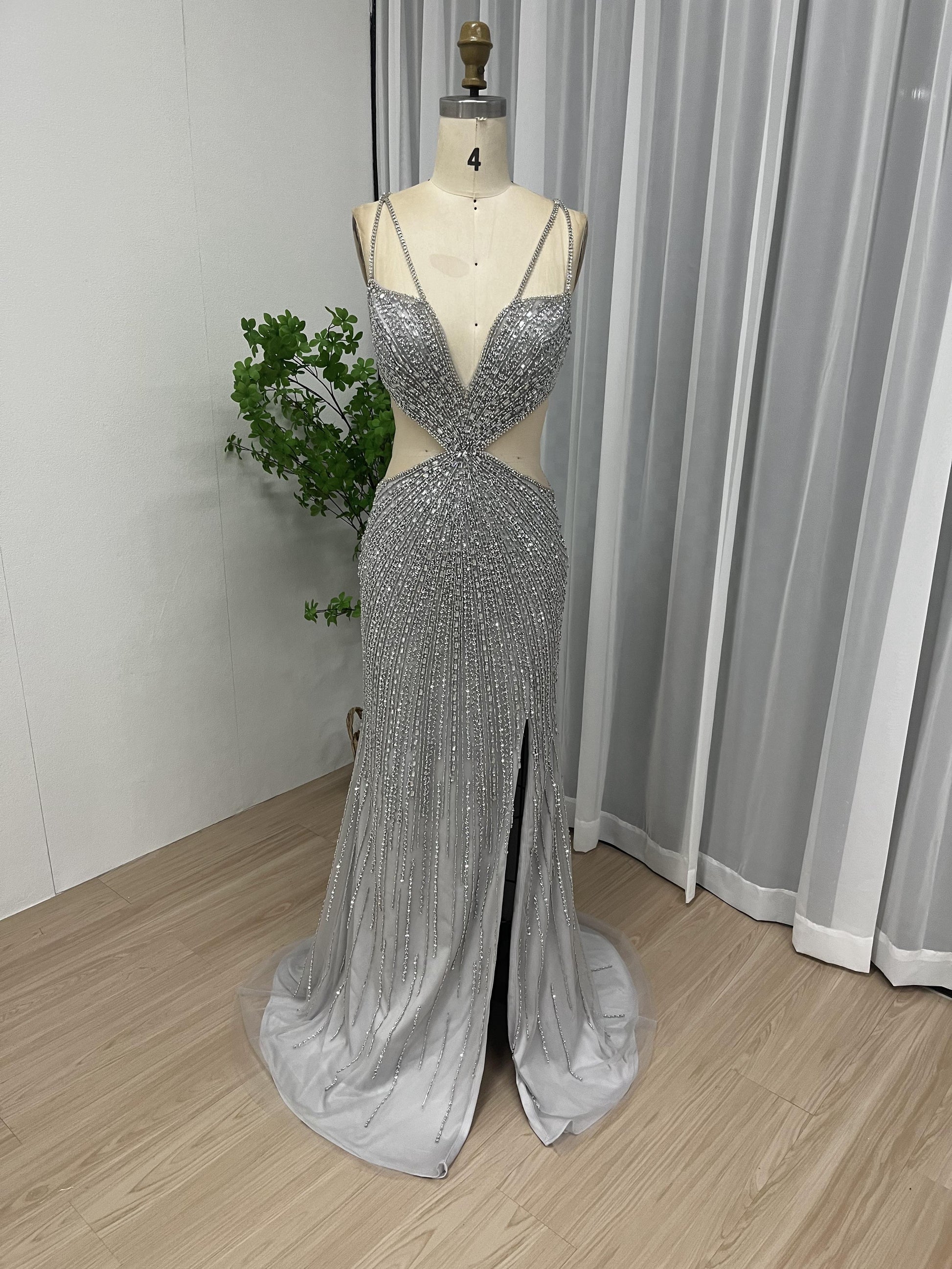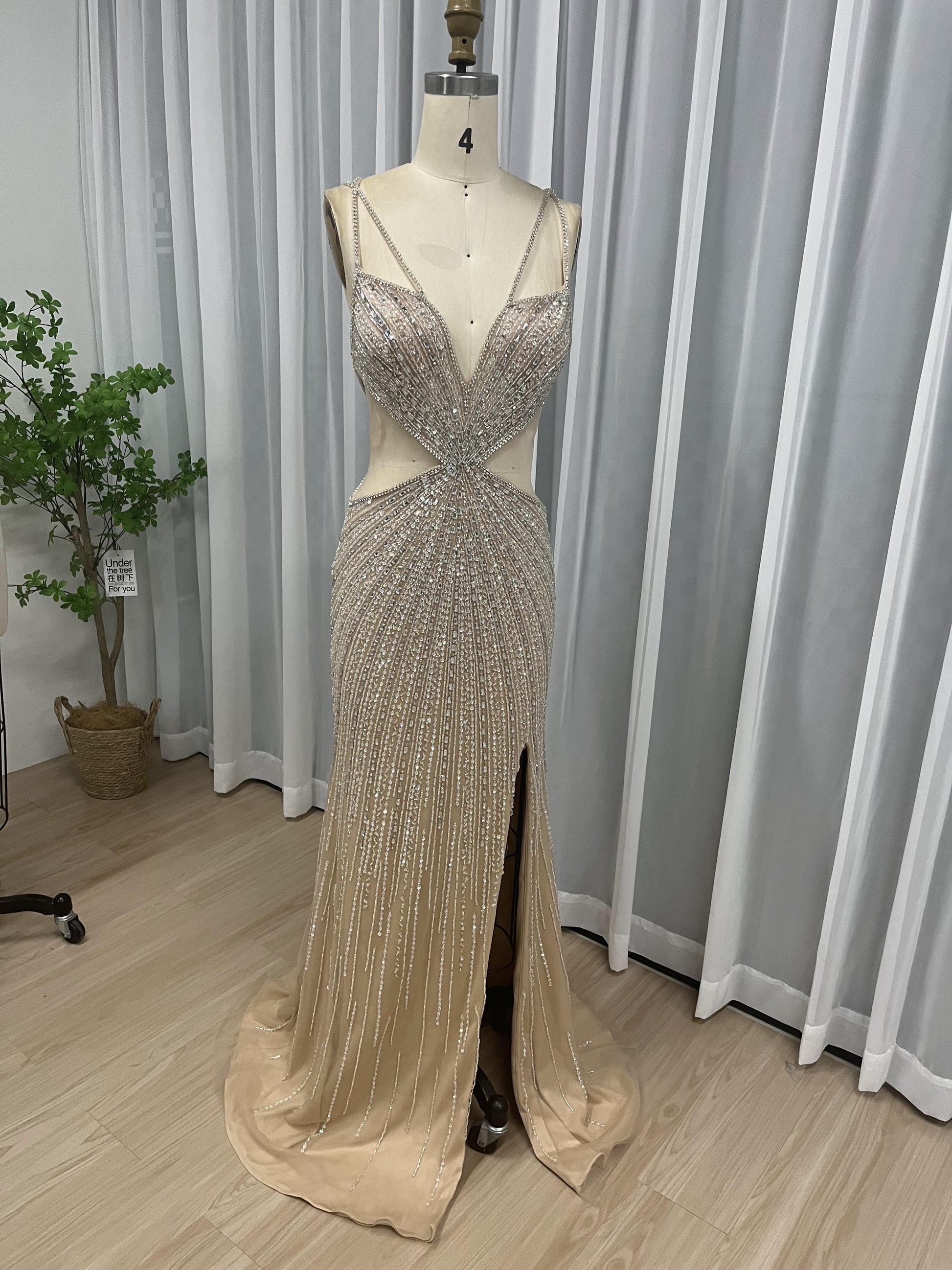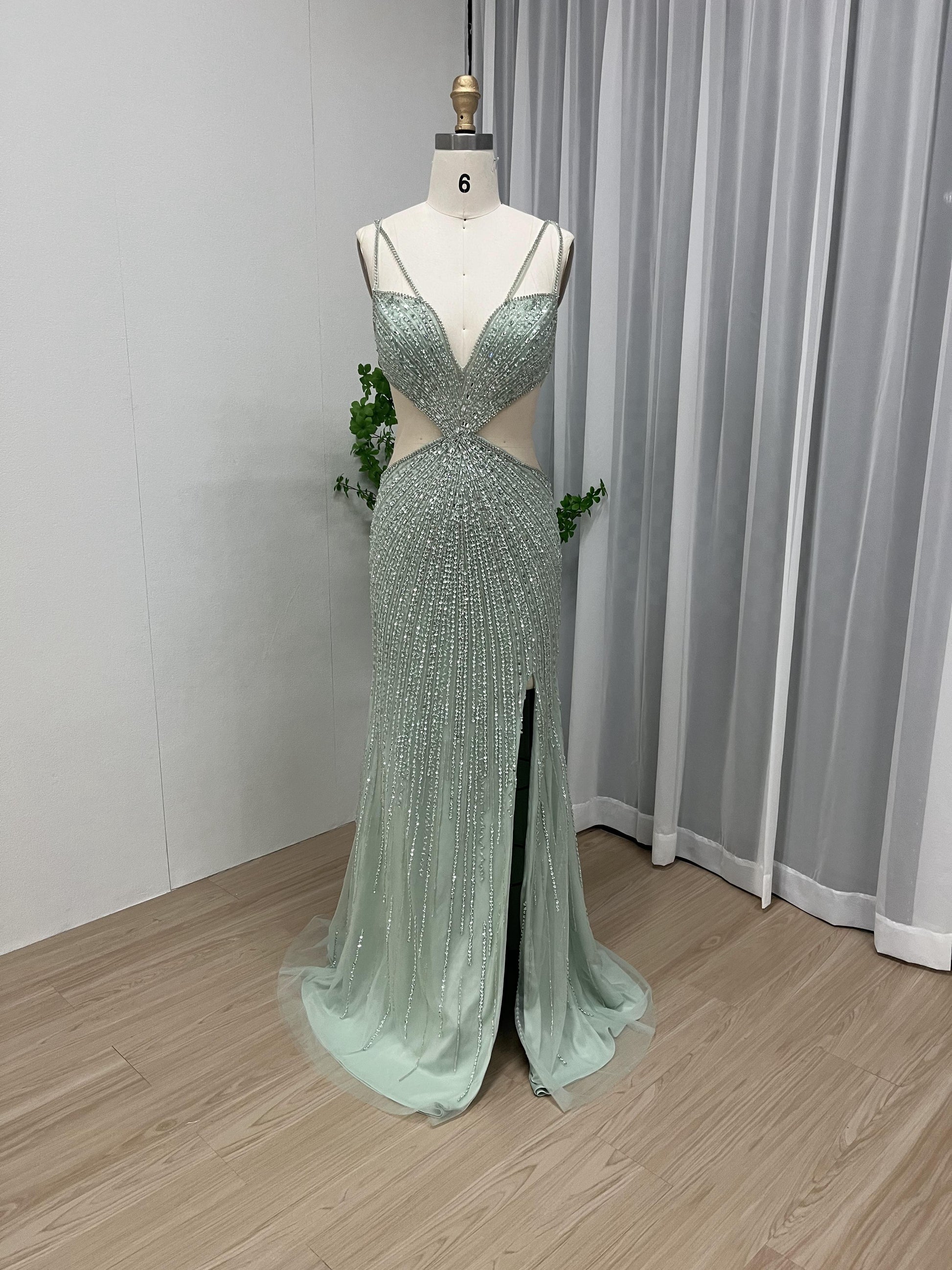 Sexy High Split Handmade Beading Evening Party Dress MB40040