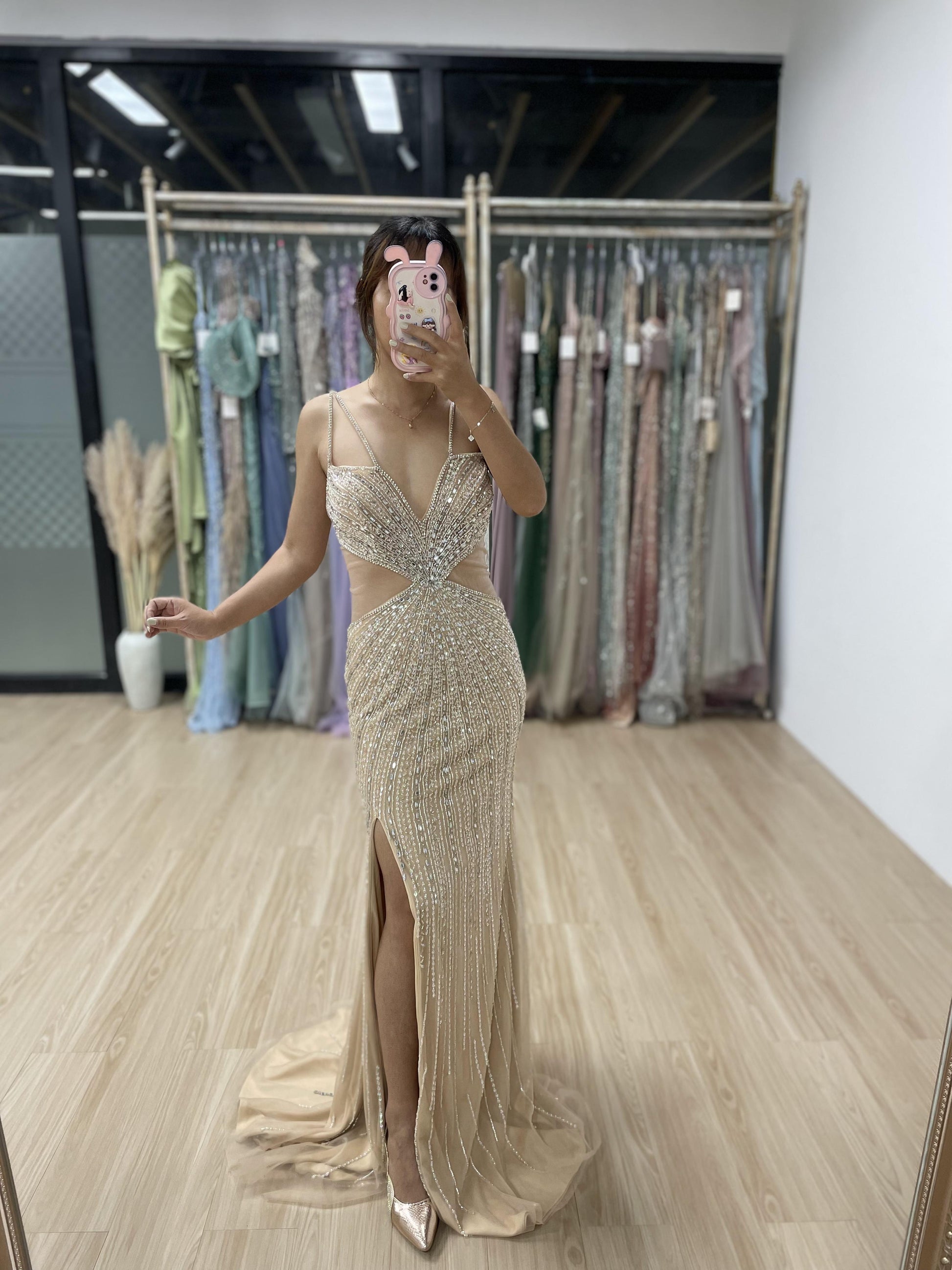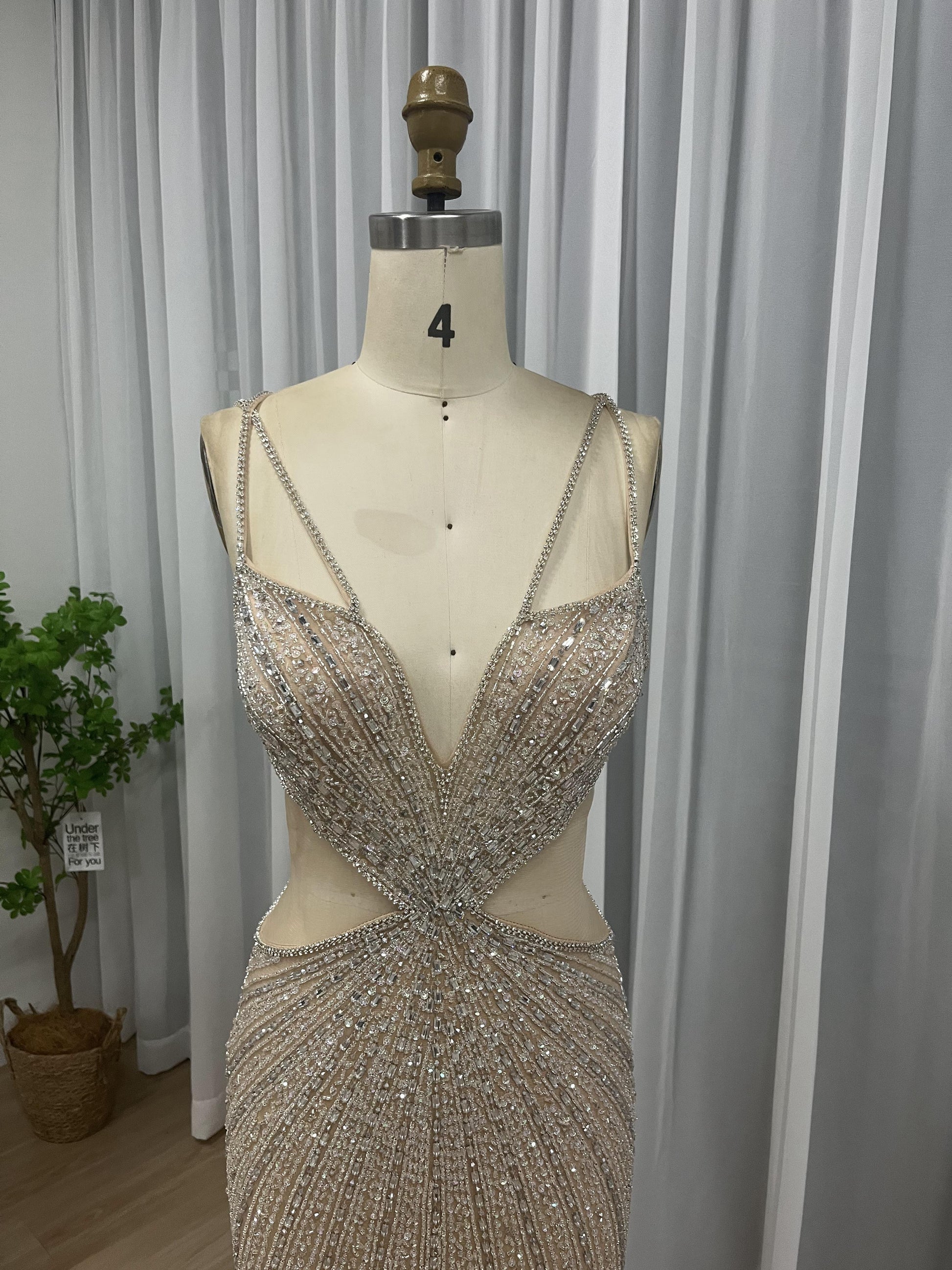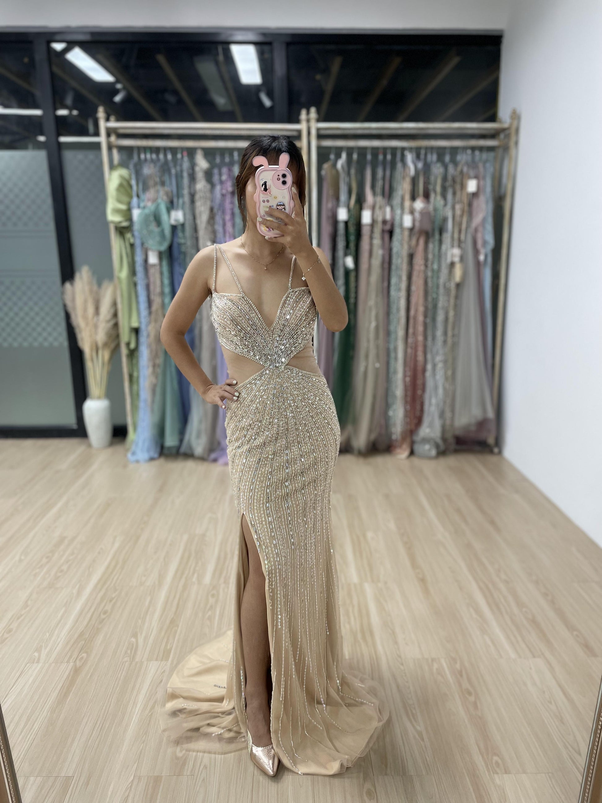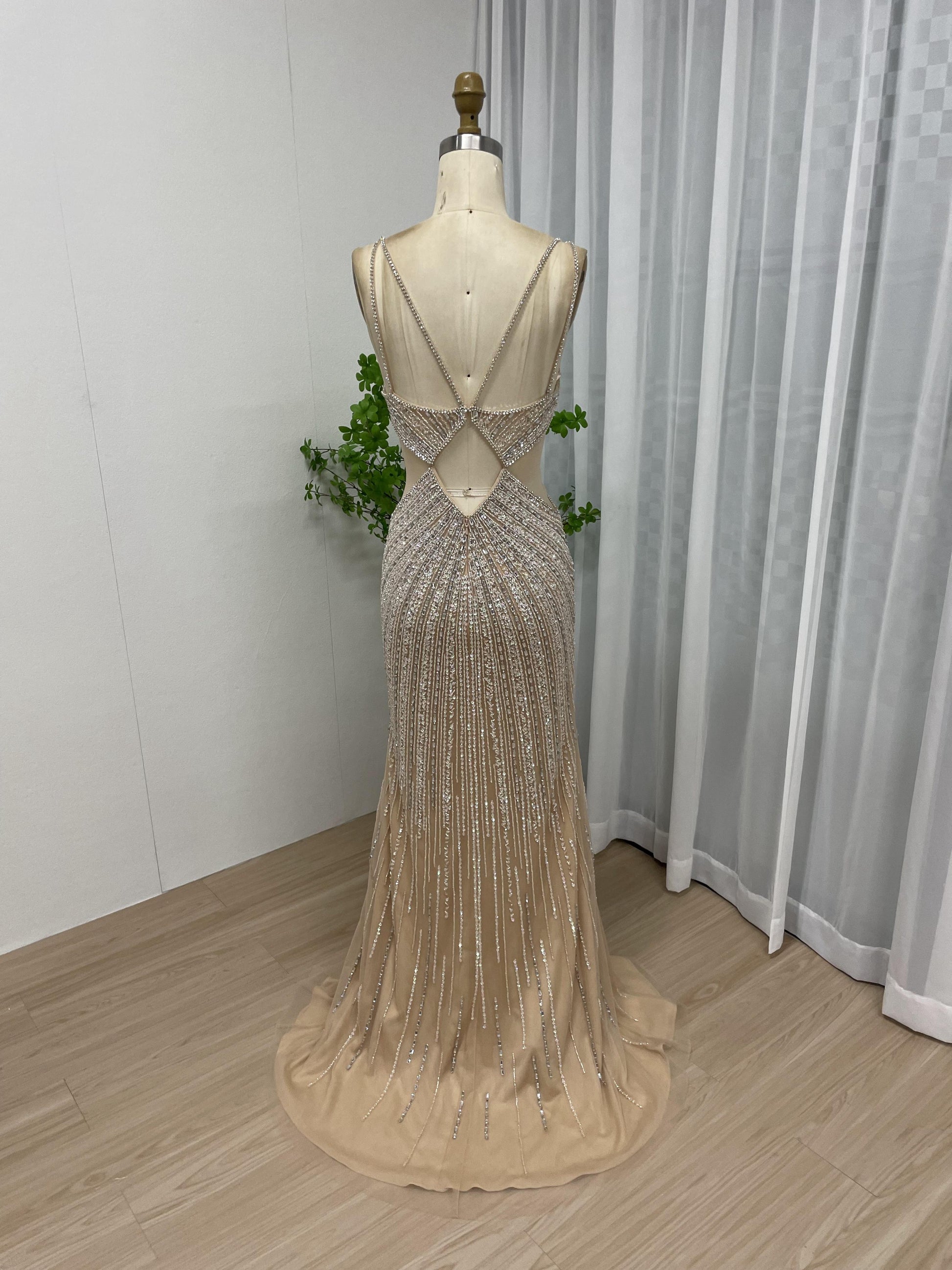 Sexy High Split Handmade Beading Evening Party Dress MB40040