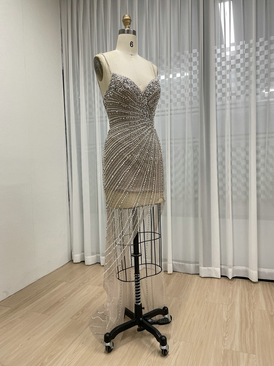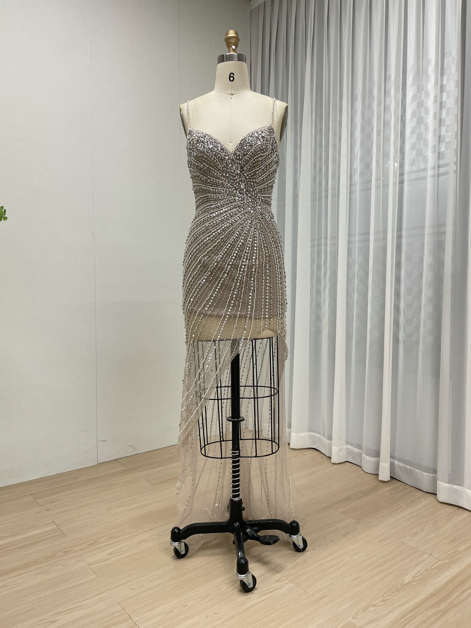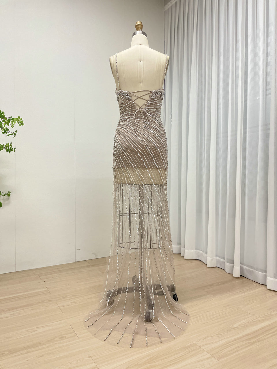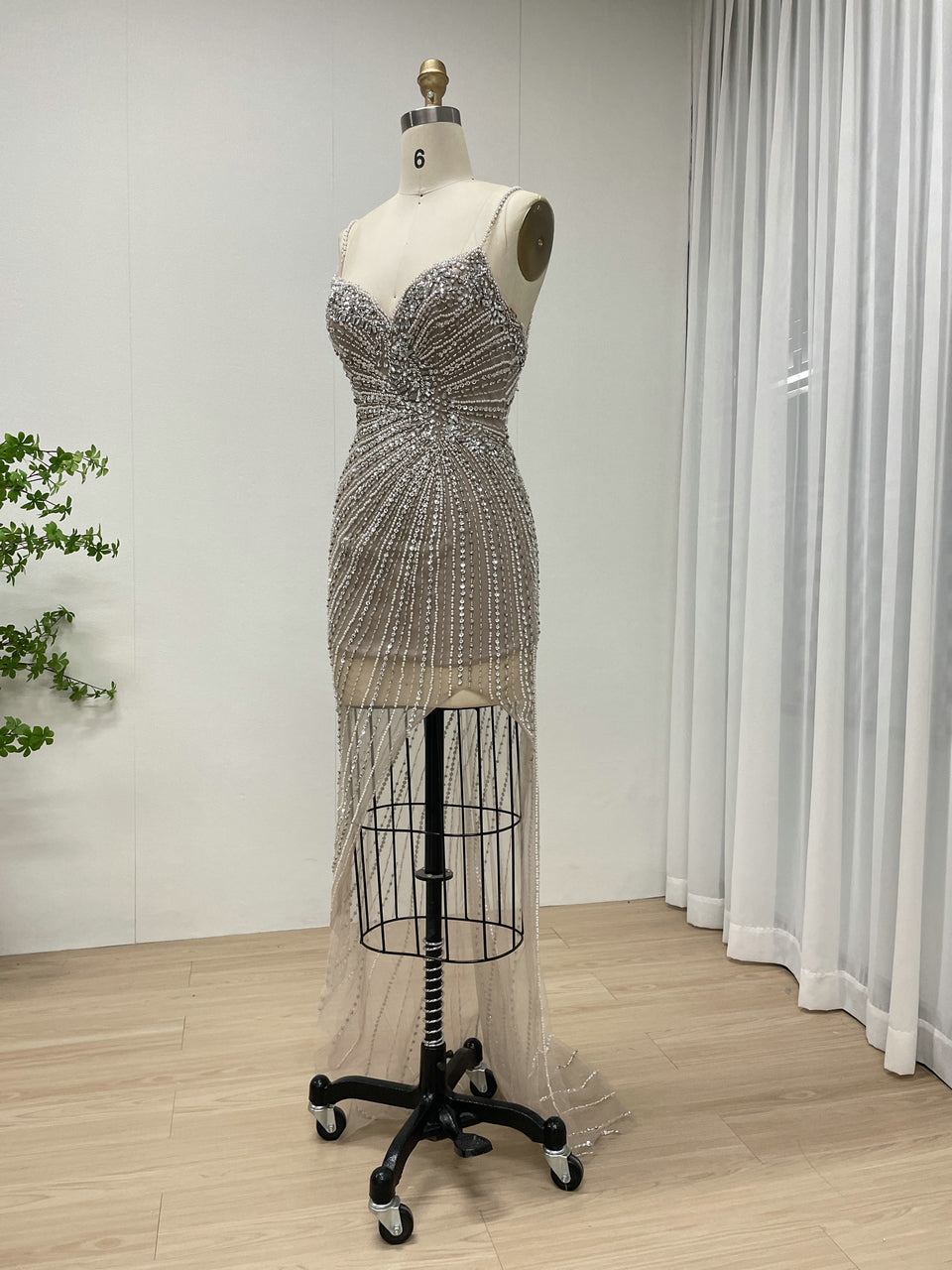 Sexy Sleeveless Sheer Prom Evening Dress Embellished With Intricate Hand Beading Diamond for Party MB40400