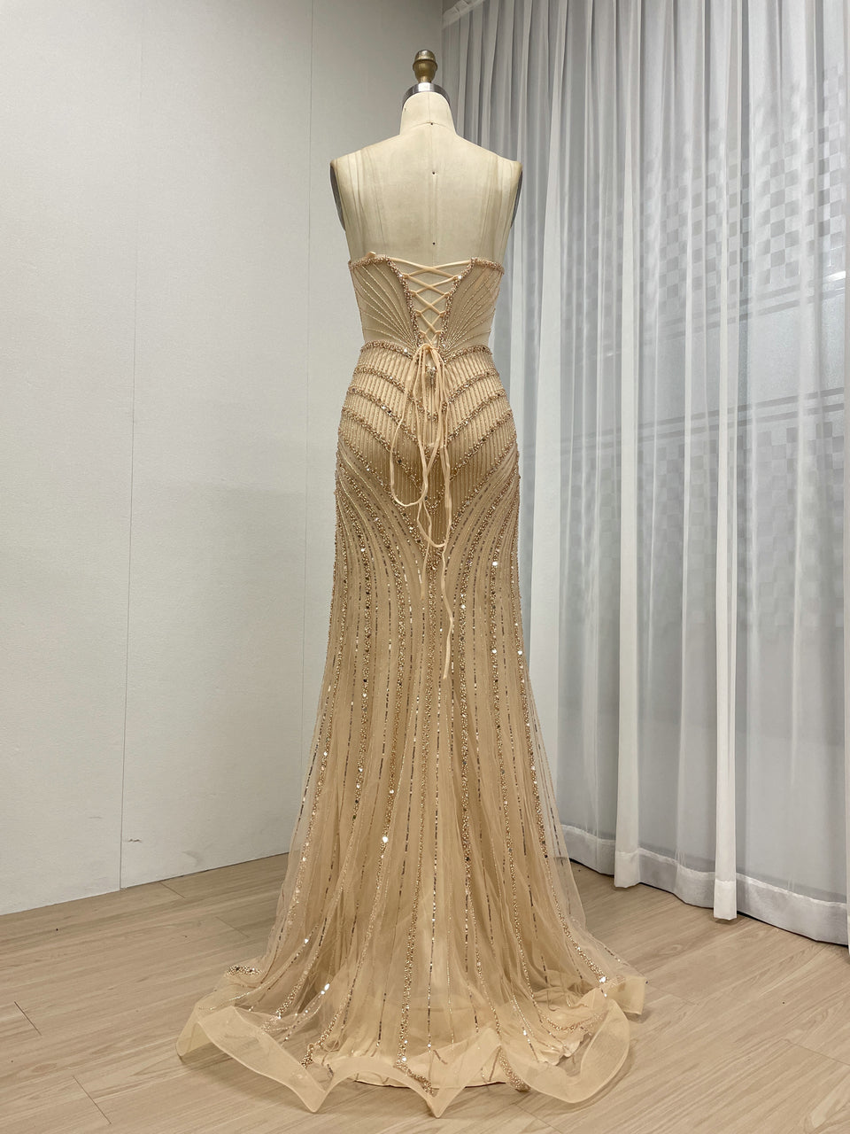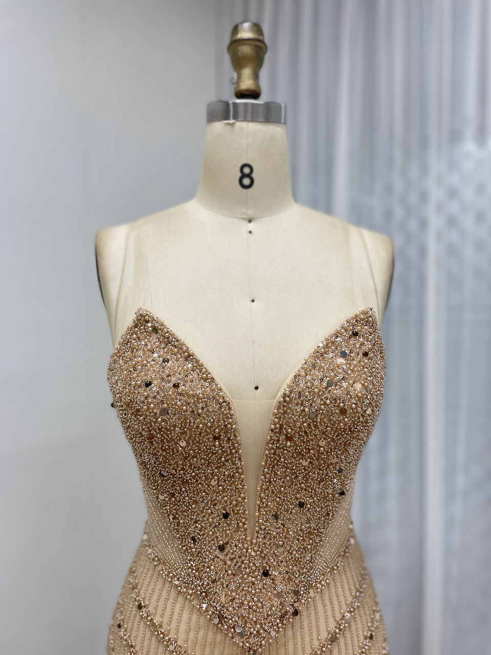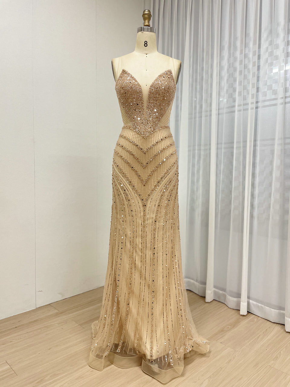 Sexy Sleeveless V Neck Crystal Beading Mermaid Prom Evening Gown MB40431
