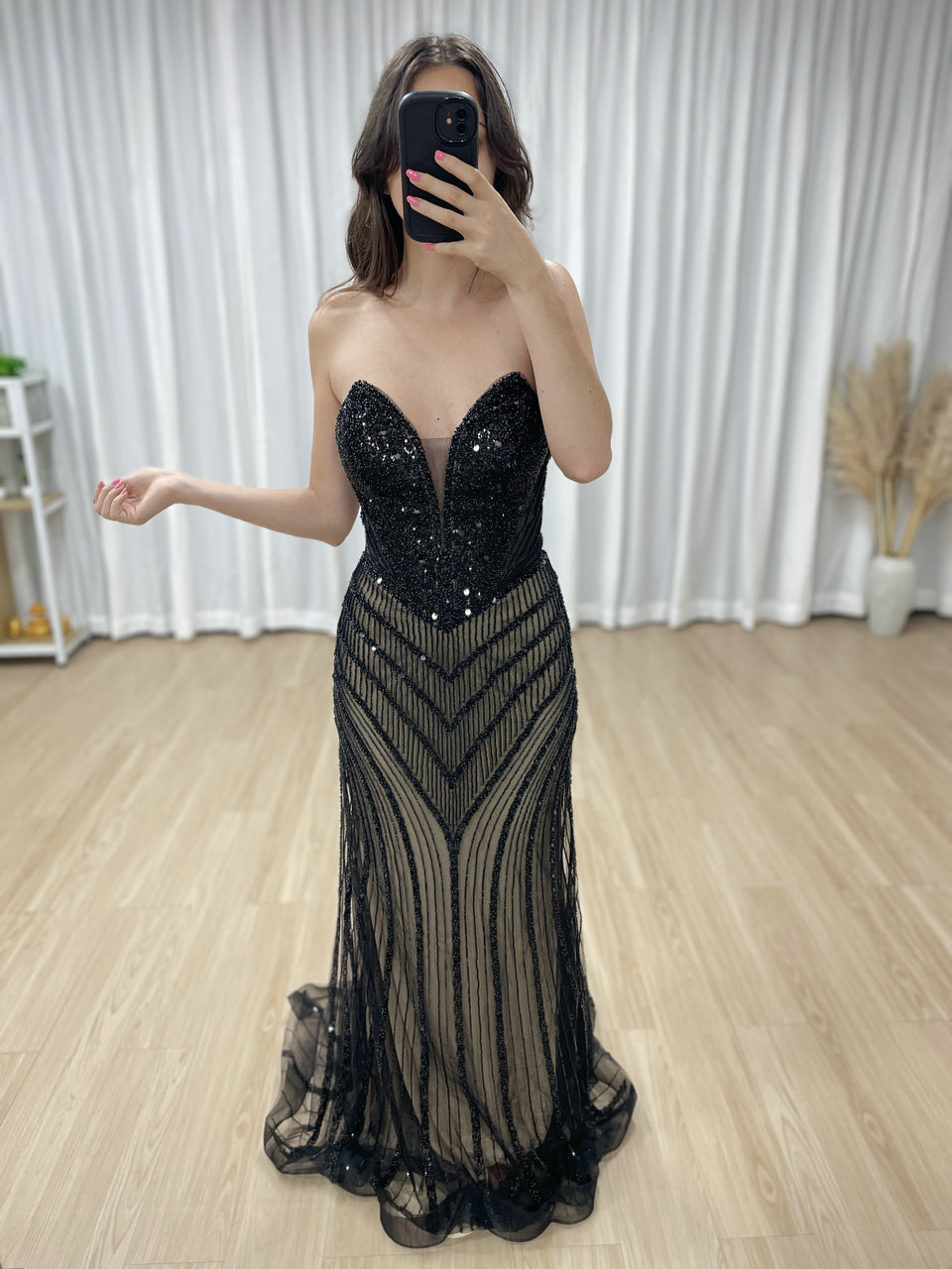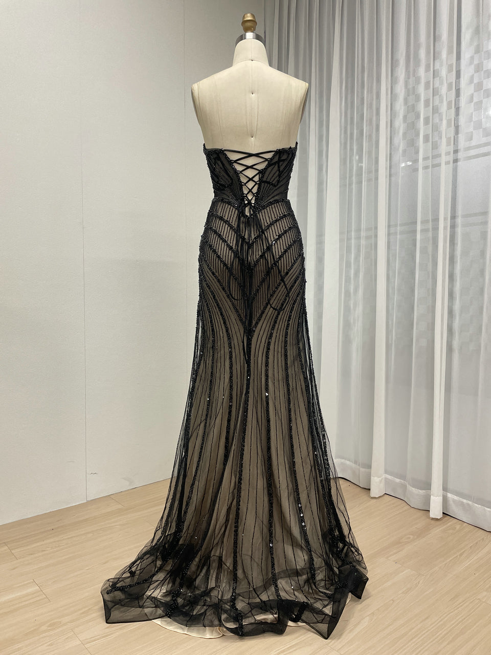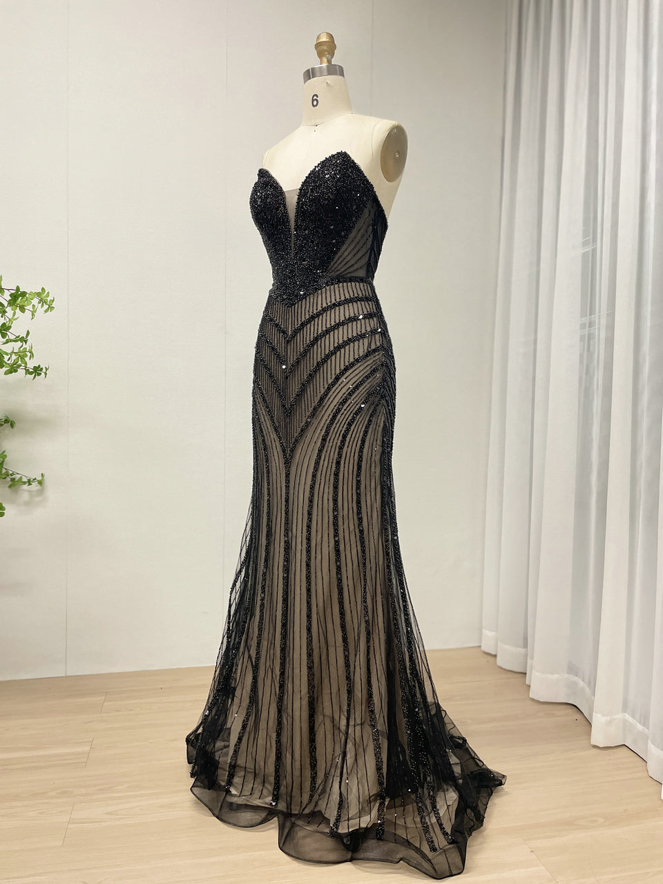 Sexy Sleeveless V Neck Crystal Beading Mermaid Prom Evening Gown MB40431