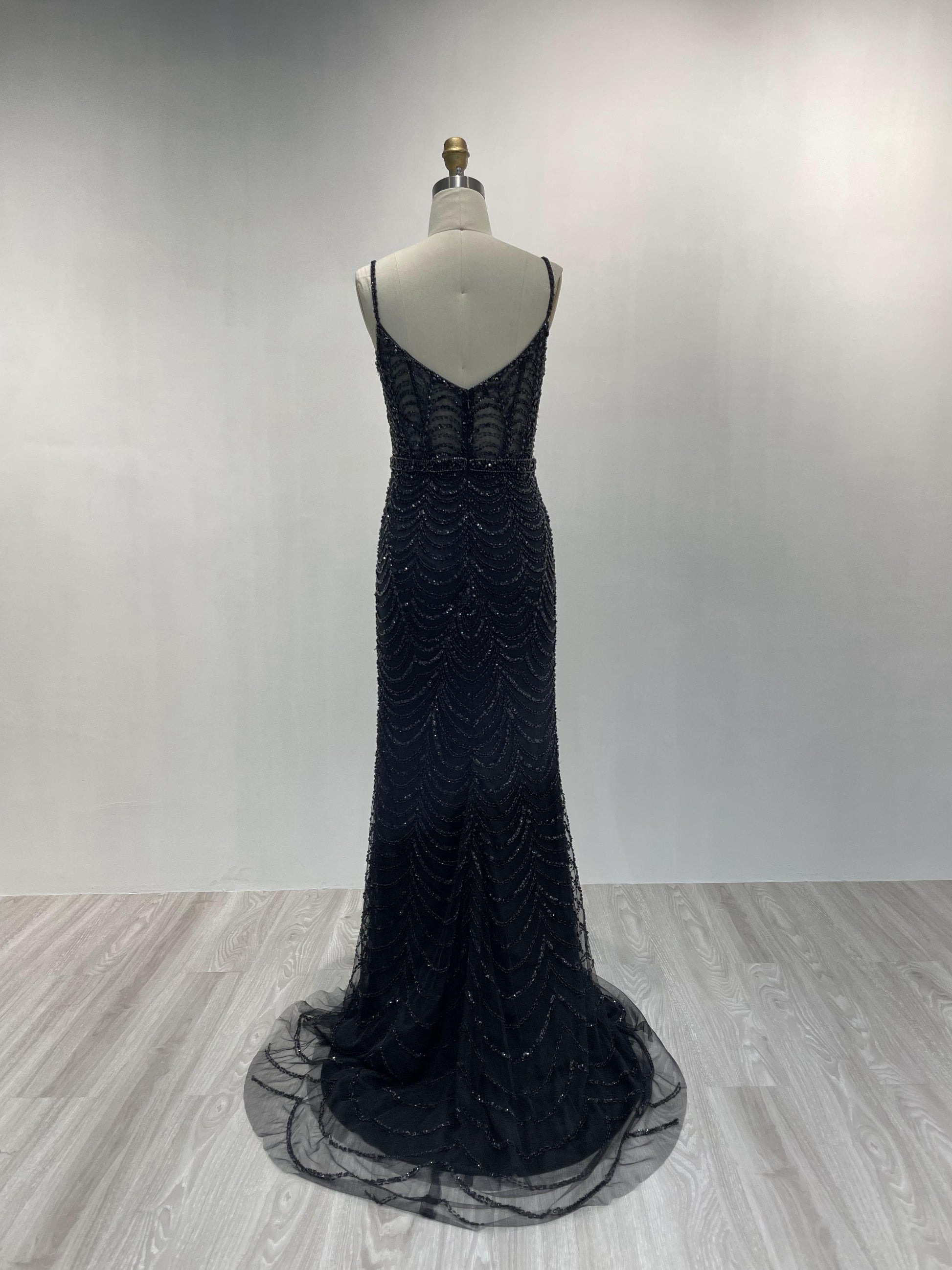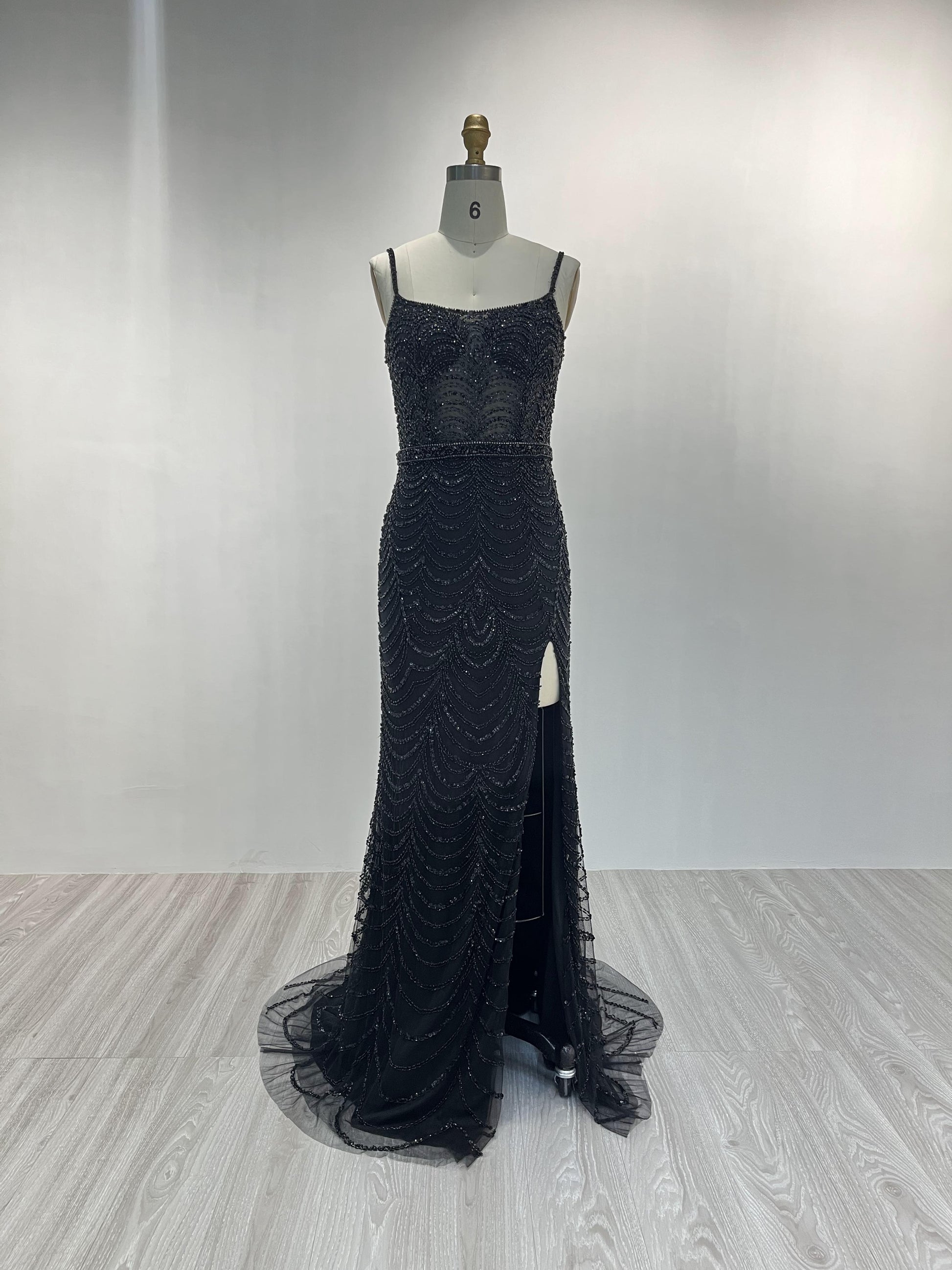 Sexy Spaghetti Strap Couture Beading High Split Evening Dress DDS062