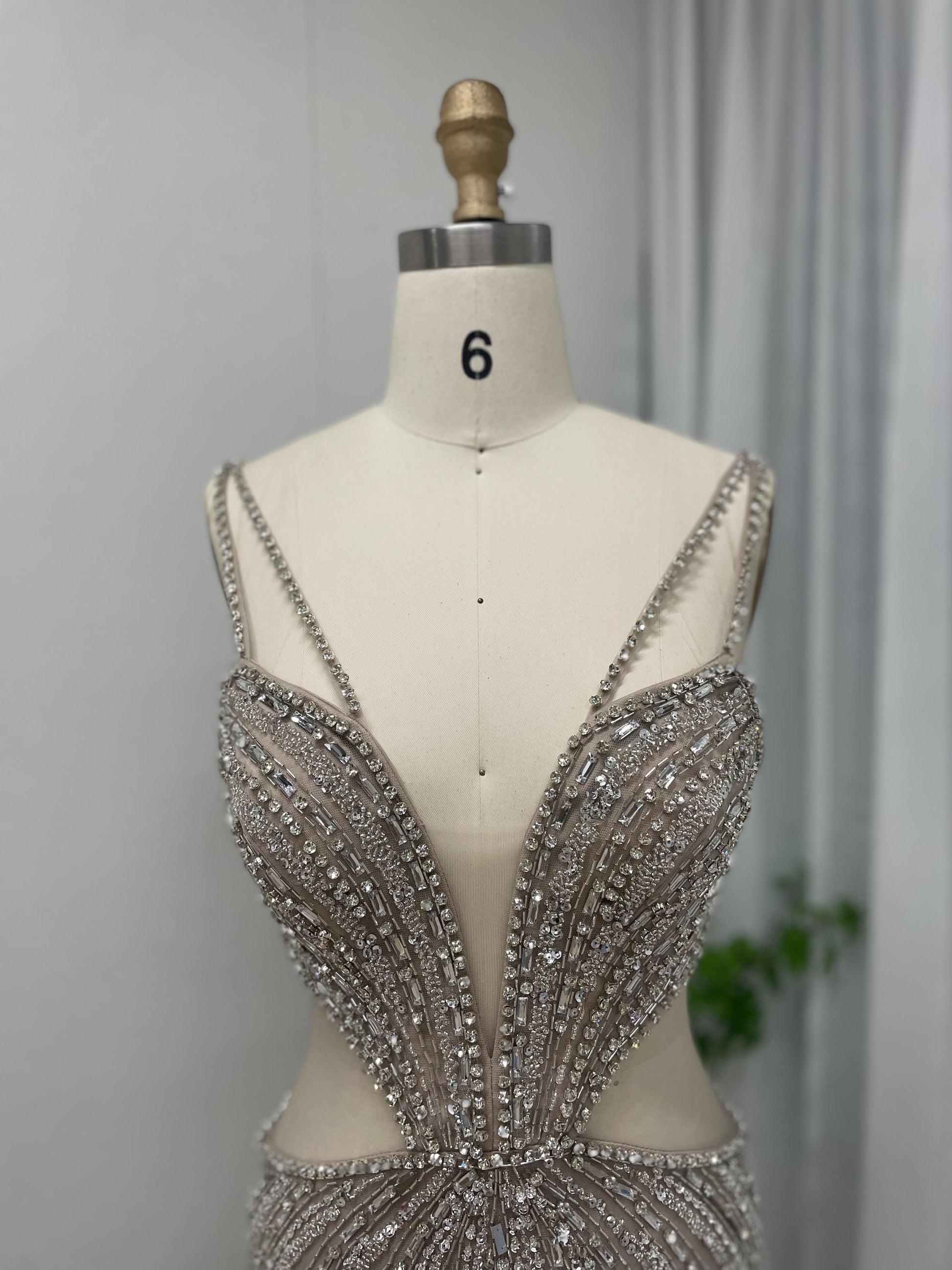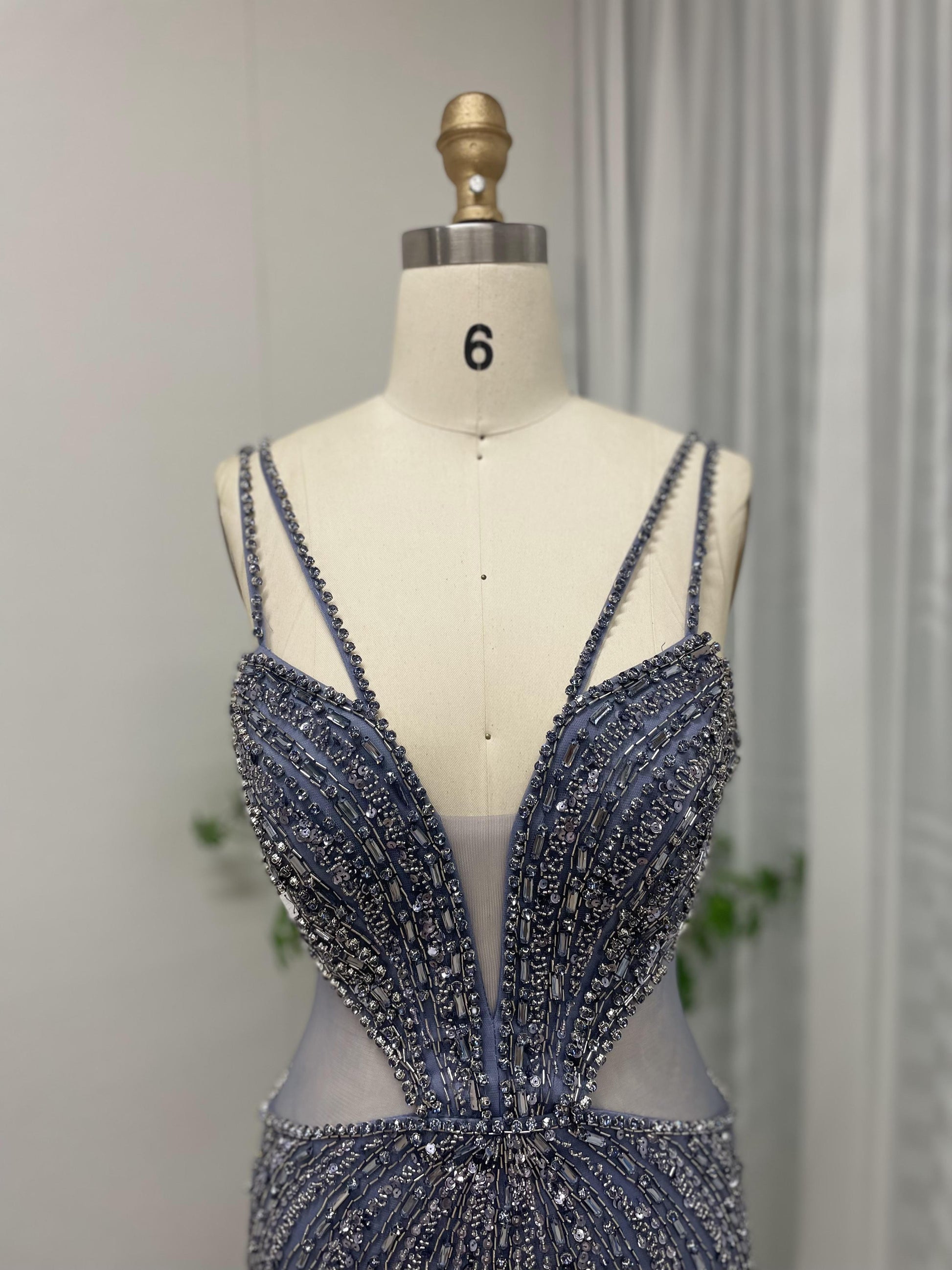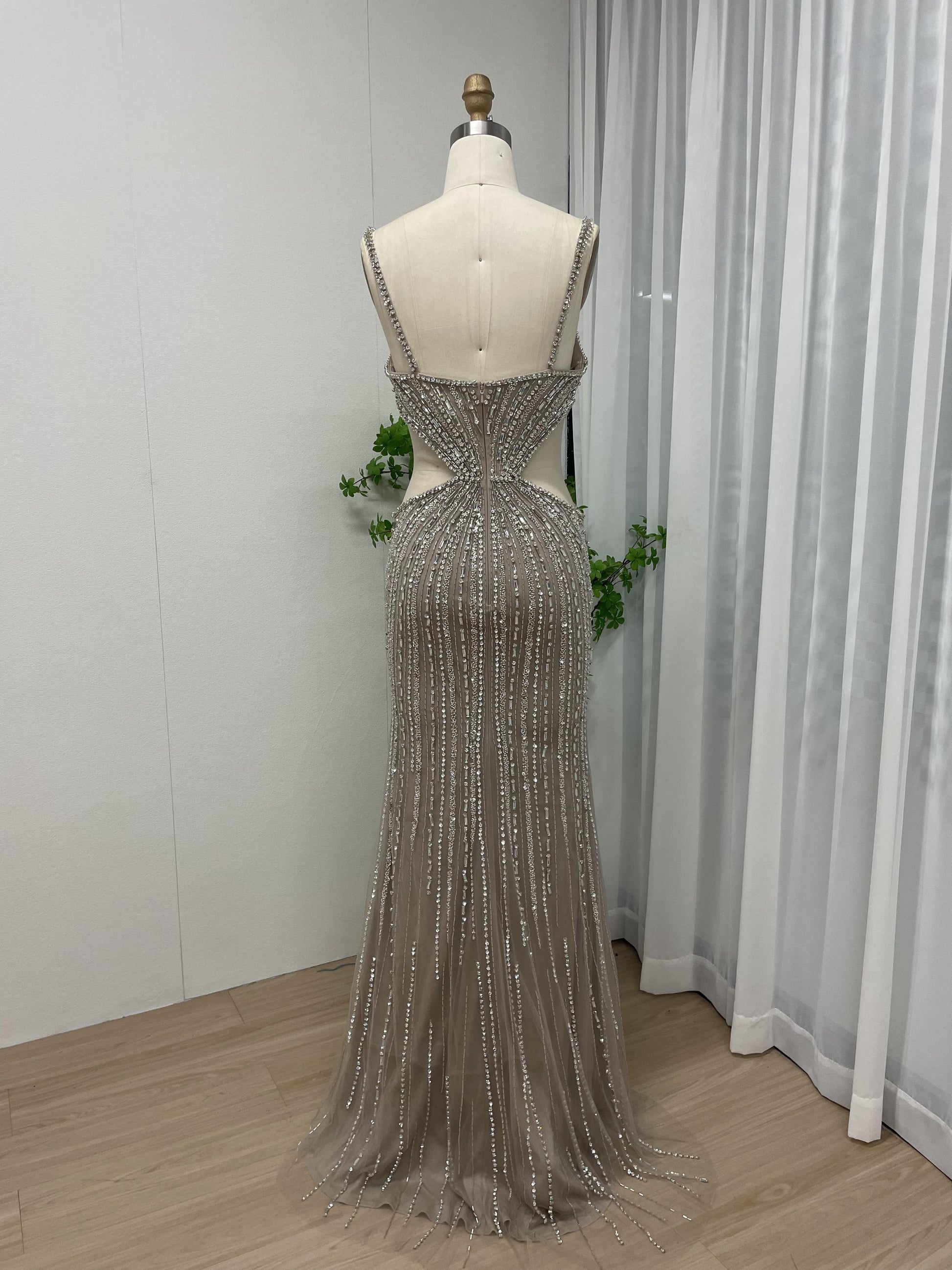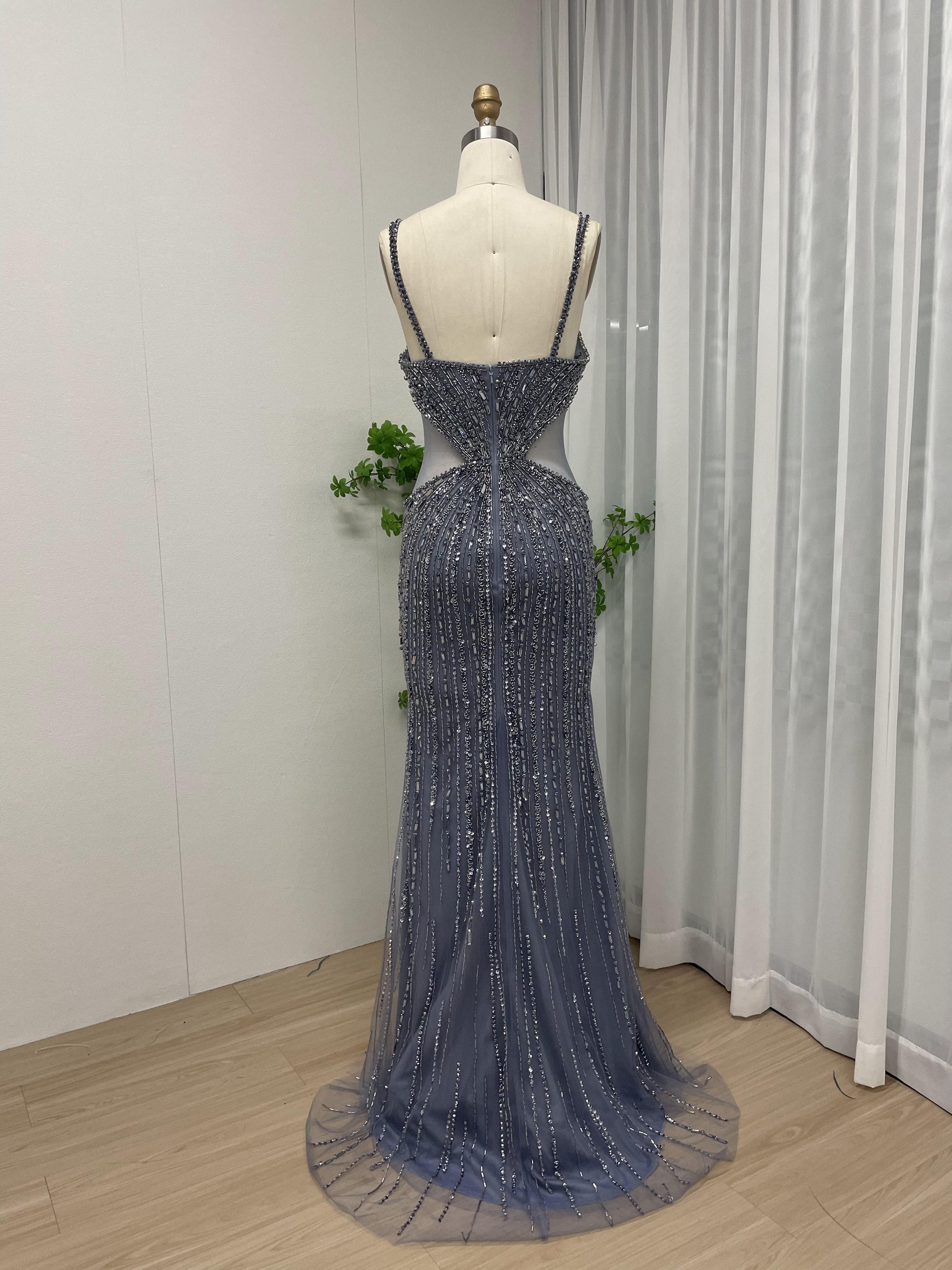 Sexy Spaghetti Strap Handmade Beading High Split Party Evening Dress MB40040-2