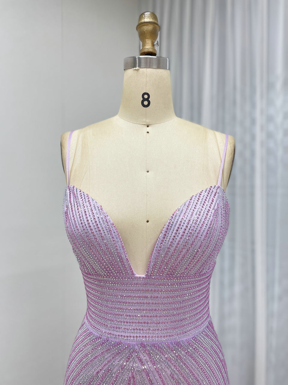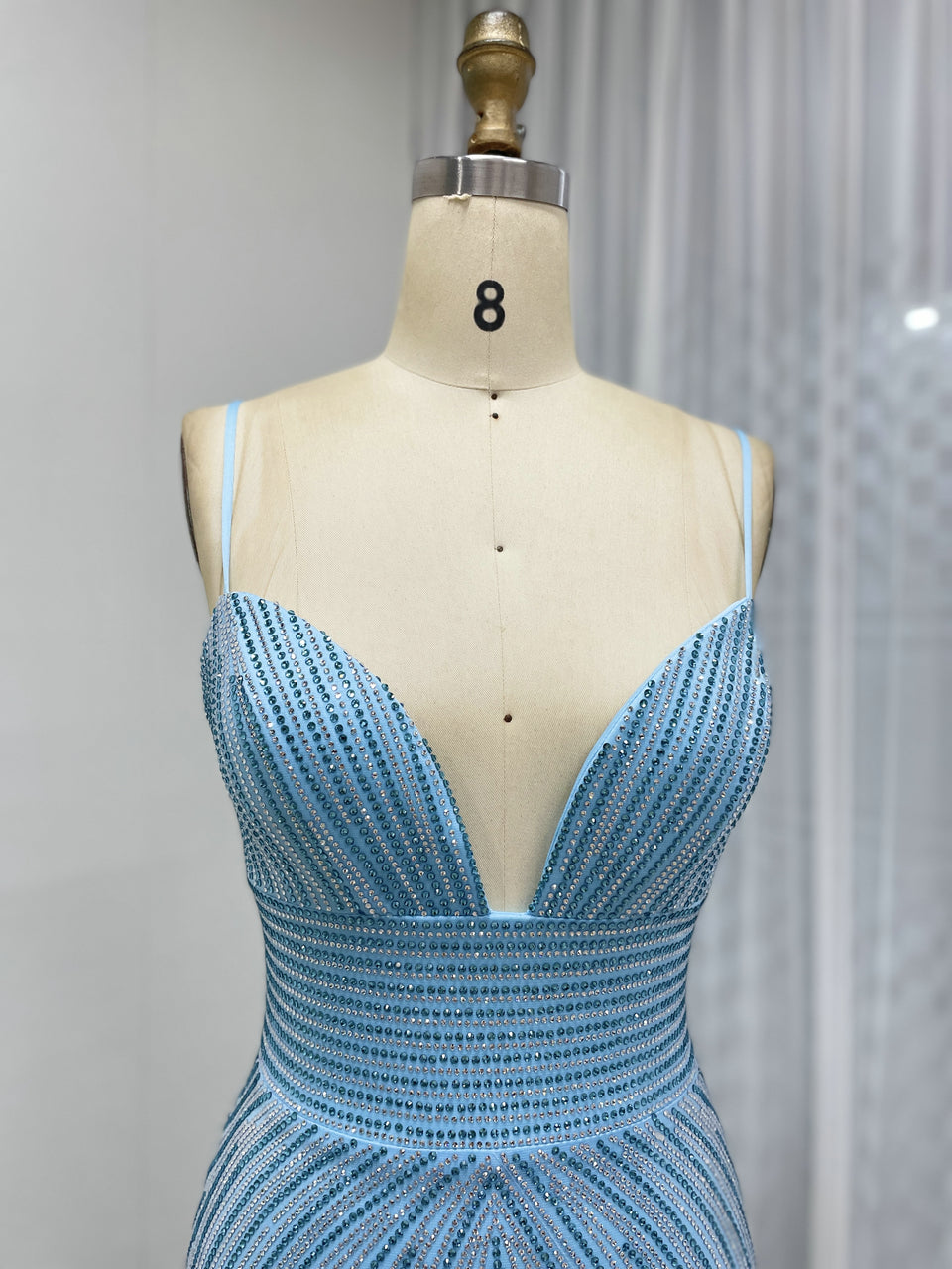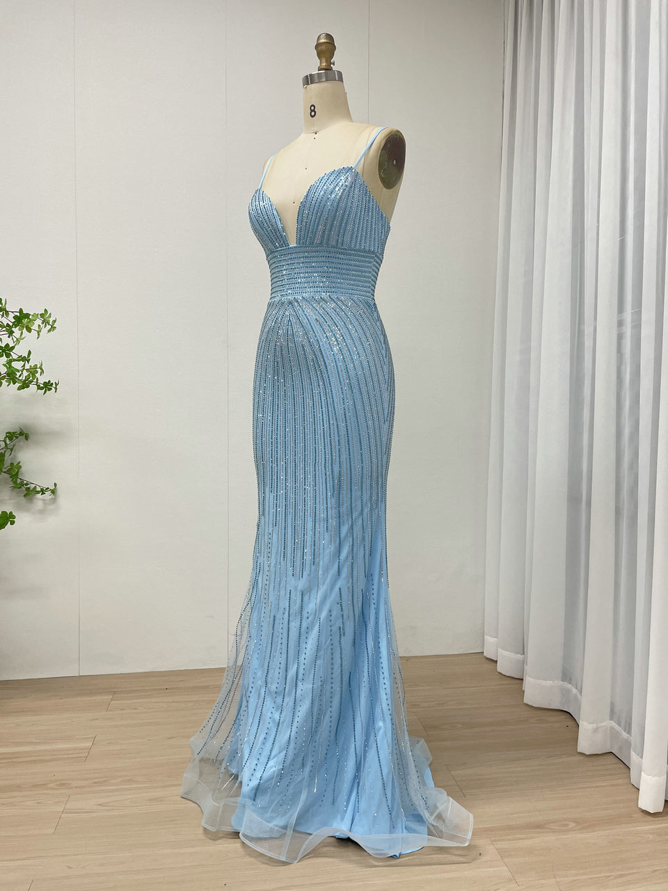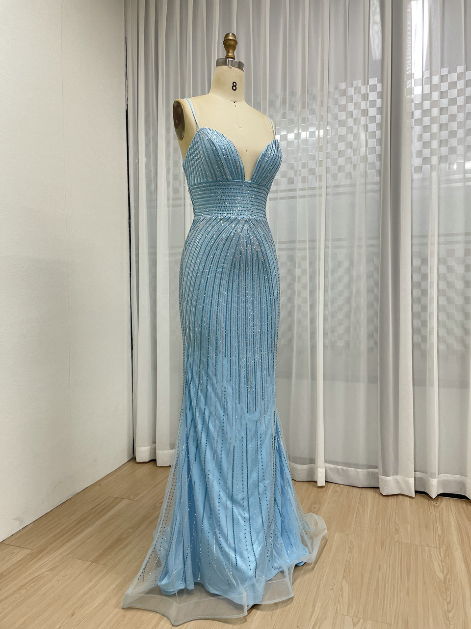 Sexy Spaghetti Strap Low BackV Neck Mermaid Evening Dress for Party MB40433