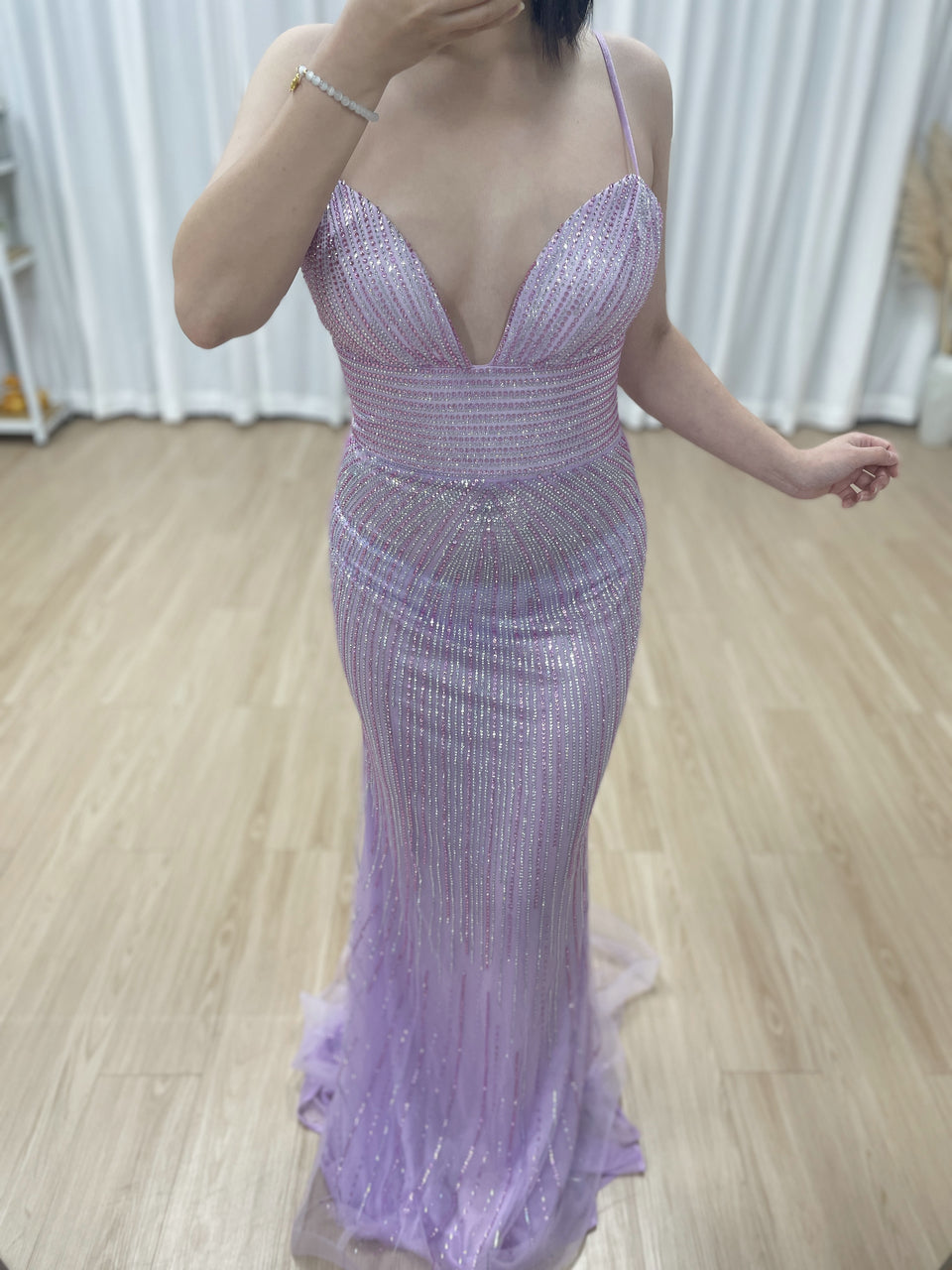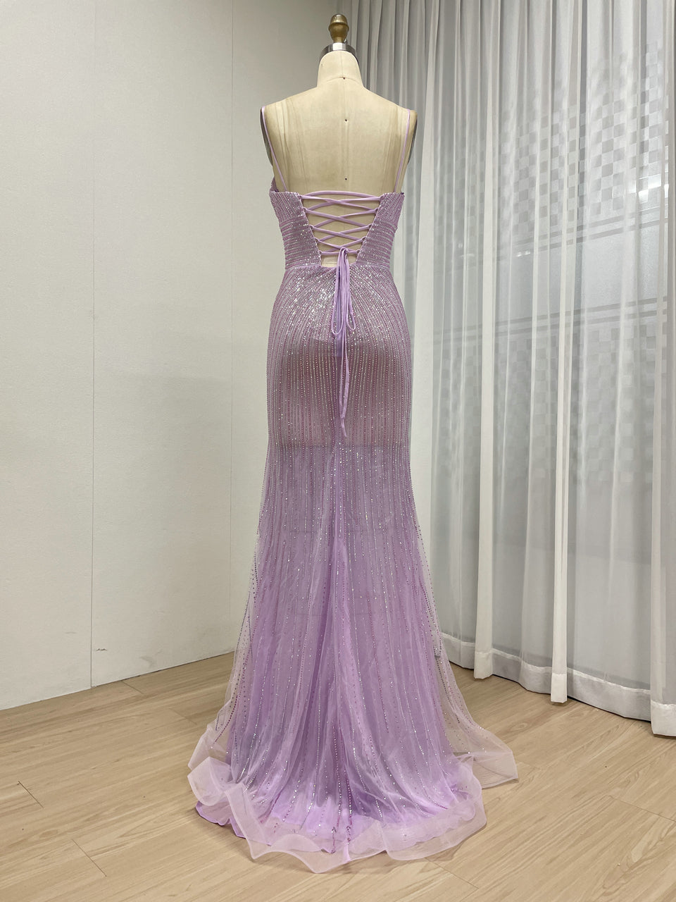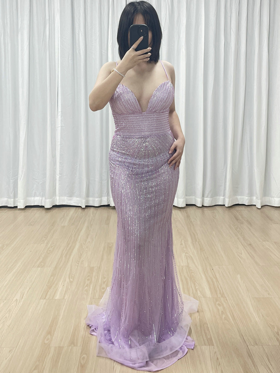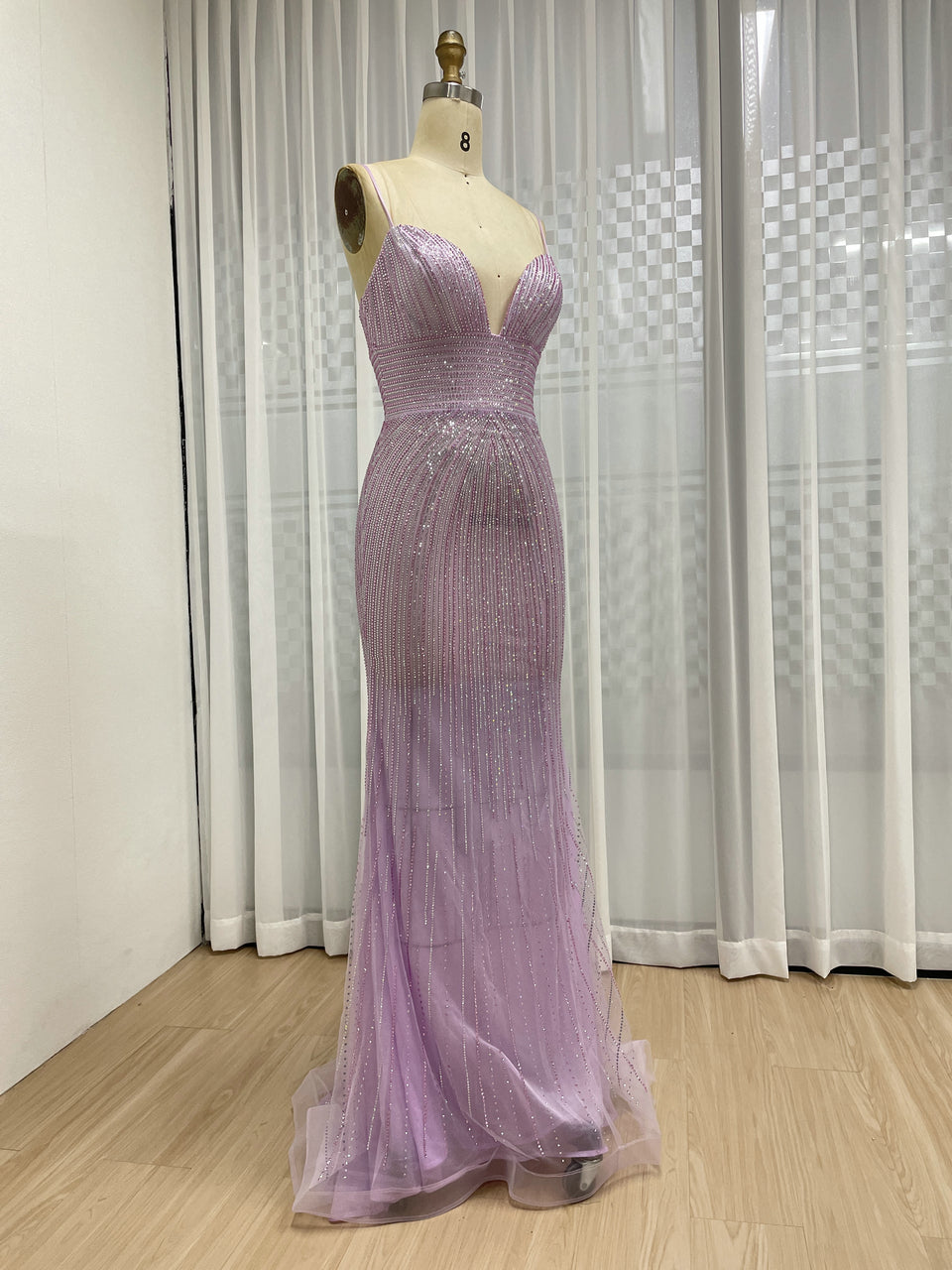 Sexy Spaghetti Strap Low BackV Neck Mermaid Evening Dress for Party MB40433