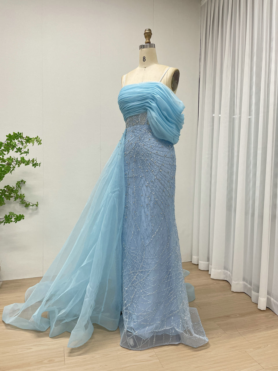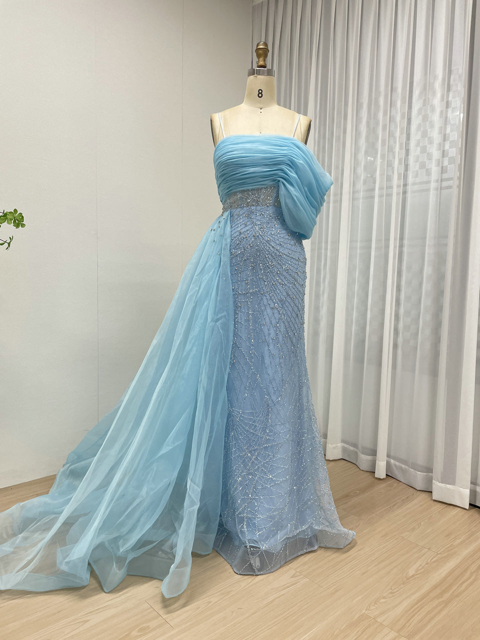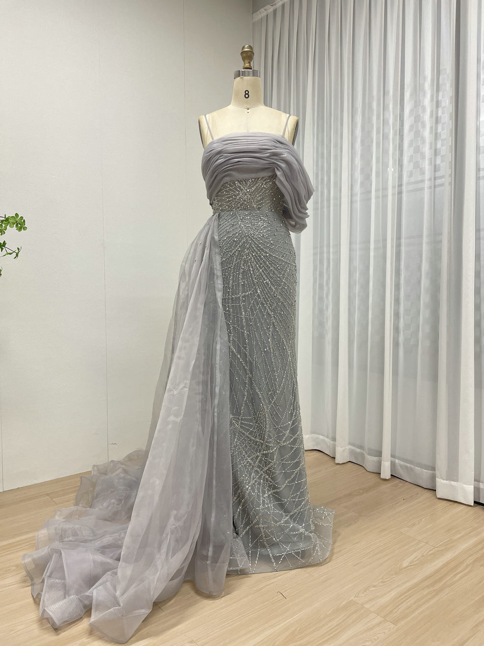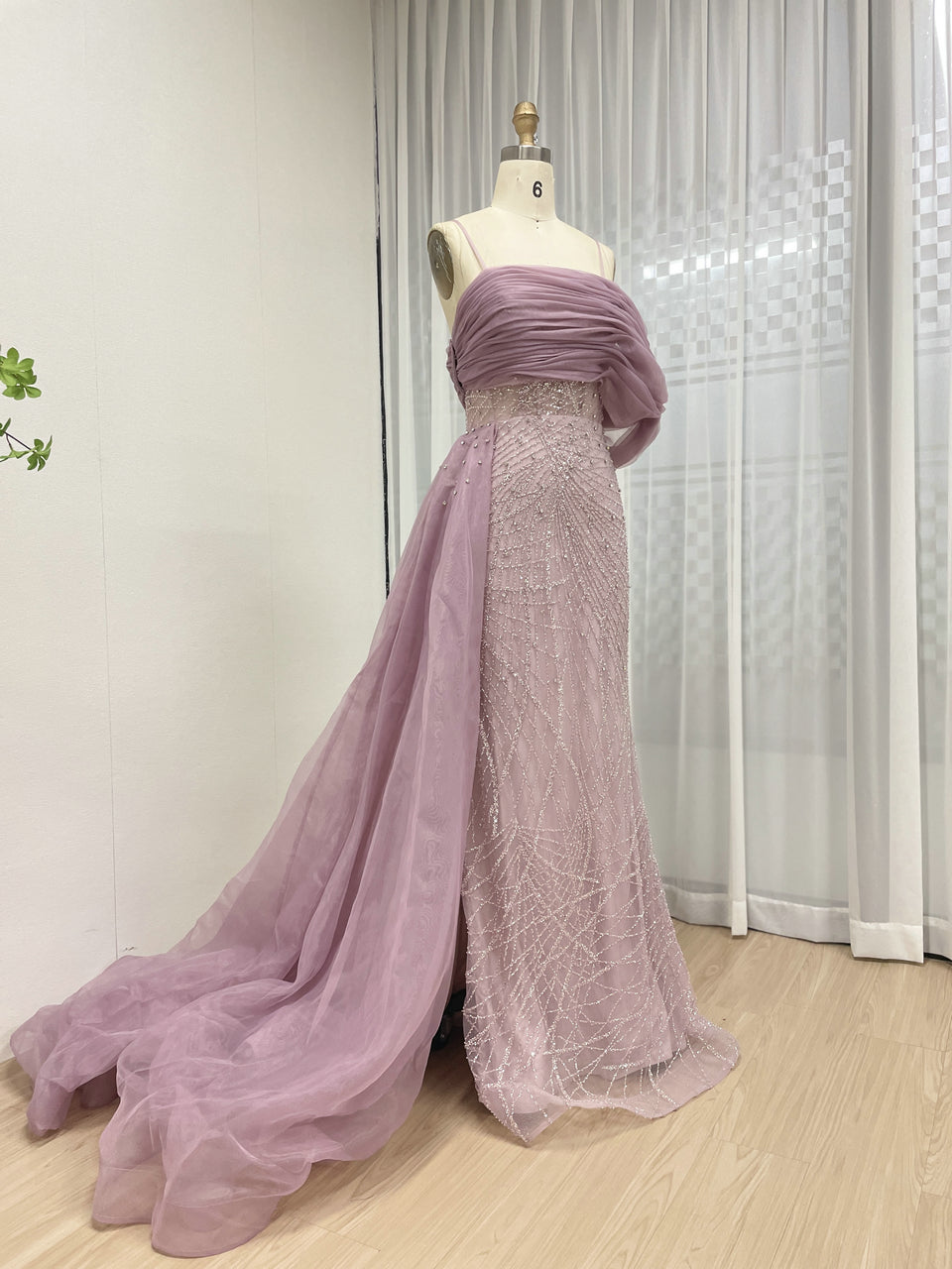 Sexy Spaghetti Strap Mermaid Evening Gown Suitable For Banquet With Side Train MB40373