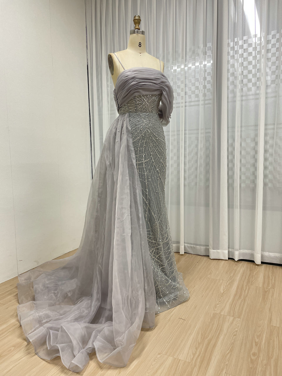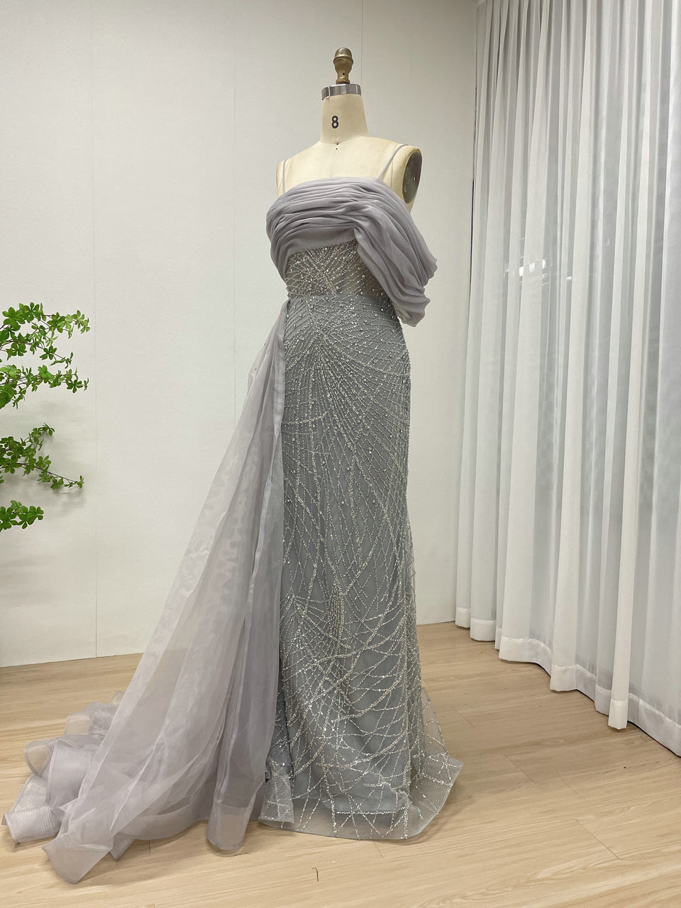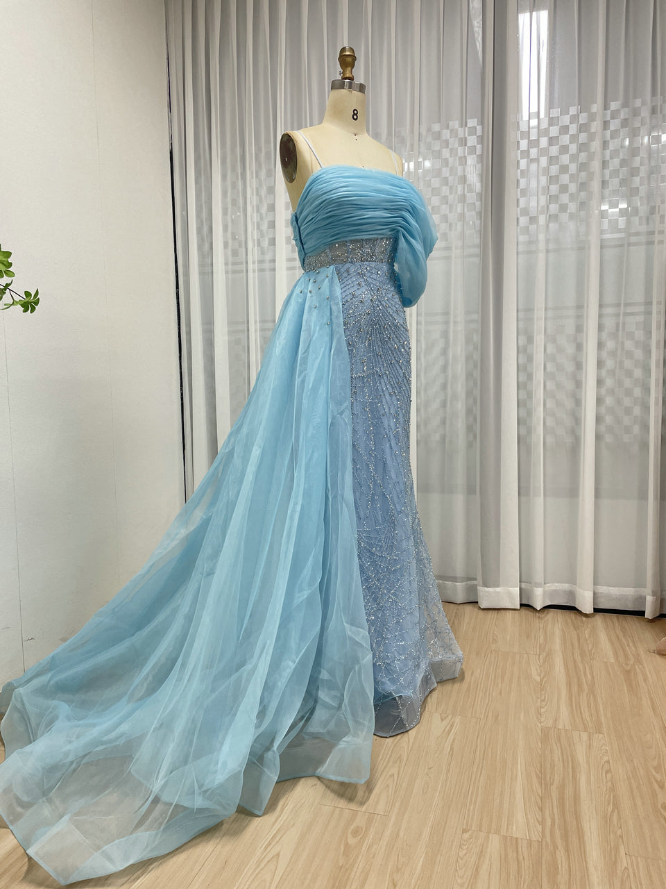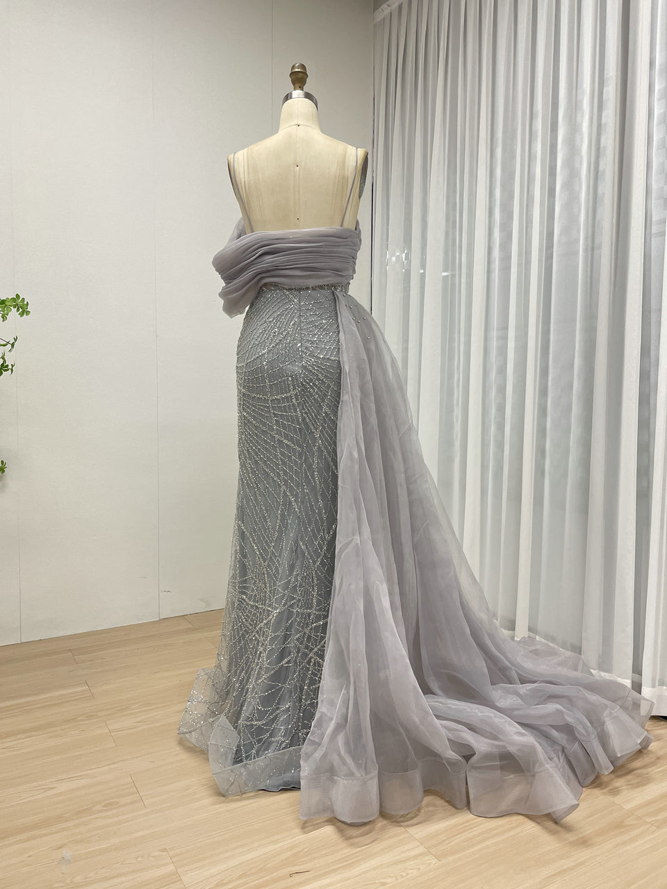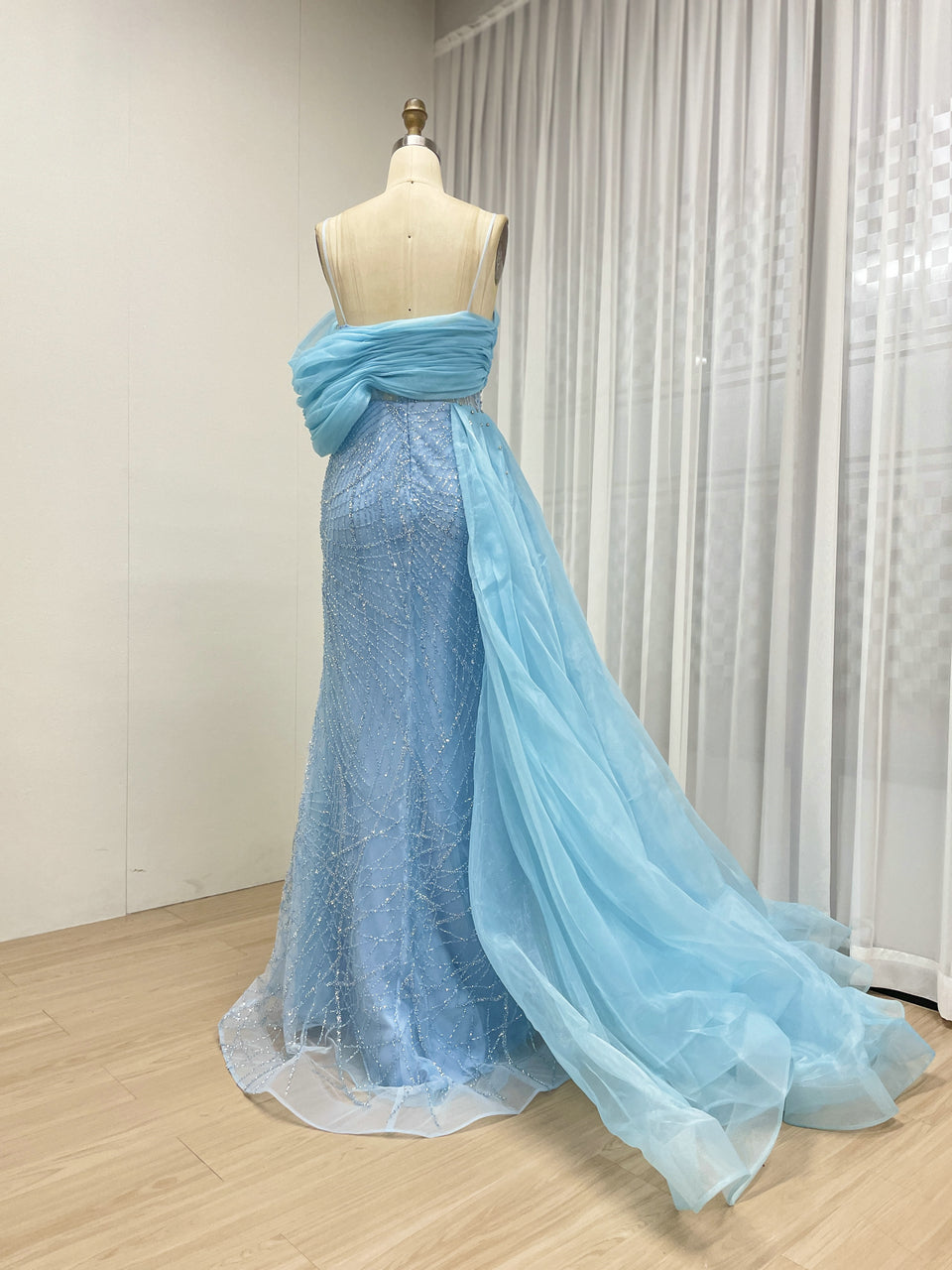Sexy Spaghetti Strap Mermaid Evening Gown Suitable For Banquet With Side Train MB40373