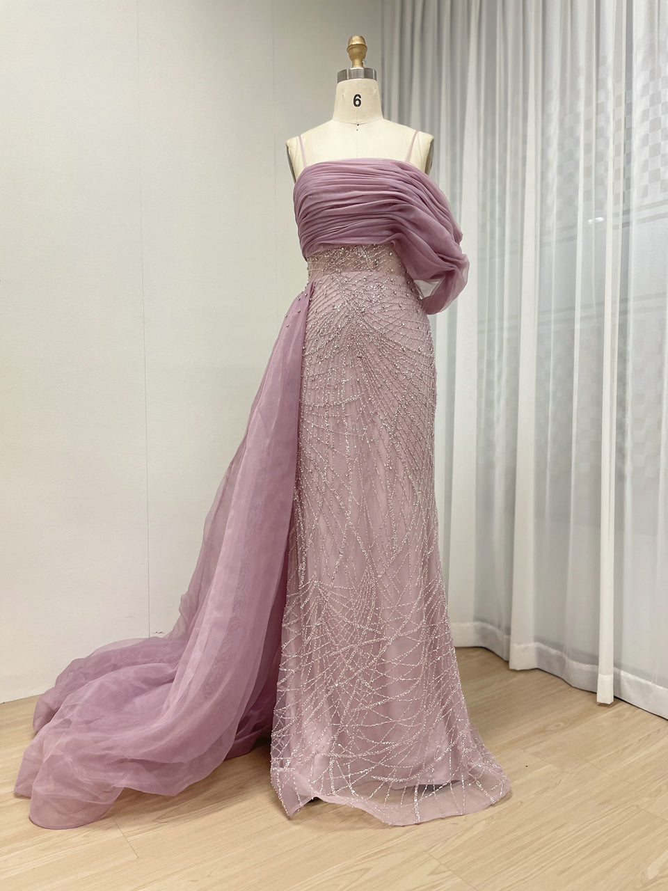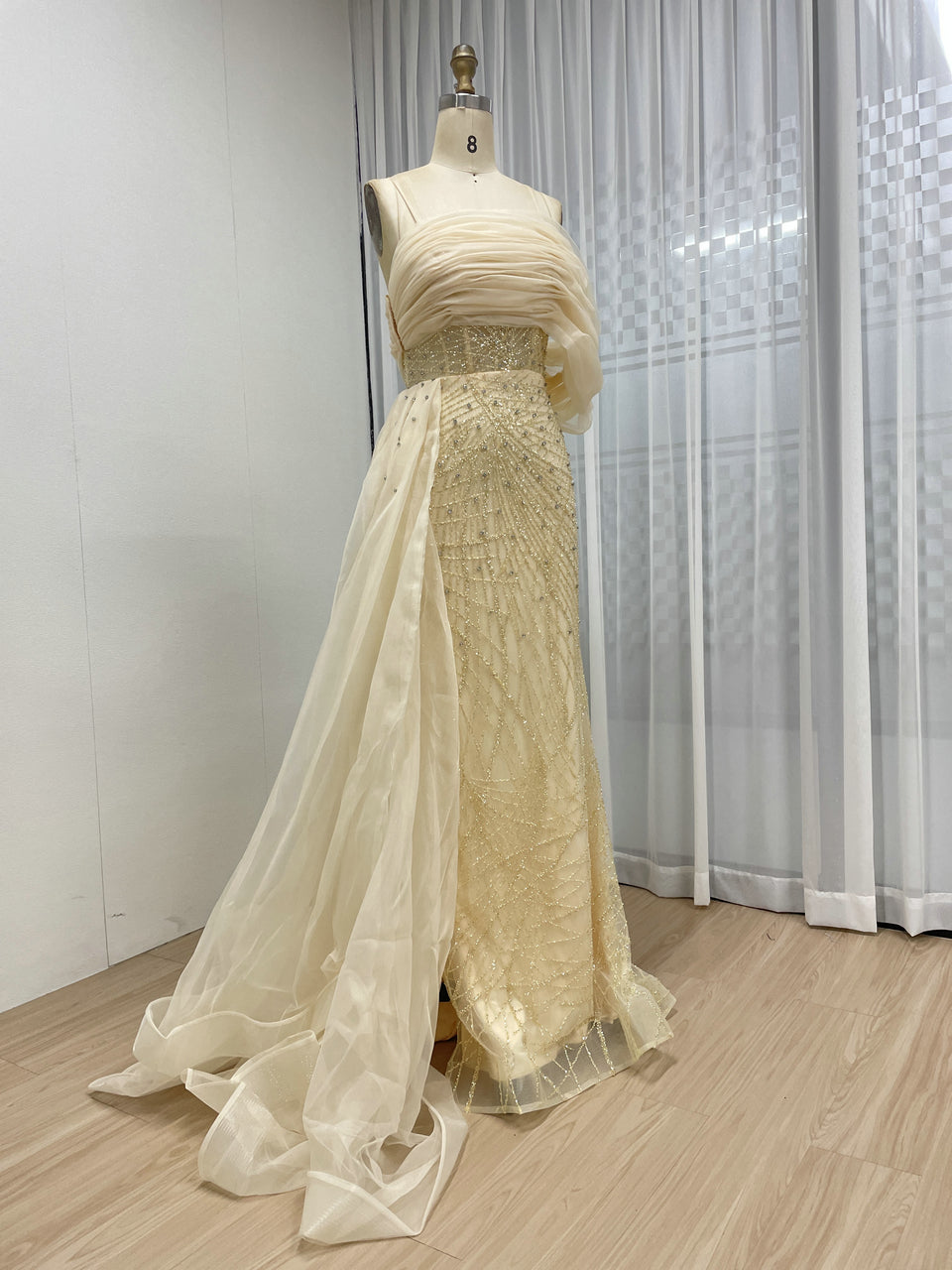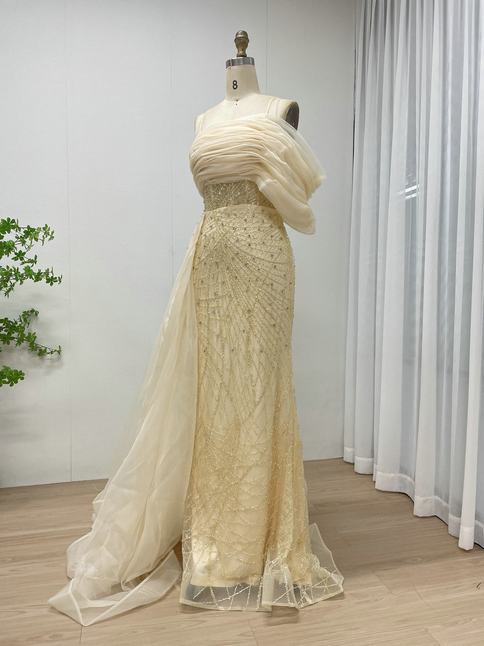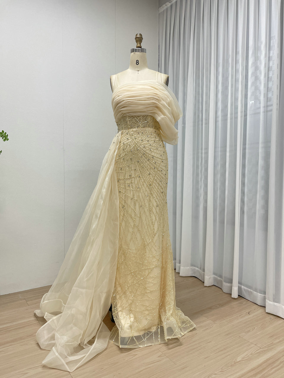 Sexy Spaghetti Strap Mermaid Evening Gown Suitable For Banquet With Side Train MB40373