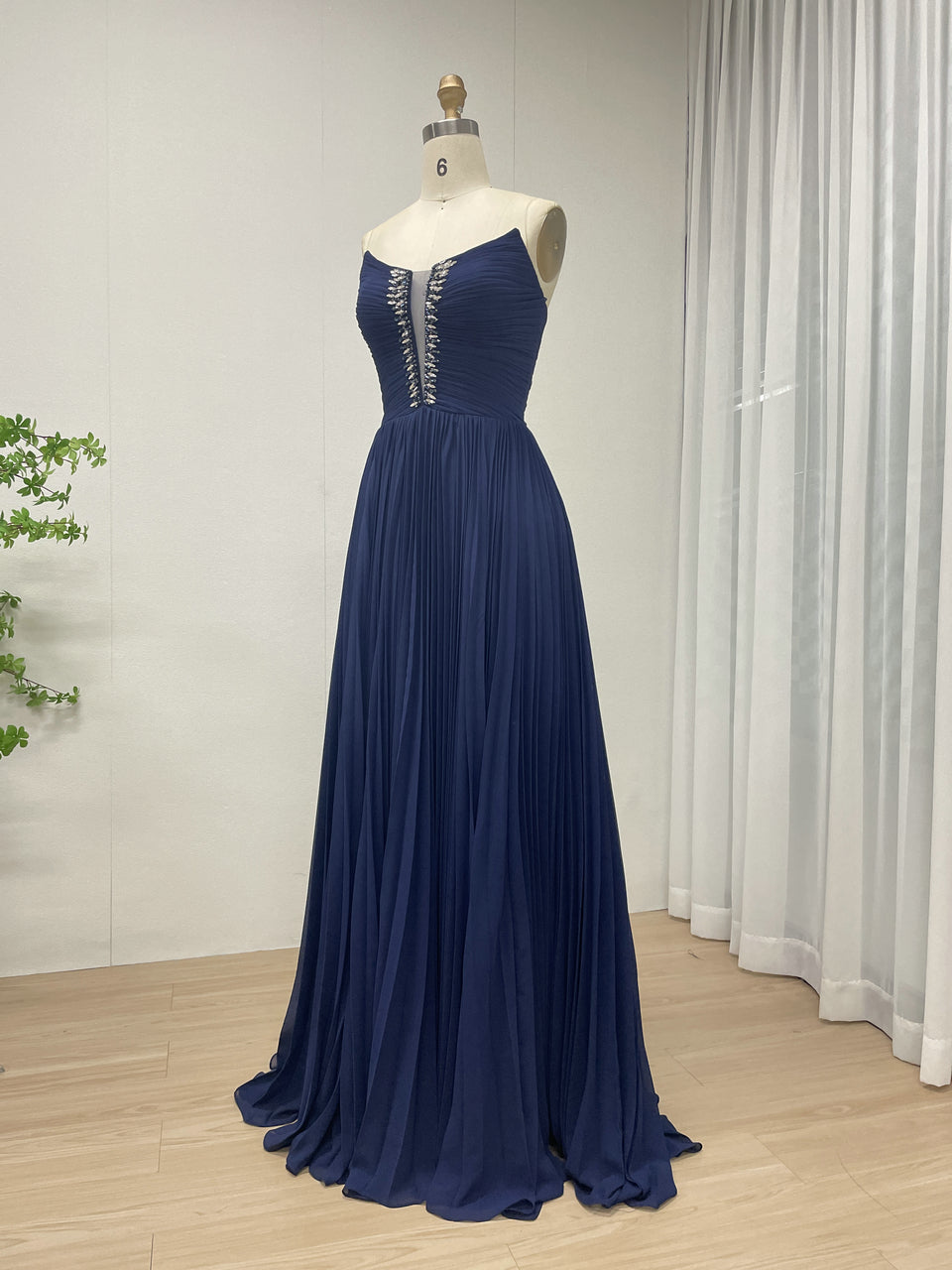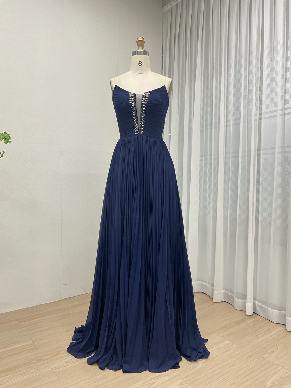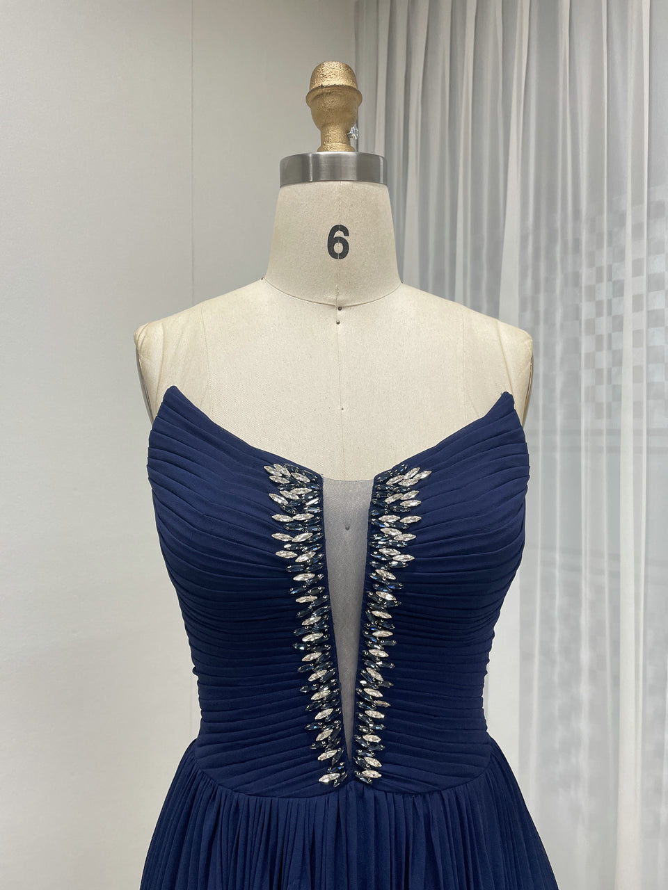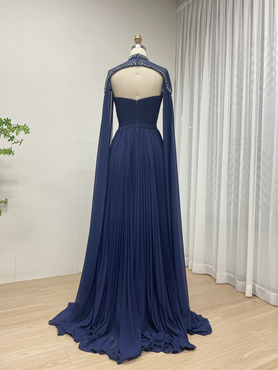 Sexy V Neck beading Blue Muslim Long Sleeve Dress With Detachable Cap Sleeve MB40313
