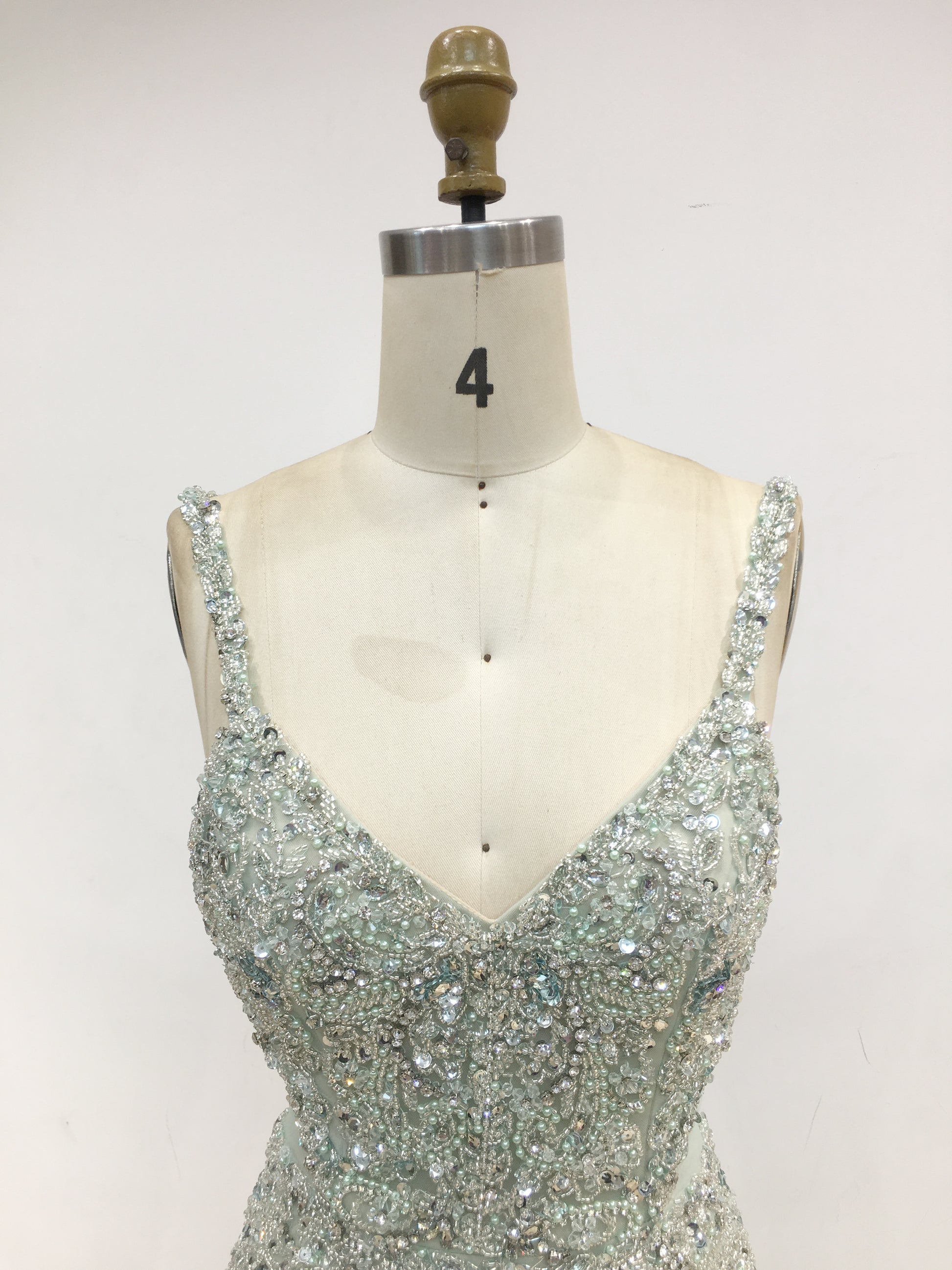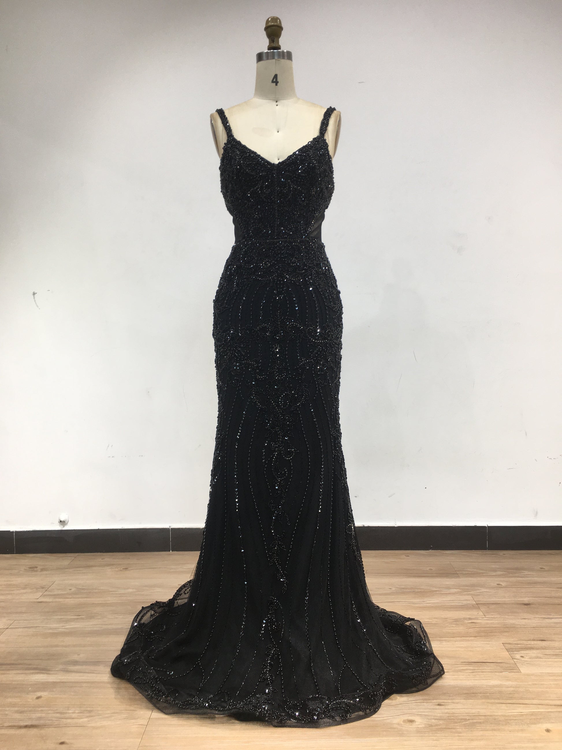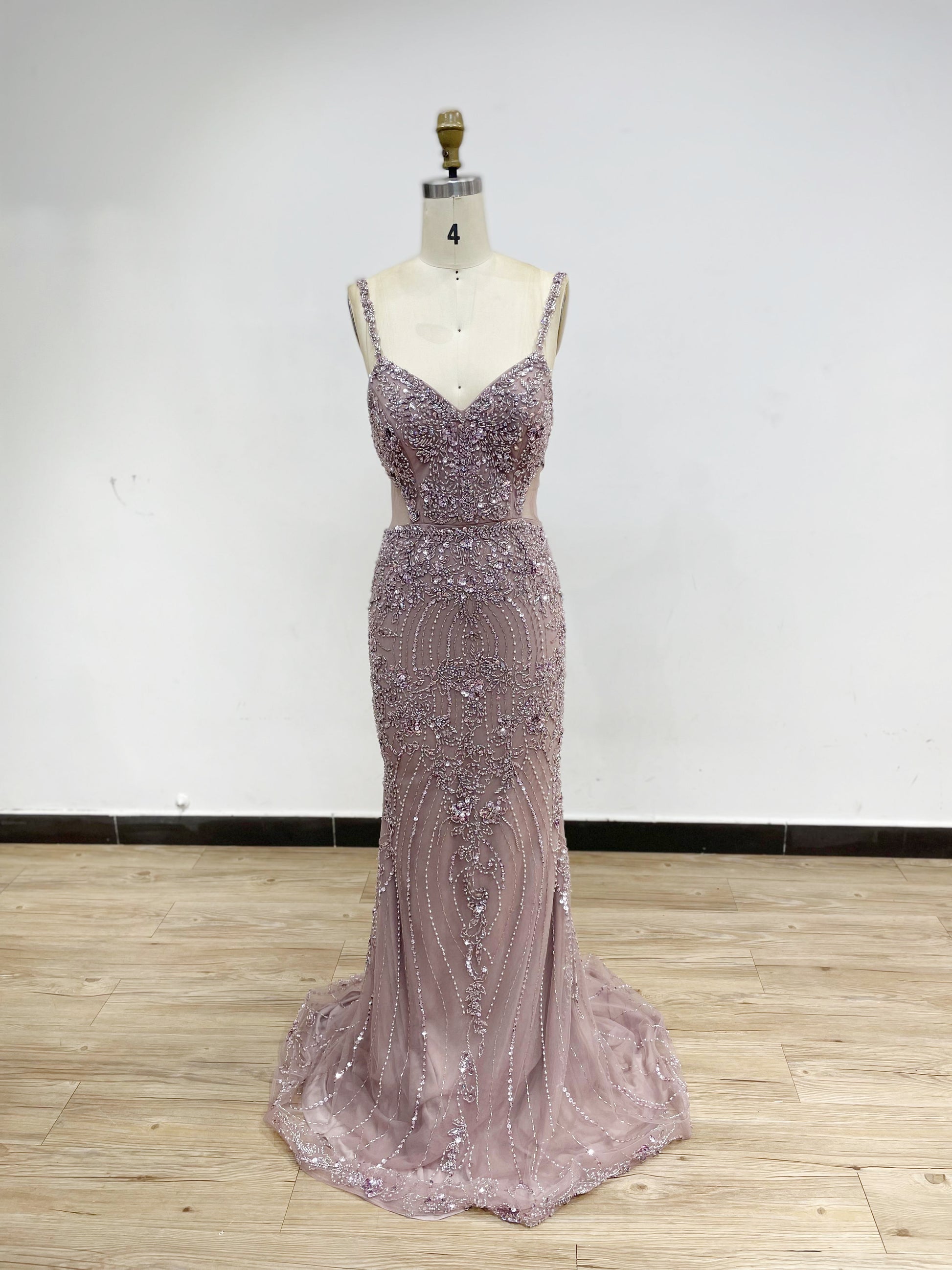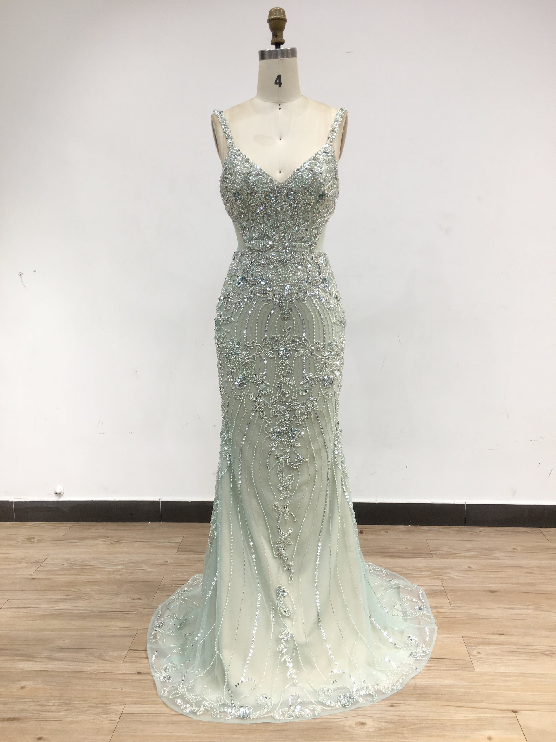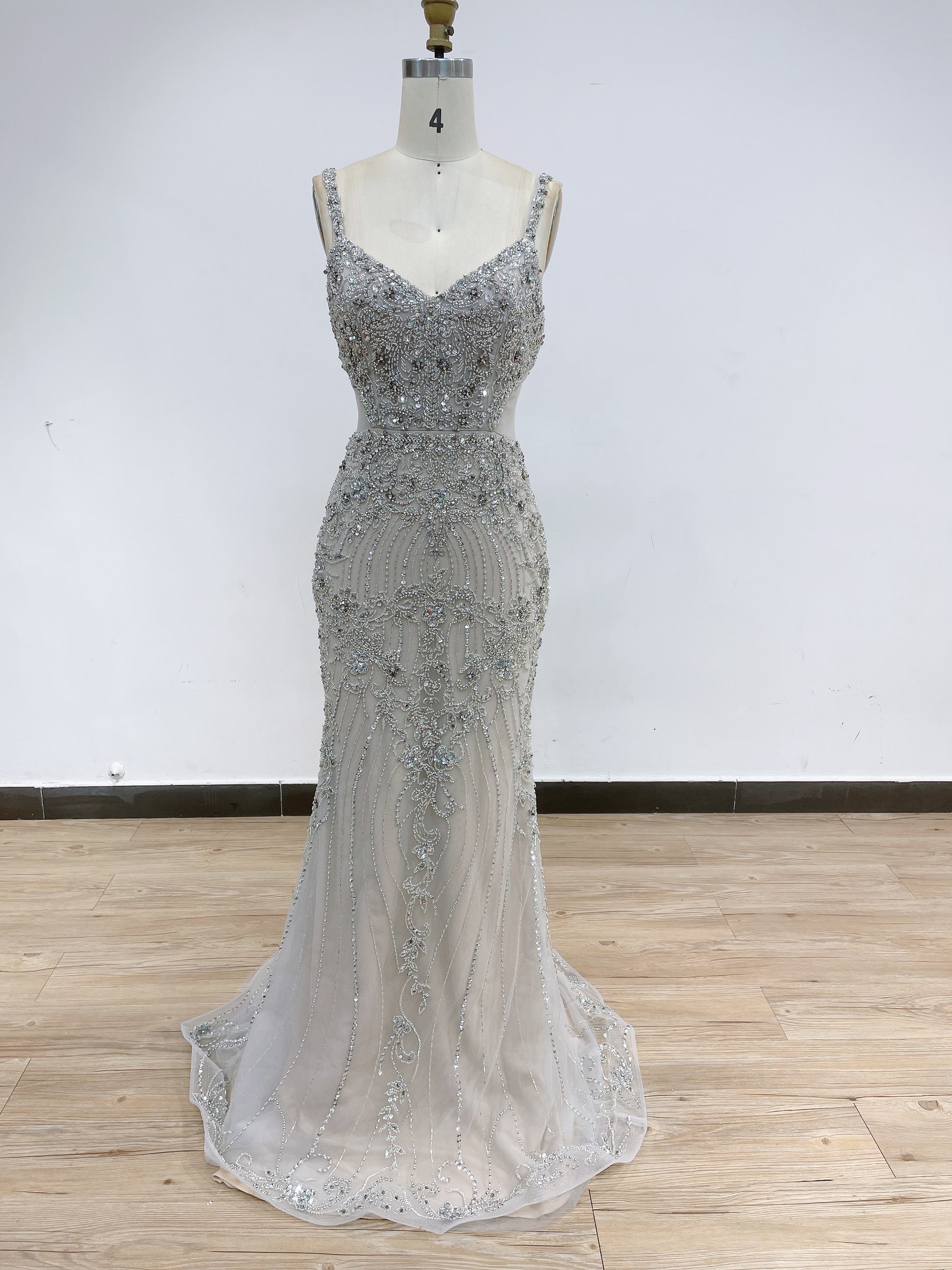Spaghetti Strap Handmade Beading Designer Evening Dress DD19007C