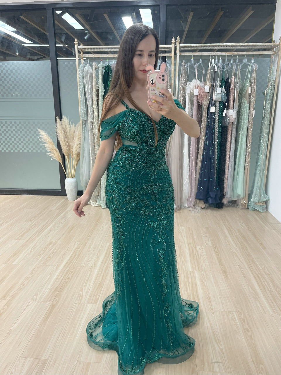 Spaghetti Strap Handmade Beading Off Shoulder Engagement Wedding Party Evening Dress DD19007-2