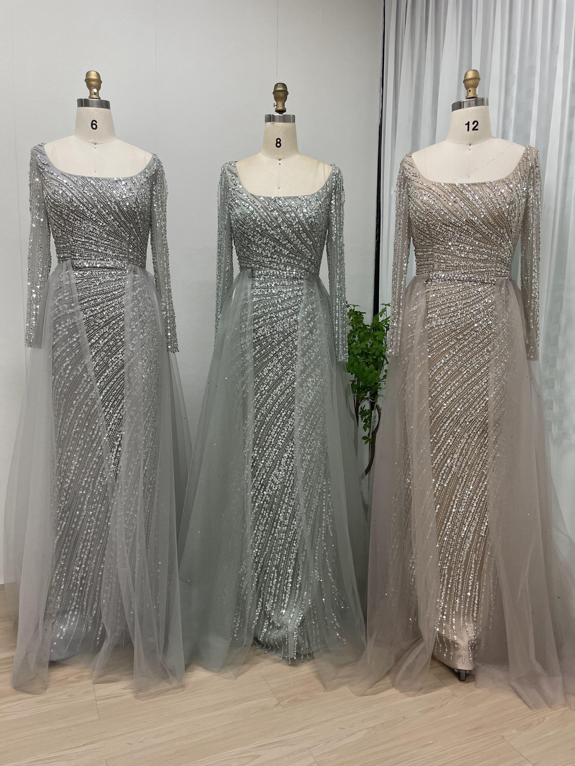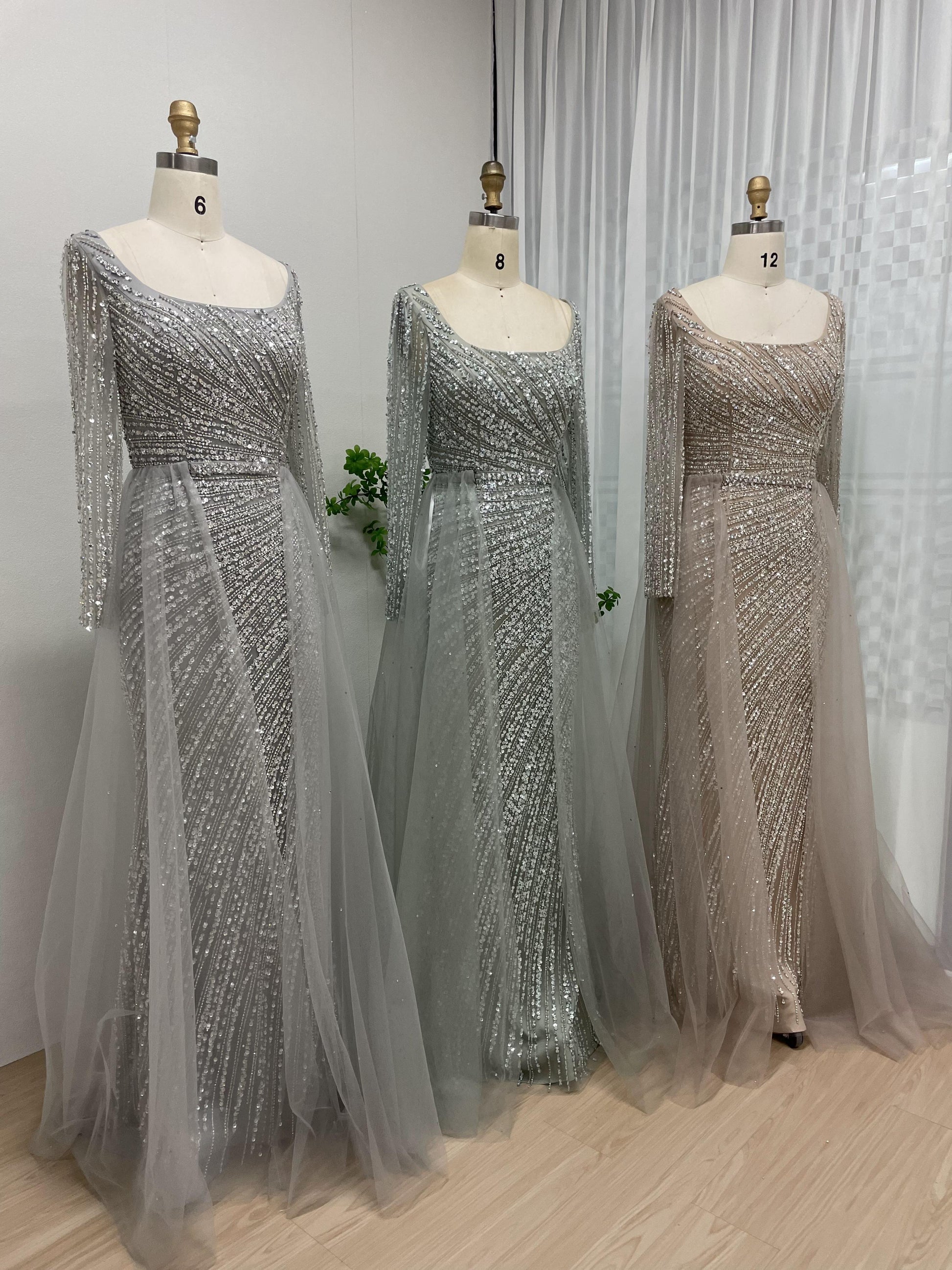 Square Neck Long Sleeve Beading Dress ASU2020-08L