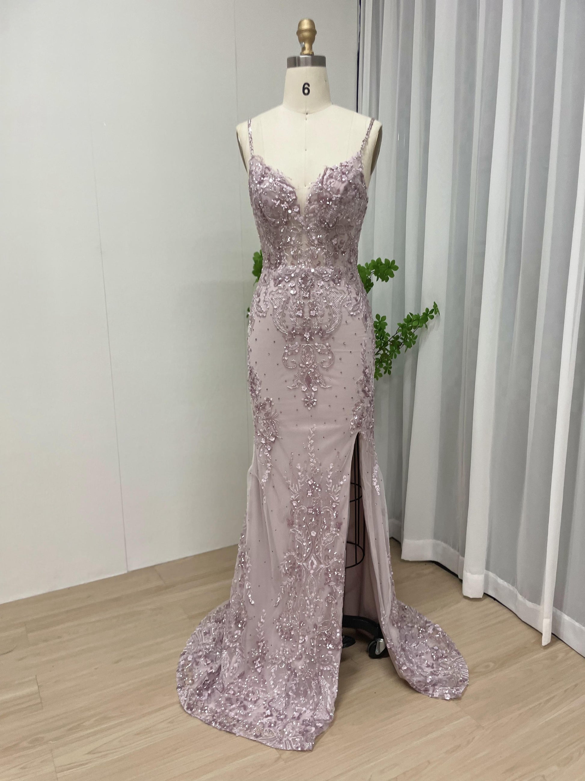 Strap Sweetheart Beading Lace Prom Dress GJE005