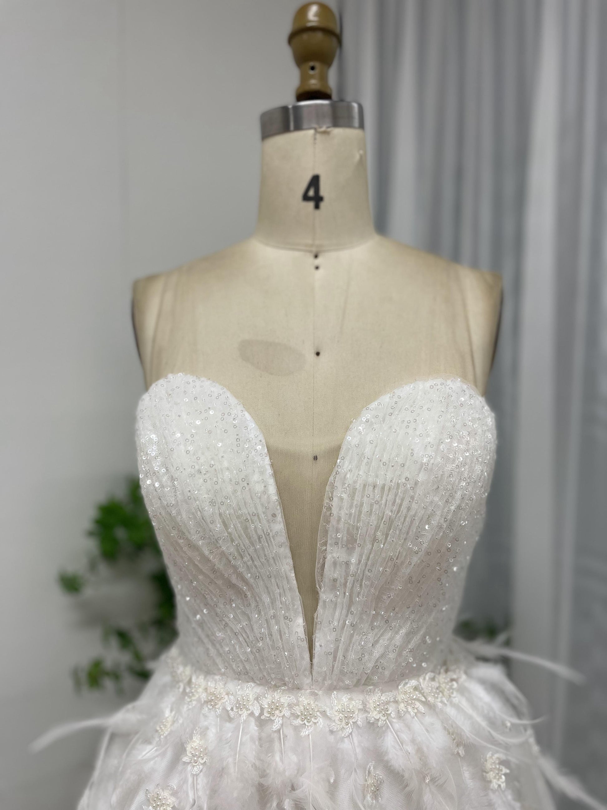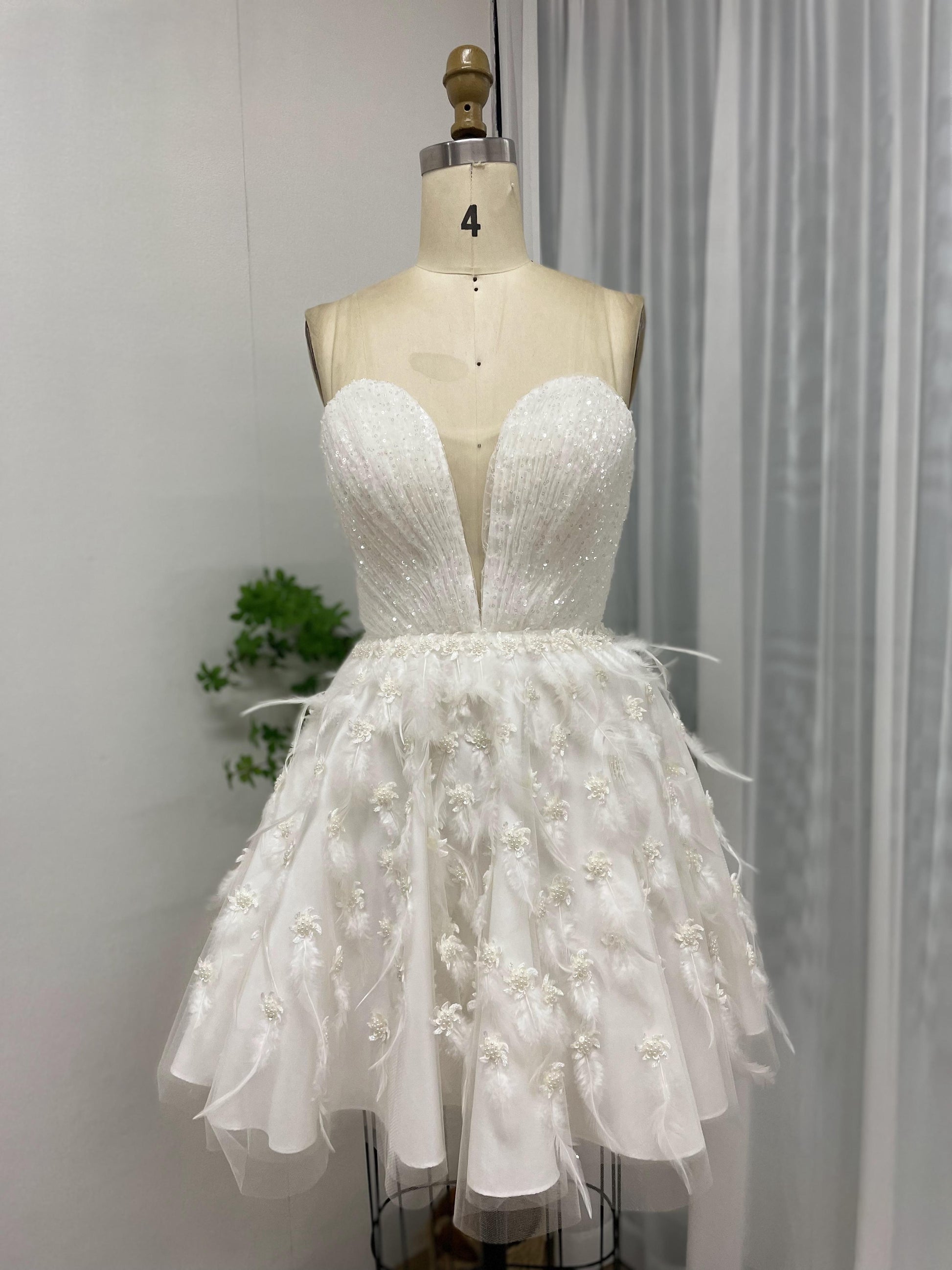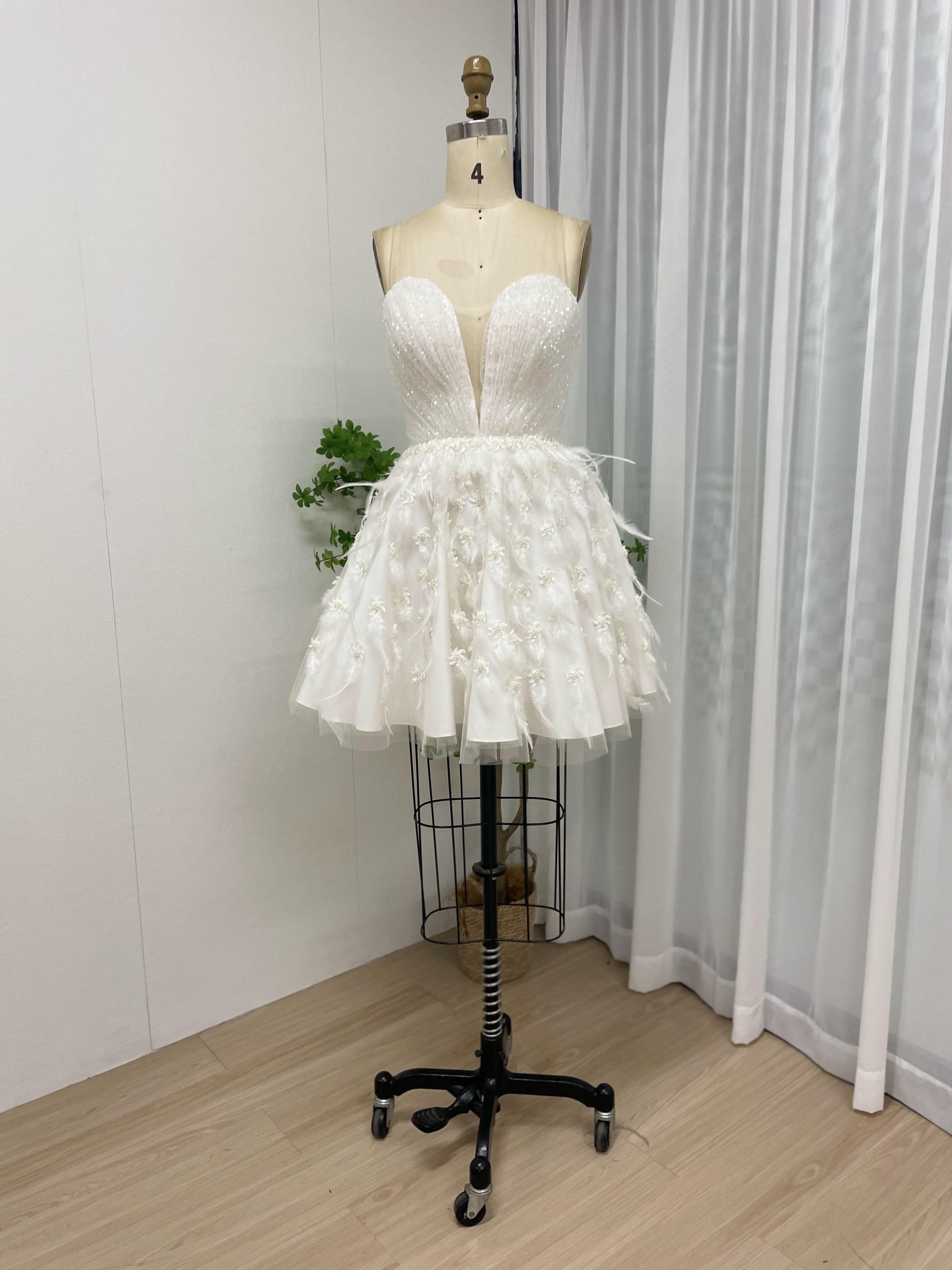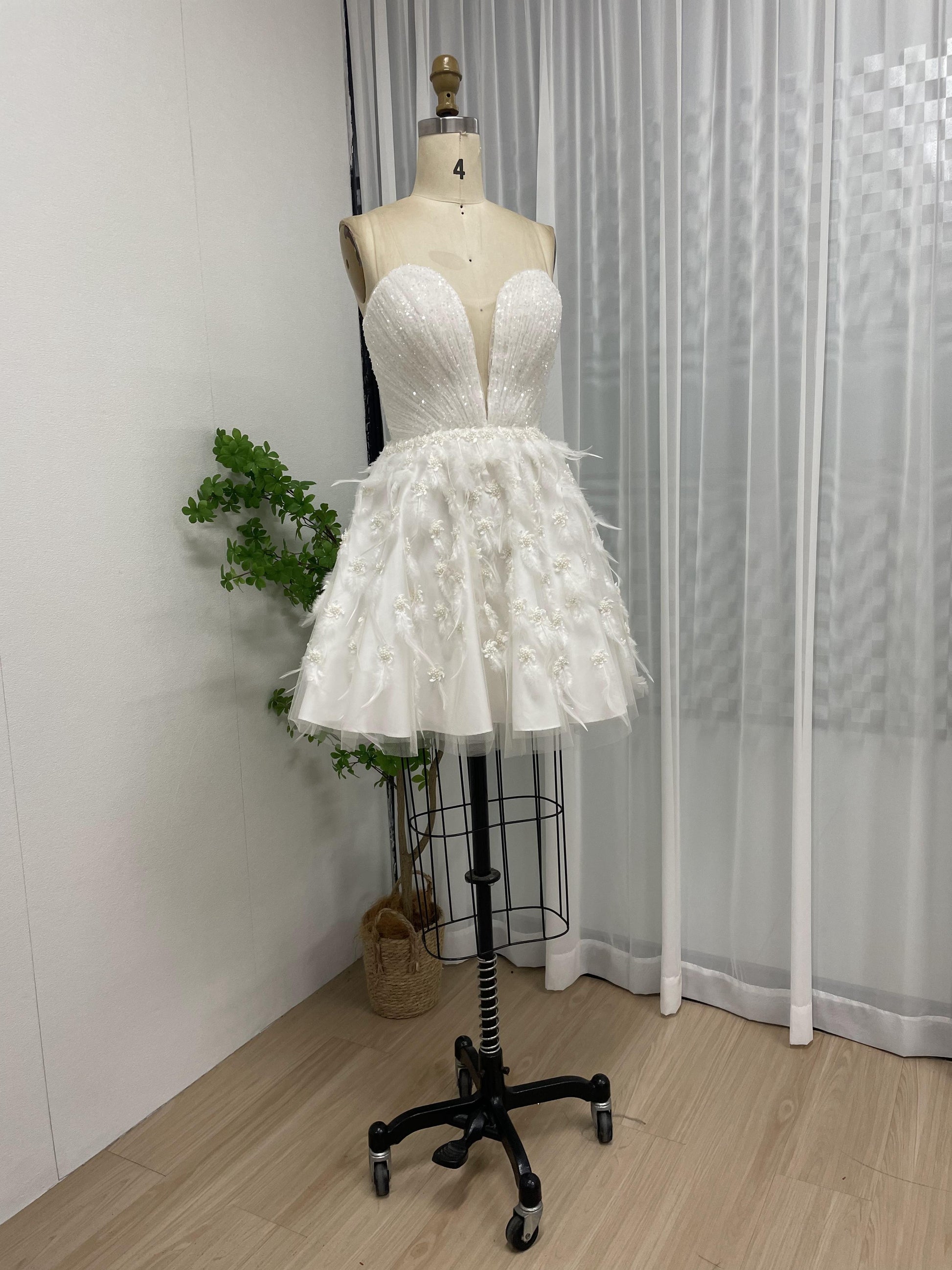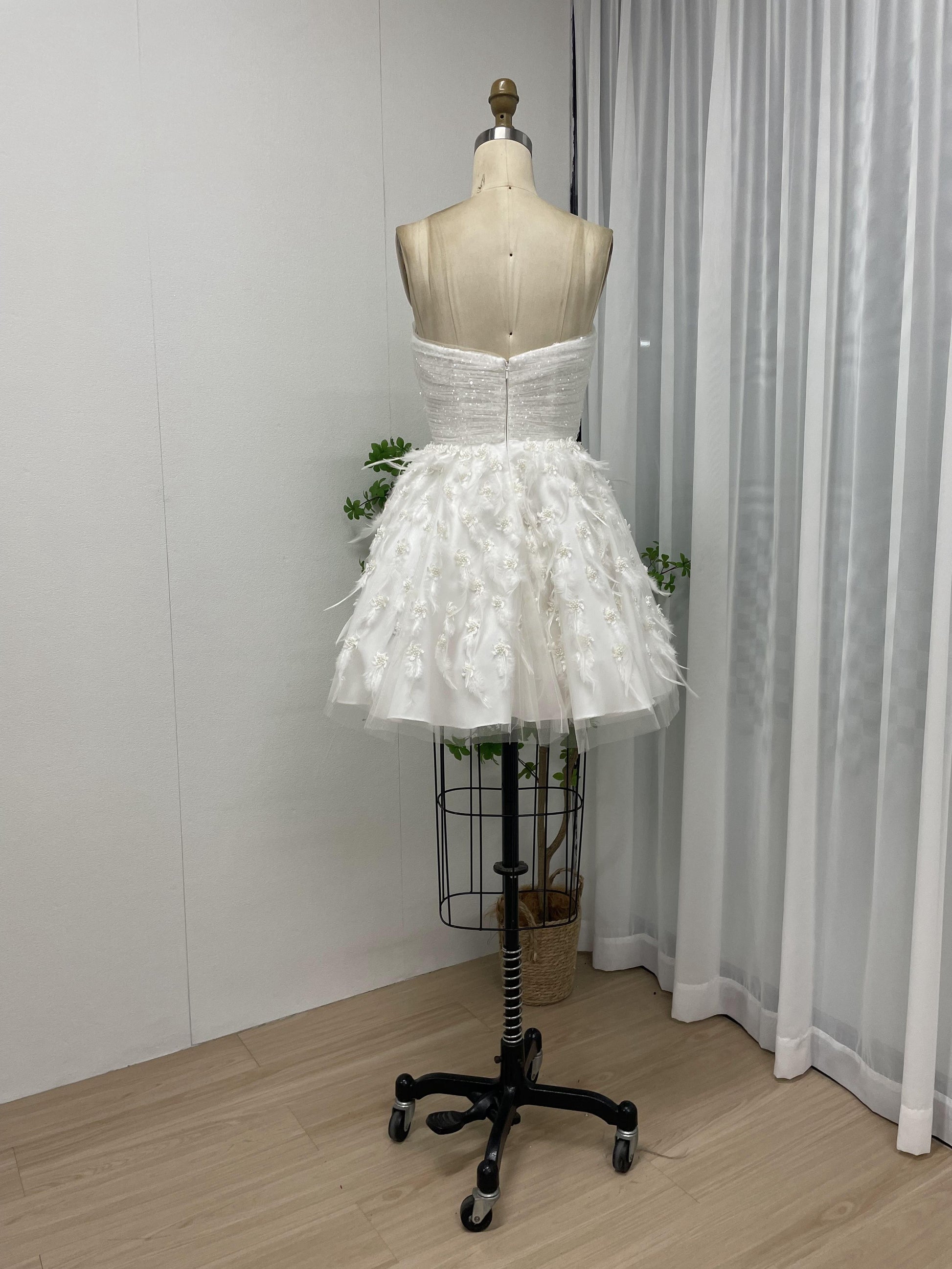Strapless Ruffle Corset Bodice Feather A Line Skirt Graduation Party Short Dress MB40204