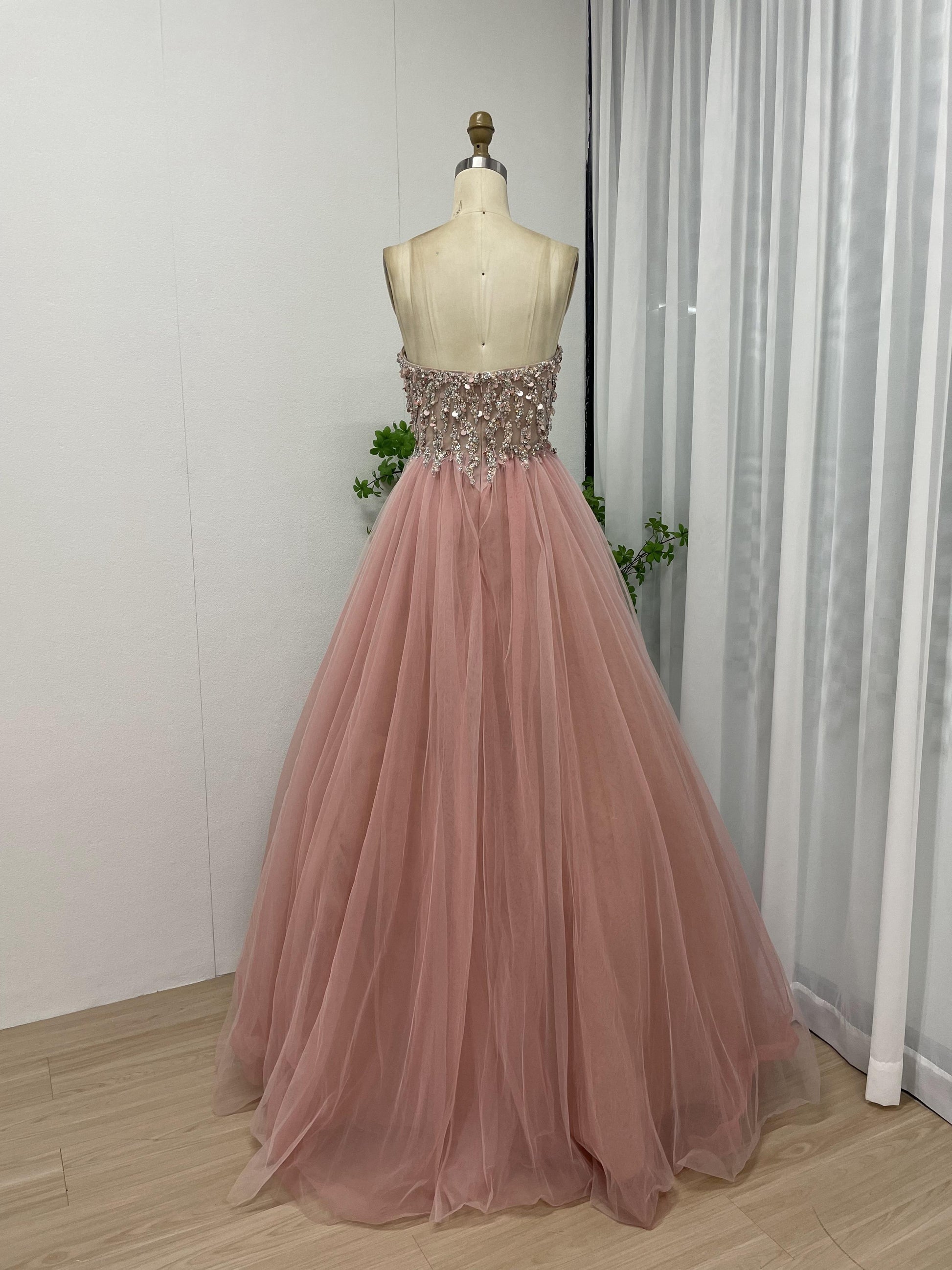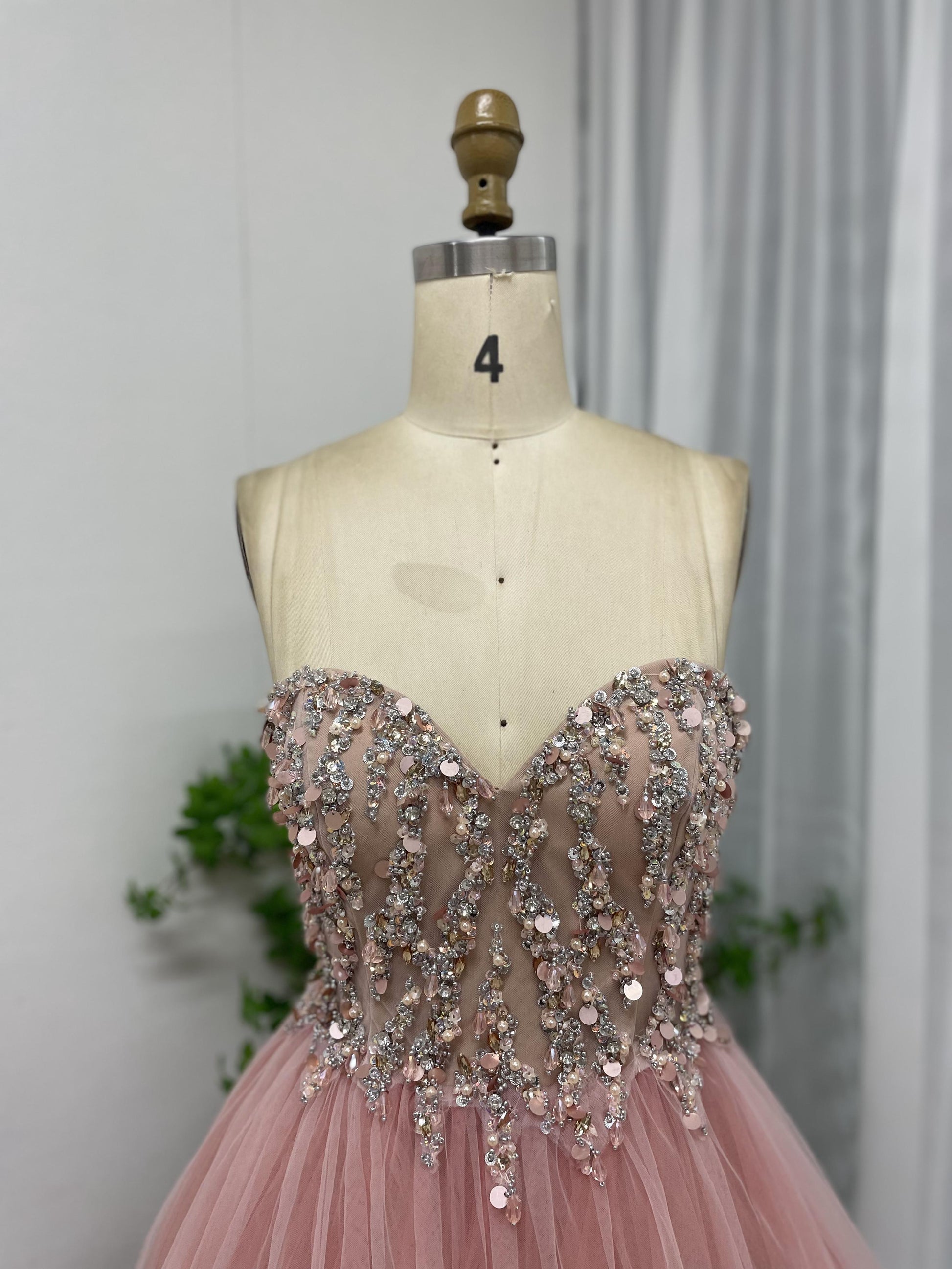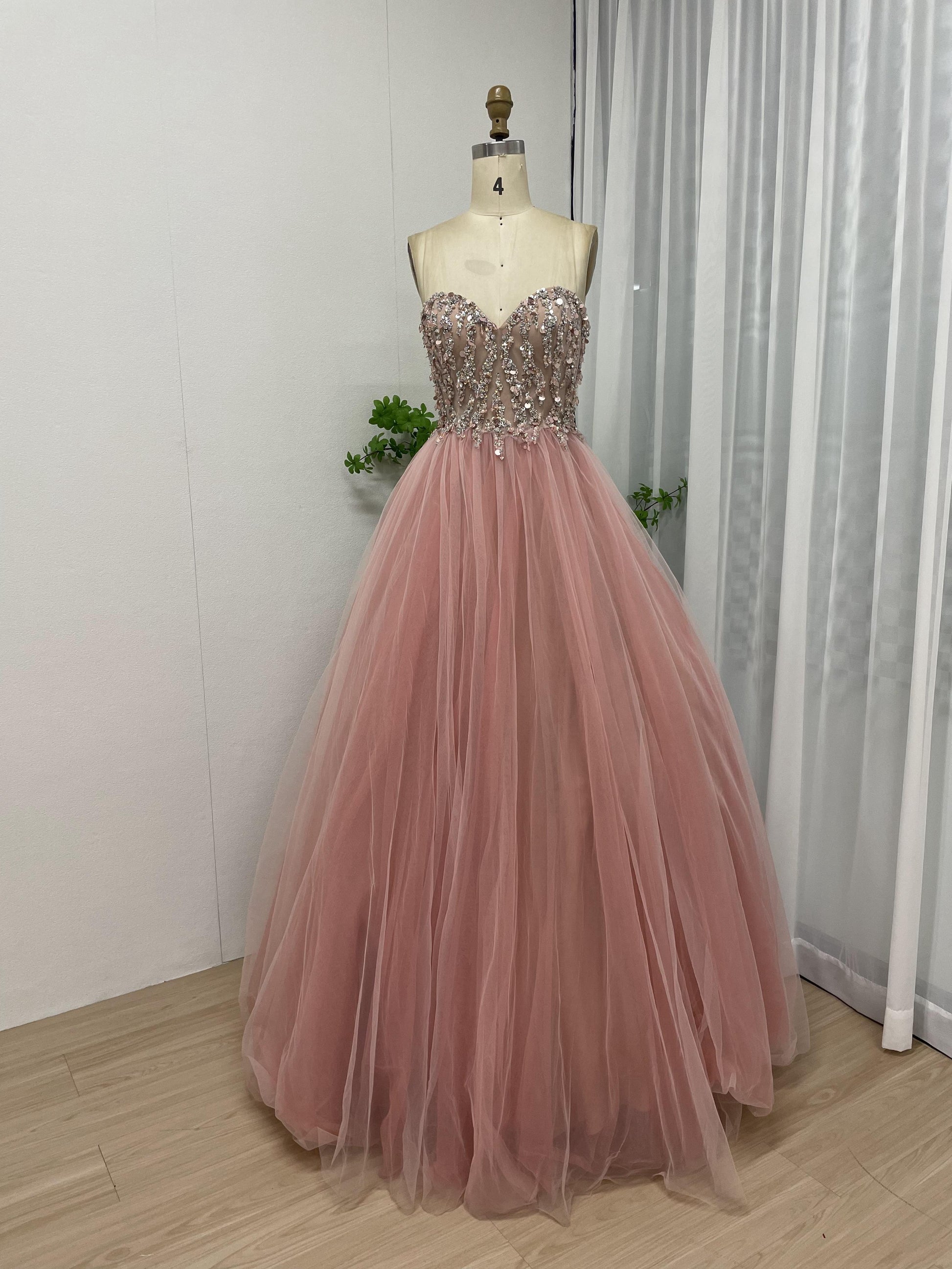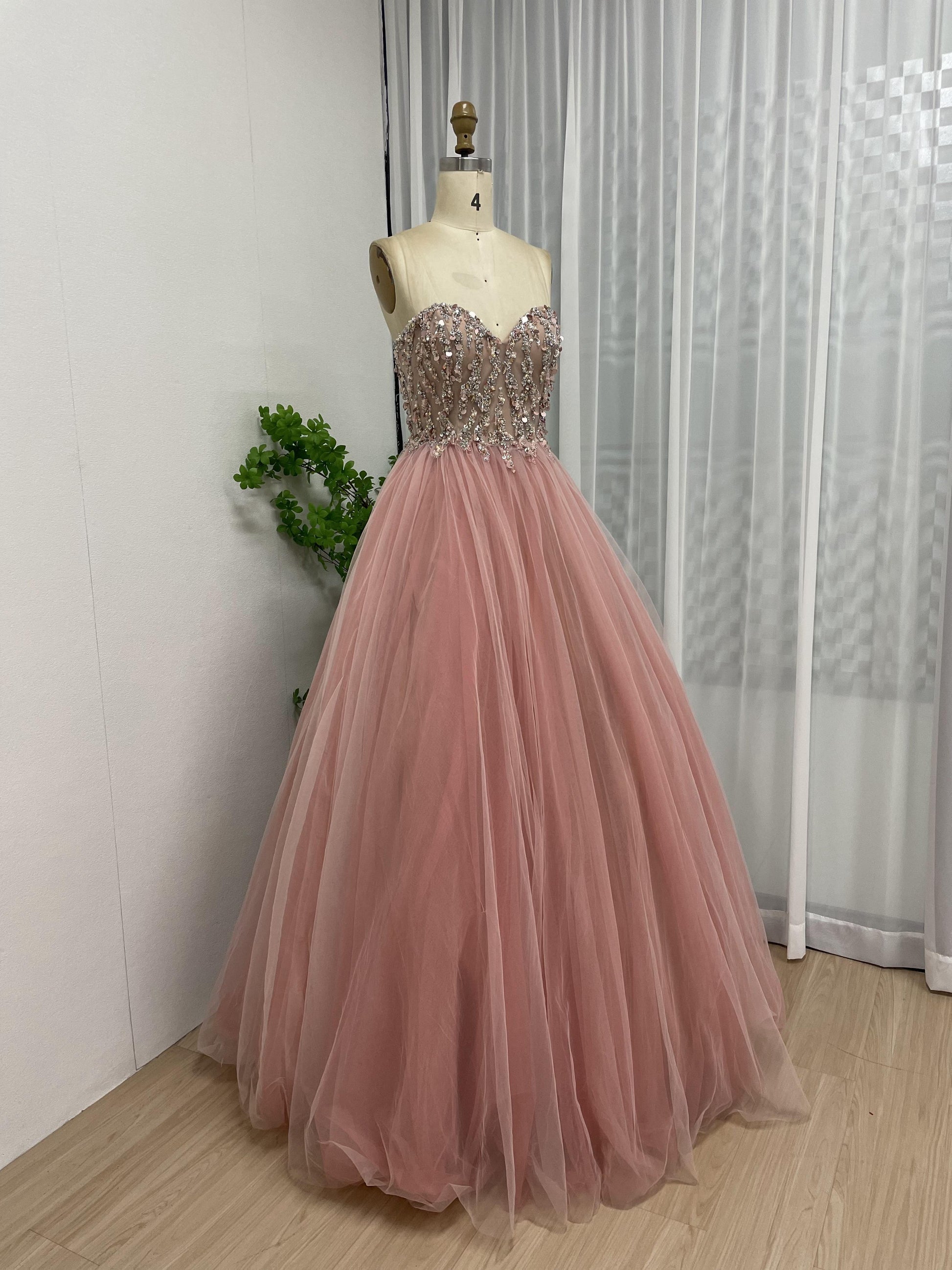 Strapless Sweetheart Corset Bodice Beading Puffy A Line Tulle Pink Birthday Party Dress MB40200