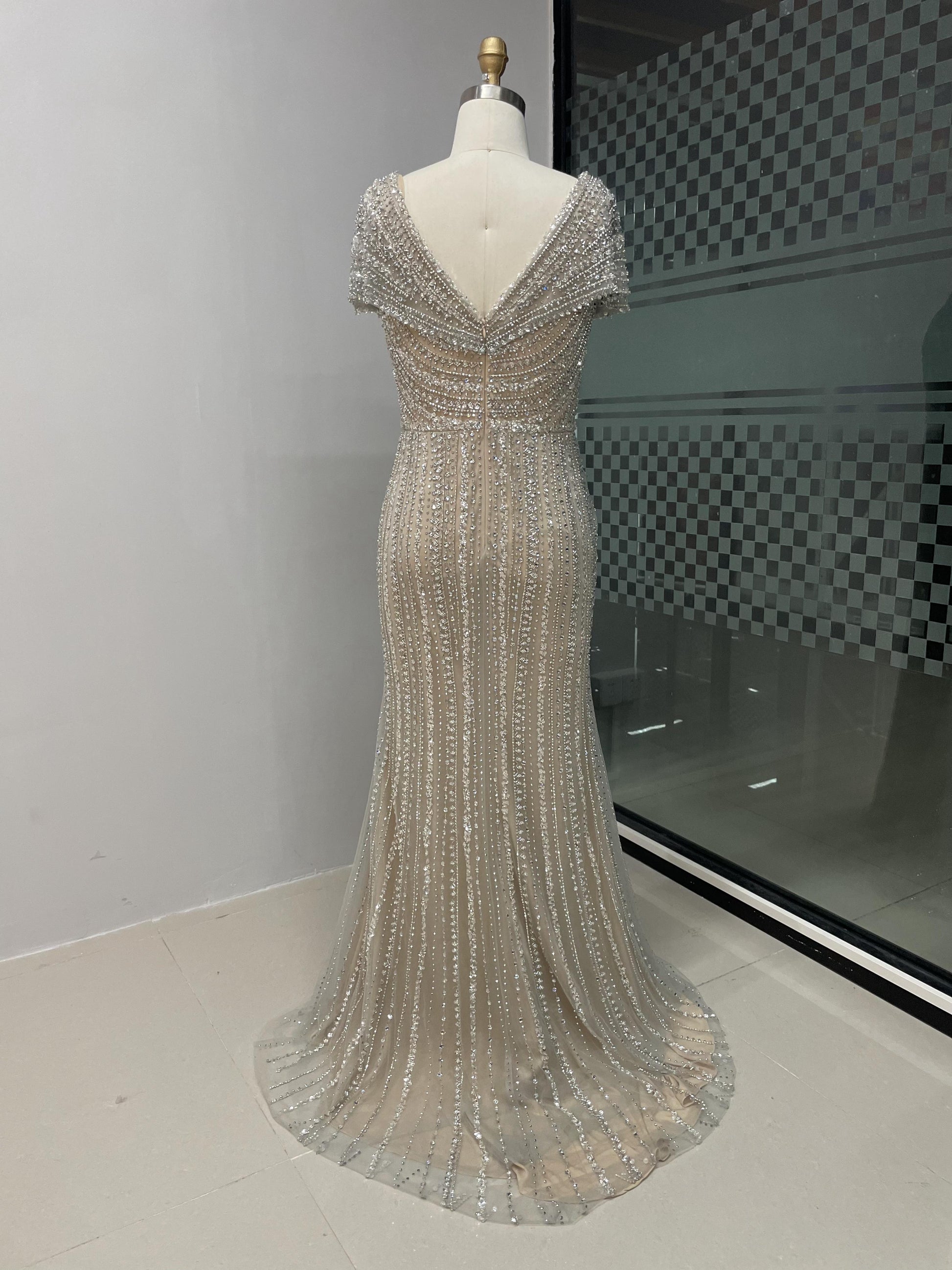 Stunning Cap Sleeve Handmade Beading Fitted Party Dress MB40028