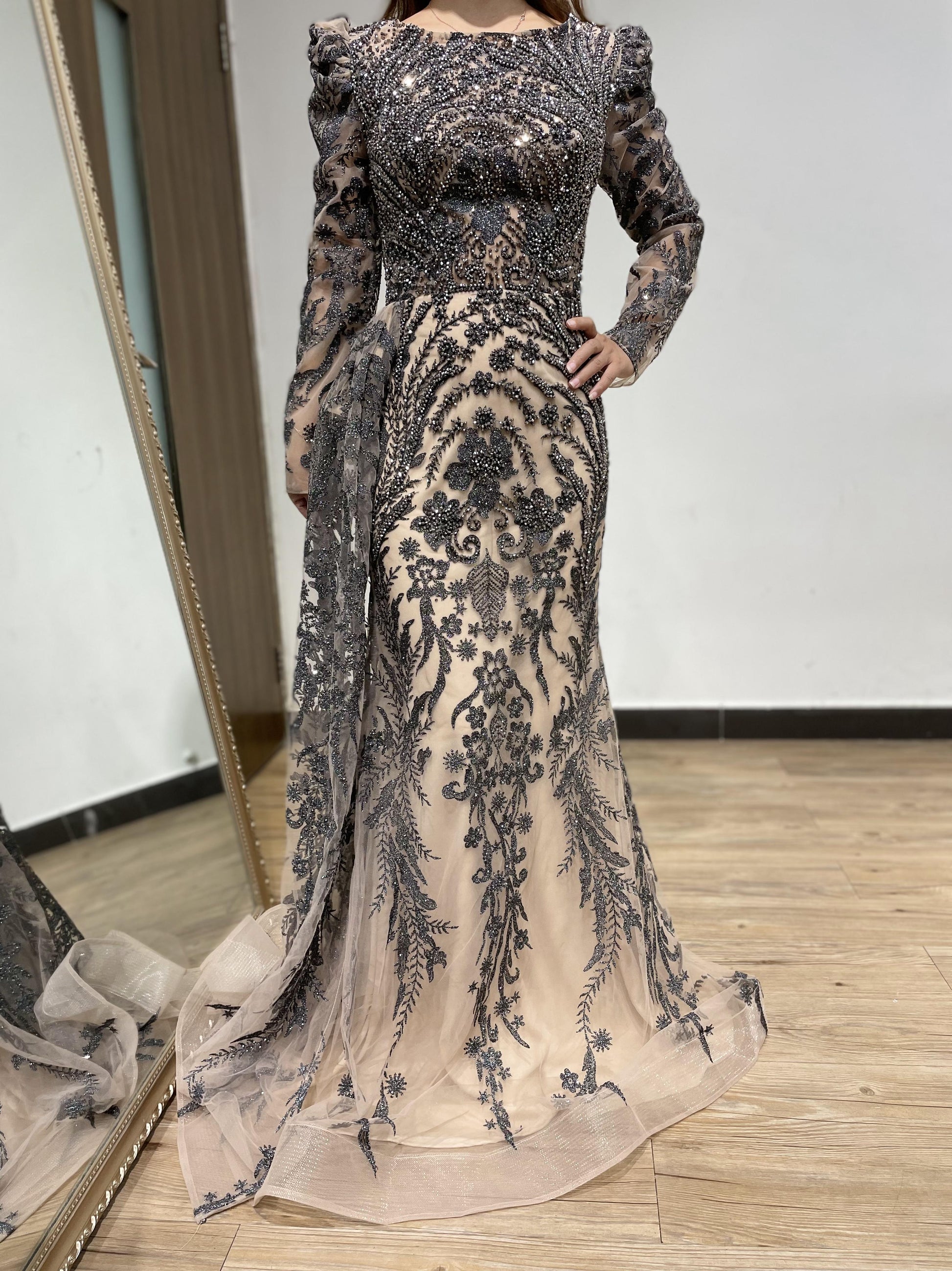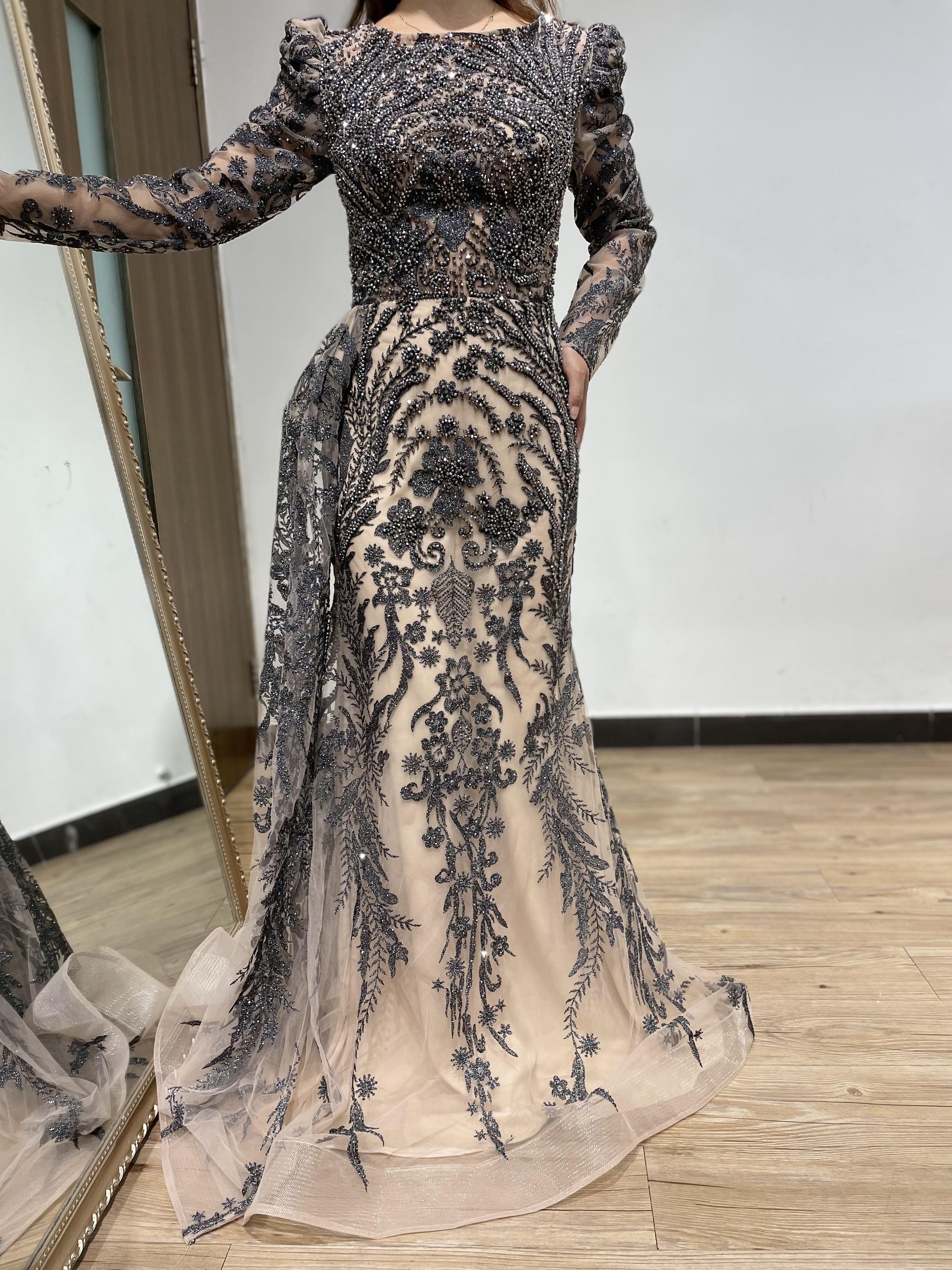 Stunning Long Sleeve Couture Lace Mother Dress DWS2414