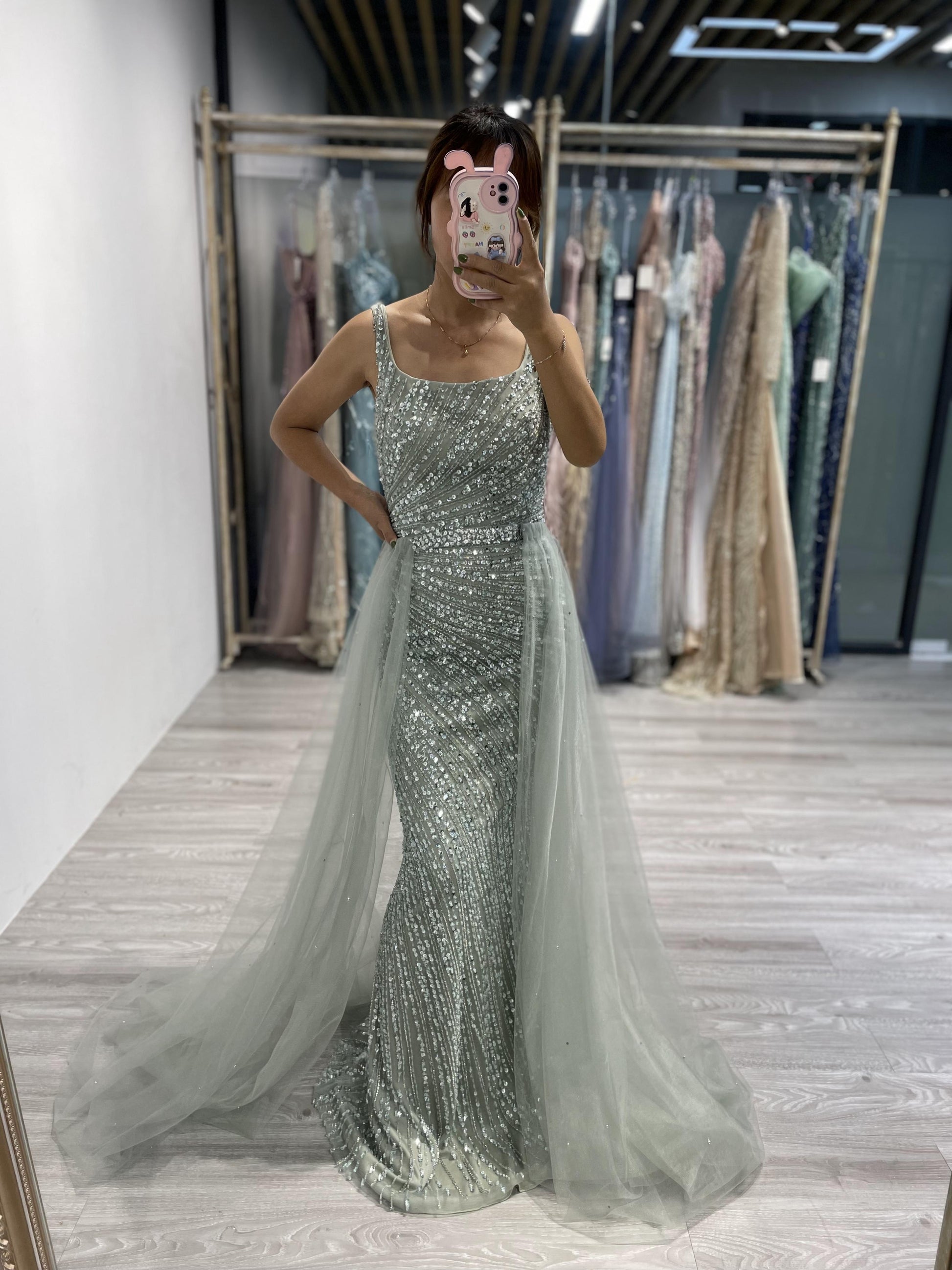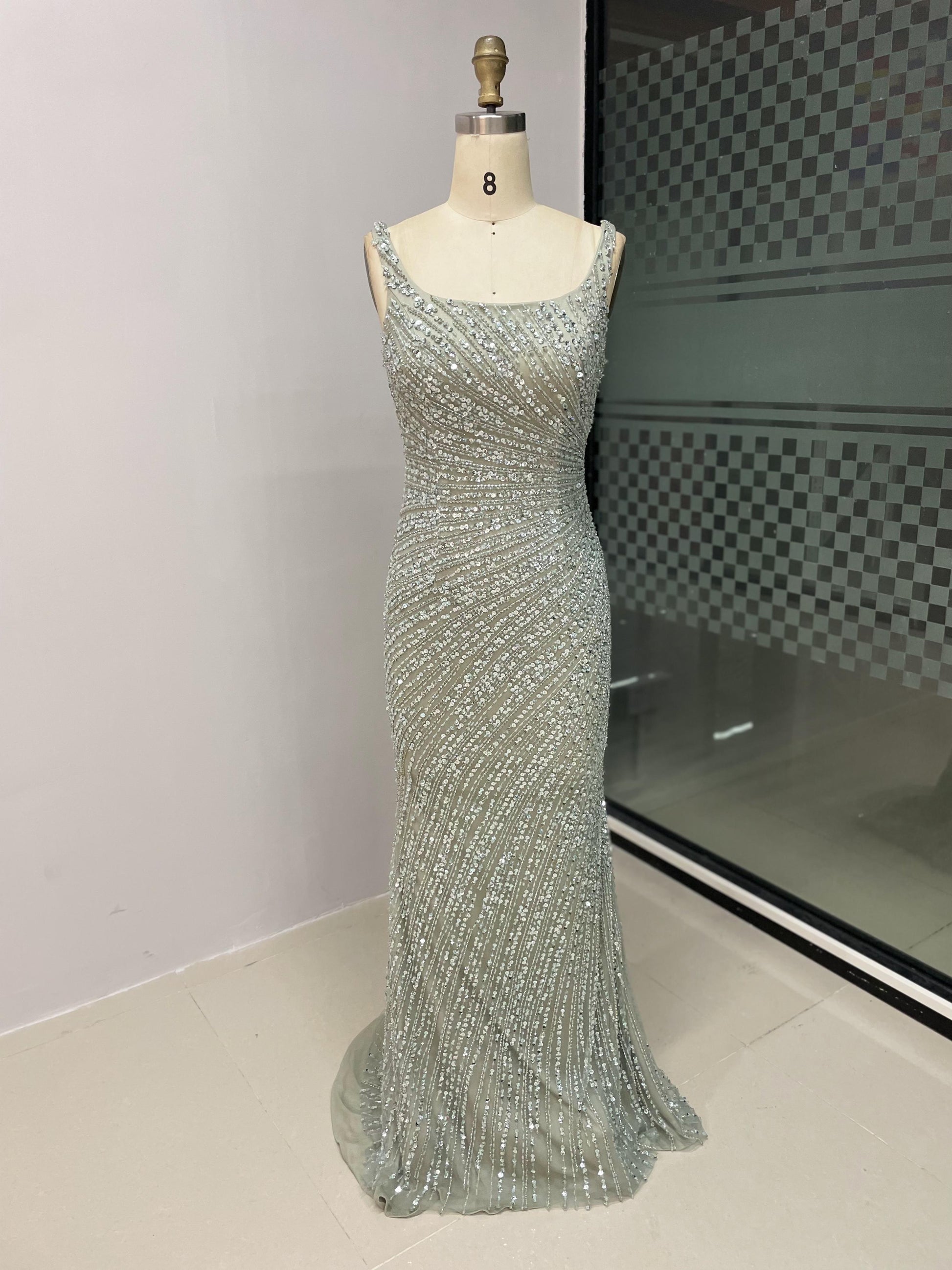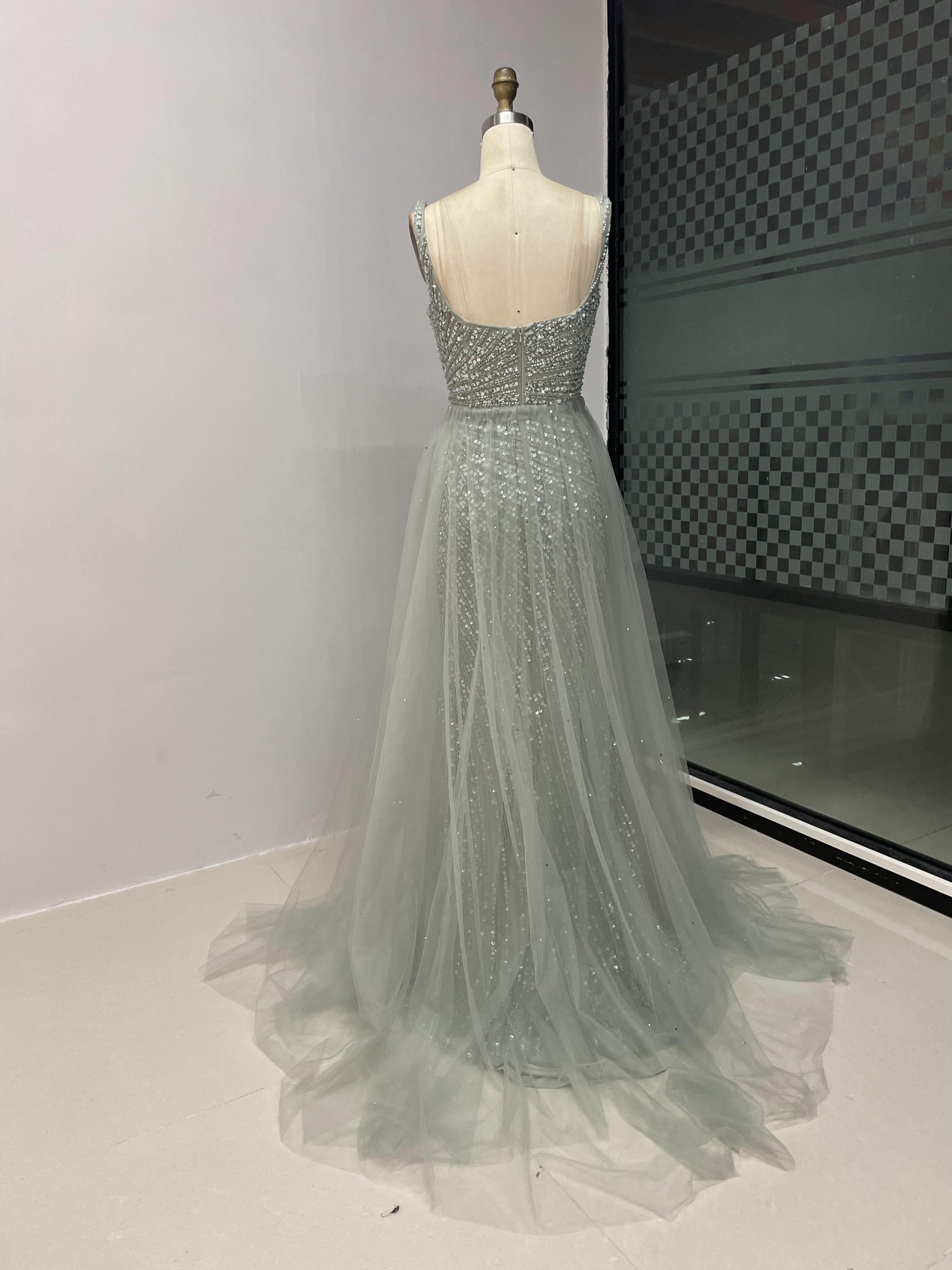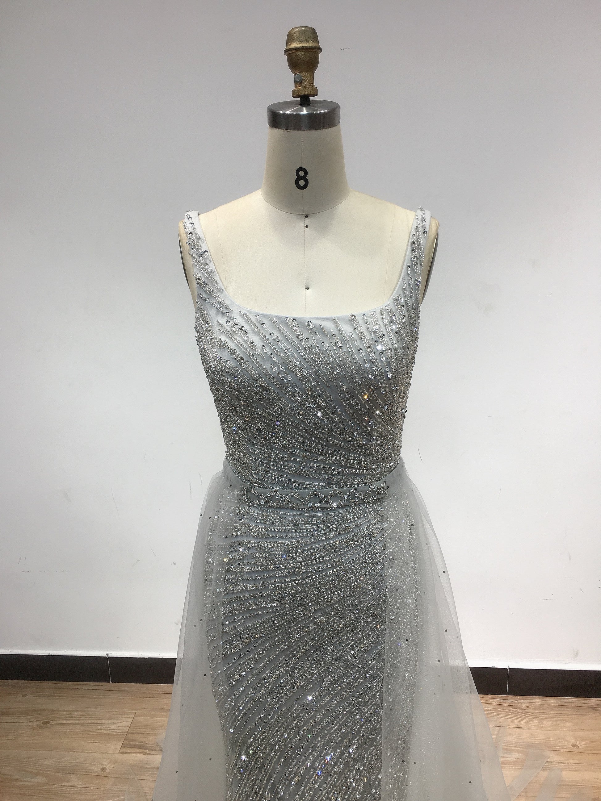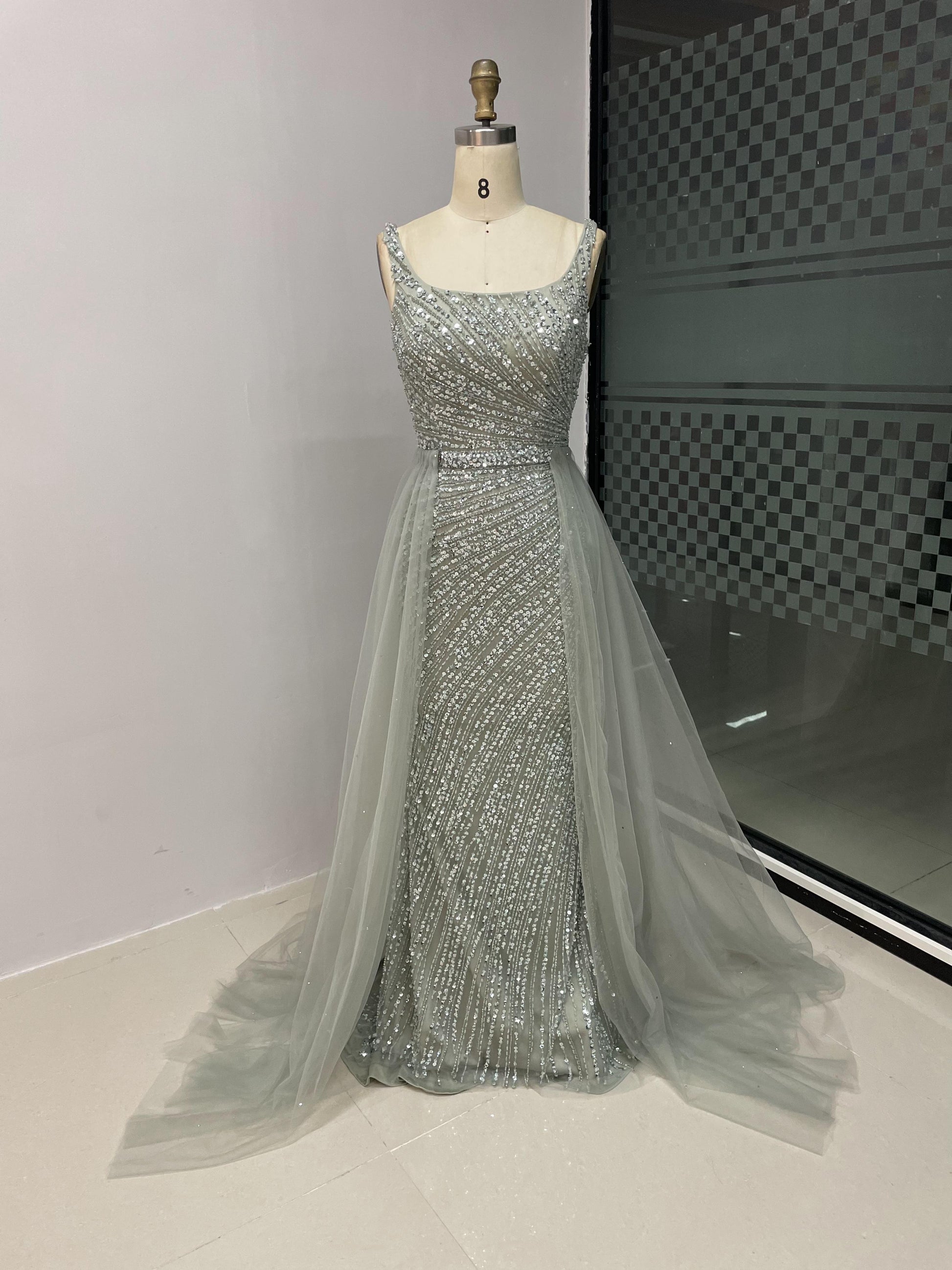Stunning Square Neck Beading Couture Fitted Overskirt Evening Dress ASU2020-08