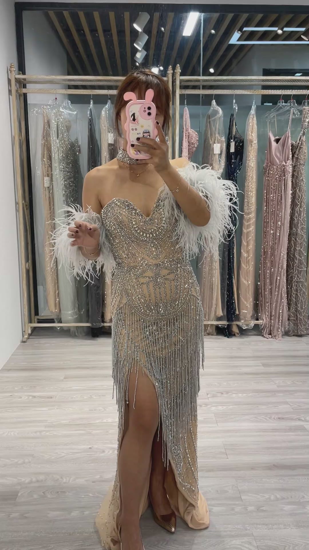 Stunning Strapless Beading Couture High Split Evening Dress MB40012
