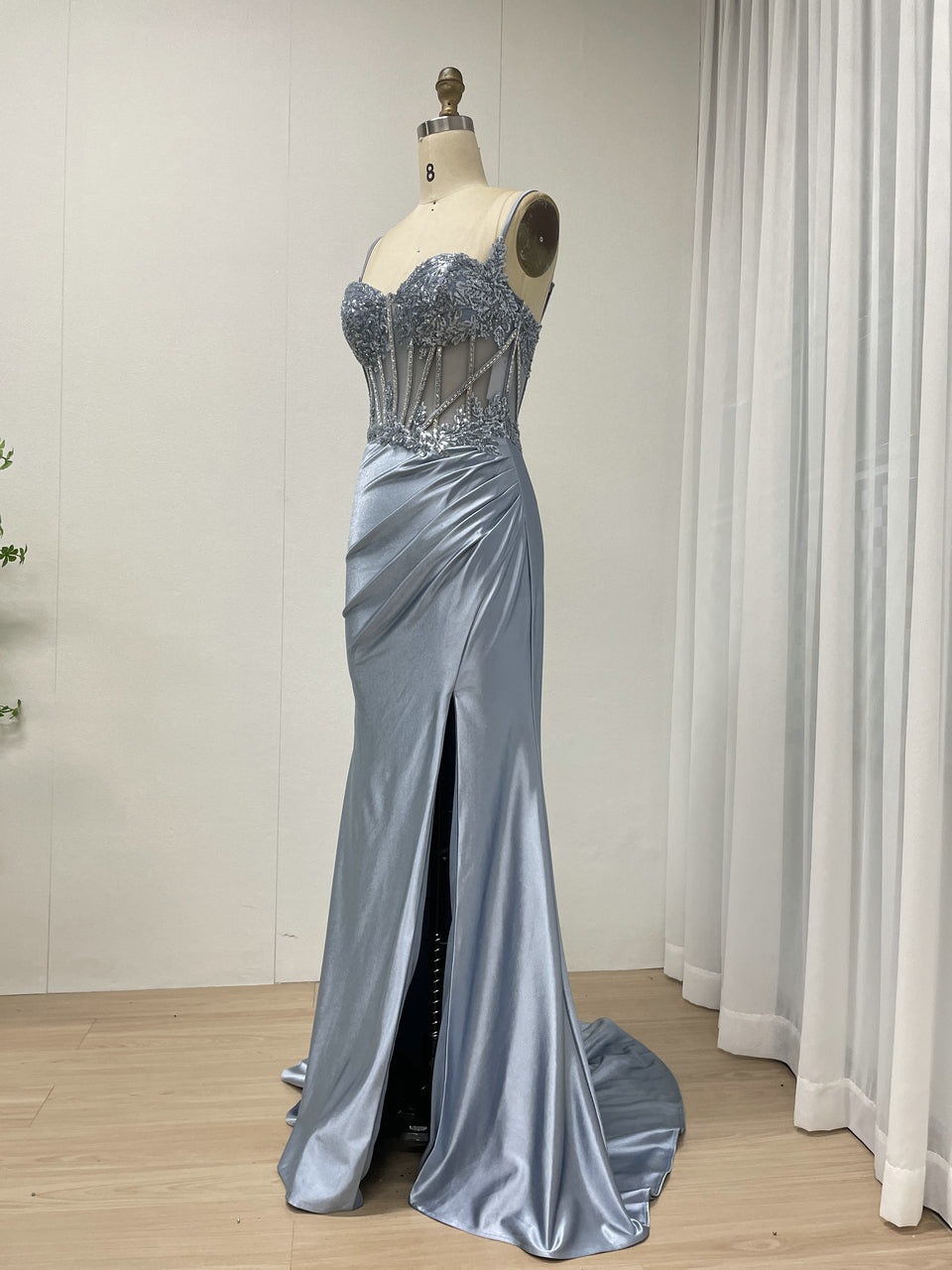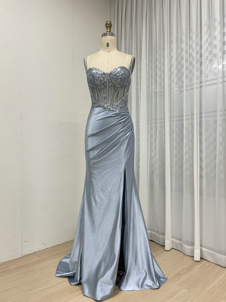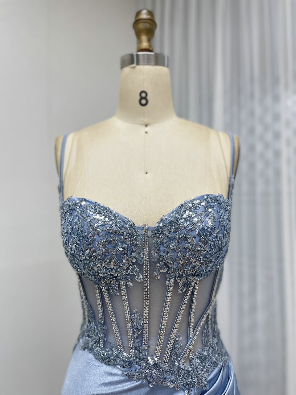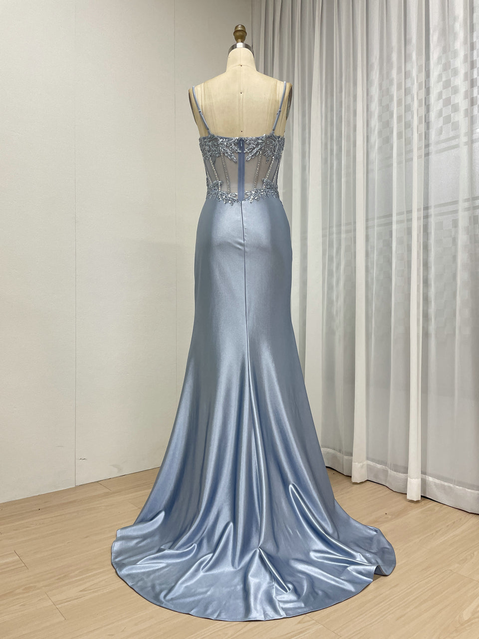 Stylish Mermaid Prom Evening Gown With Sexy High Slit 3D Floral Embroidery for Party MB40426